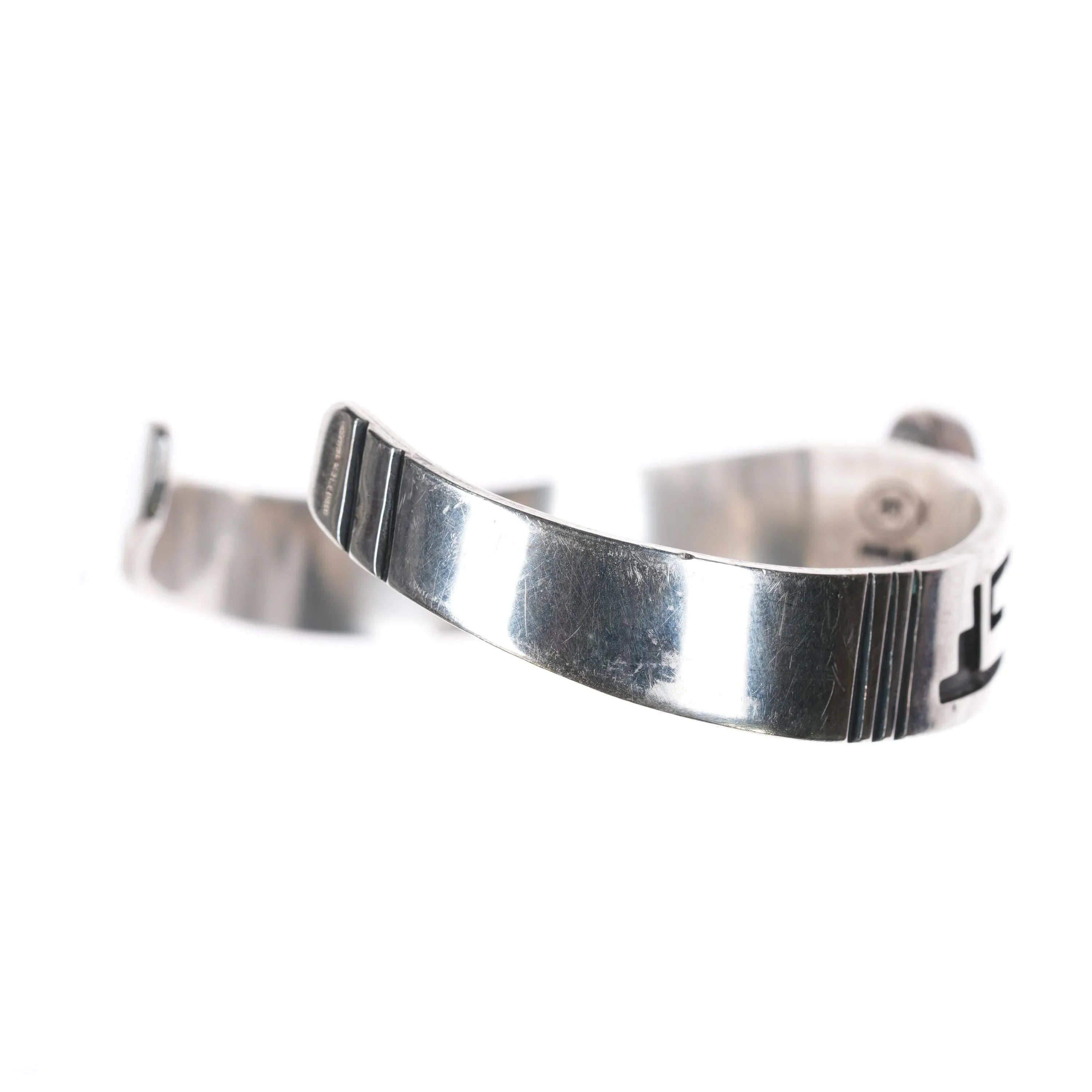 These self-taught silversmiths have been making jewelry for over 40 years. Everett and Mary Tellers work is made of sterling silver and 14k gold with simple Navajo overlay designs. They incorporate the storm pattern designs on many of their jewelry pieces.