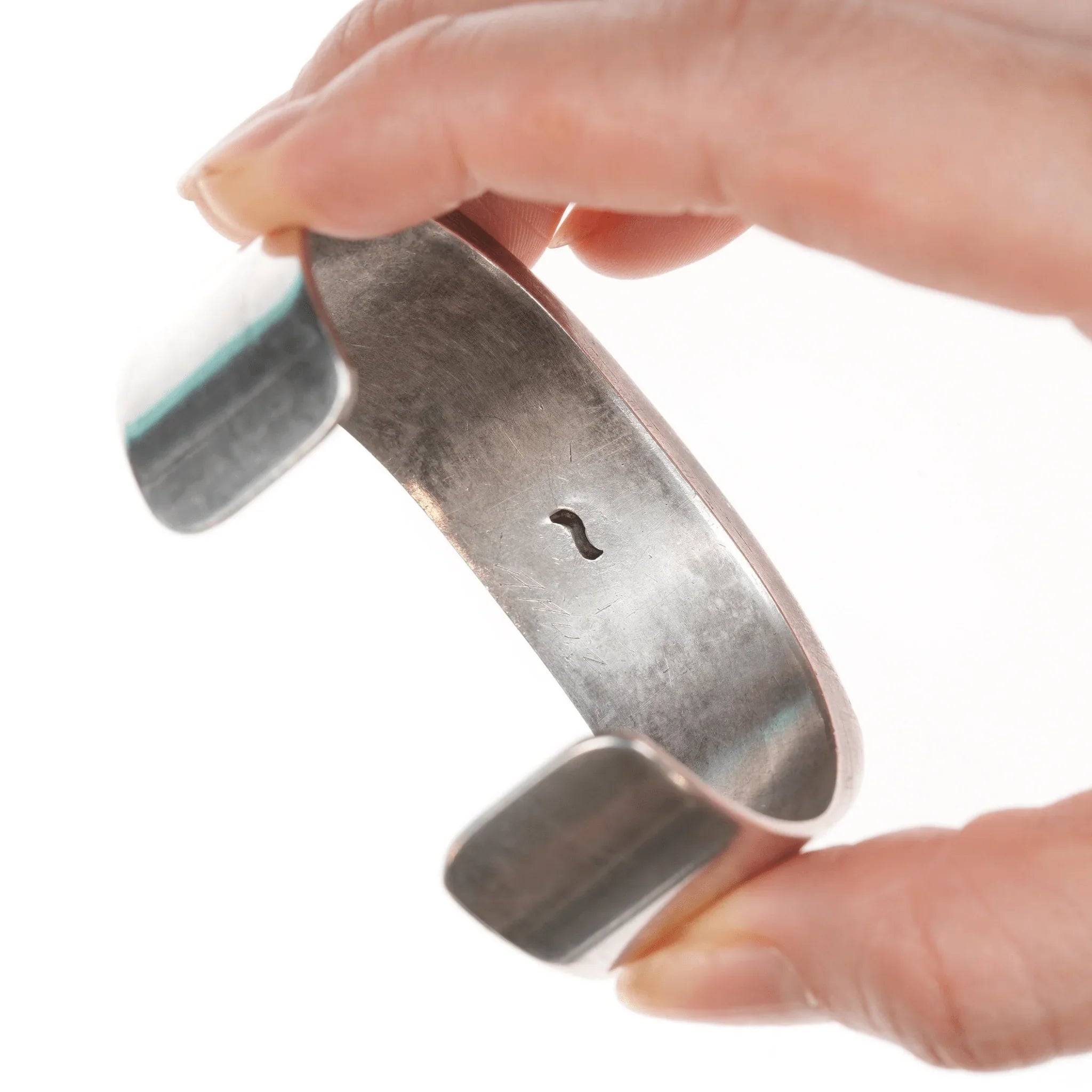 6.25" Fred Thompson (1922-2002) Navajo Turquoise inlaid silver cuff bracelet.<br>Extremely high grade natural American turquoise.. Marked or unmarked as shown in<br>pics, weight and other measurements in pics. Sorry but my jewelry is stored in a<br>secure location and cannot be accessed for more pictures, videos, or<br>measurements until sold. If you look at pictures/description your question<br>should be answered. Thank you so much for your time and consideration!<br><br>Thompson worked as a smith for Tobe Turpen at the age of 15 and built his career<br>on the skills he learned in Turpen’s shop. He made his own stamps, never sold to<br>dealers, and only sold wholesale to Tobe Turpen. After serving in WWII, he<br>continued to make pieces into the 1990’s. He was a teacher as well as a<br>silversmith. World renowned, he focused on traditional Navajo styles, producing<br>his work with utmost skill using the highest quality stones available.<br>Thompson’s pieces are now rare and hard to find.<br><br>All precious metals are tested and guaranteed, any Native American jewelry<br>referred to as Silver or Sterling is guaranteed to be a minimum of 90% (coin)<br>silver and possibly higher content. Anything marked is guaranteed to be what<br>it's marked, most bracelets are photographed on a 6" wrist (non hairy), rings<br>photographed on the appropriate sized finger when possible. With bracelets if<br>the measurement is not given in the description then inside circumference is<br>shown where the metal meets the number on the the cloth tape measure.