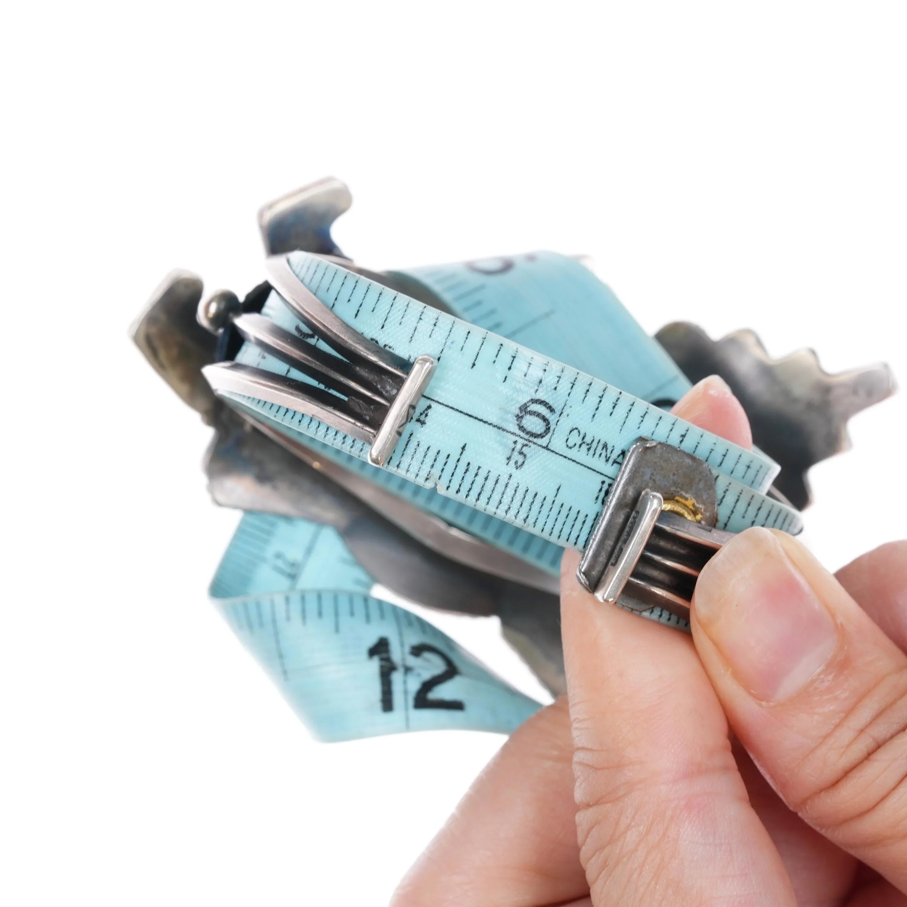 This beautiful, unique piece was made by Navajo artist Henry Morgan using vintage inlaid inserts which were made a Zuni artist in the 60s and recently pulled out of an old stash. Stamped with Henry‘s hallmark and Sterling.