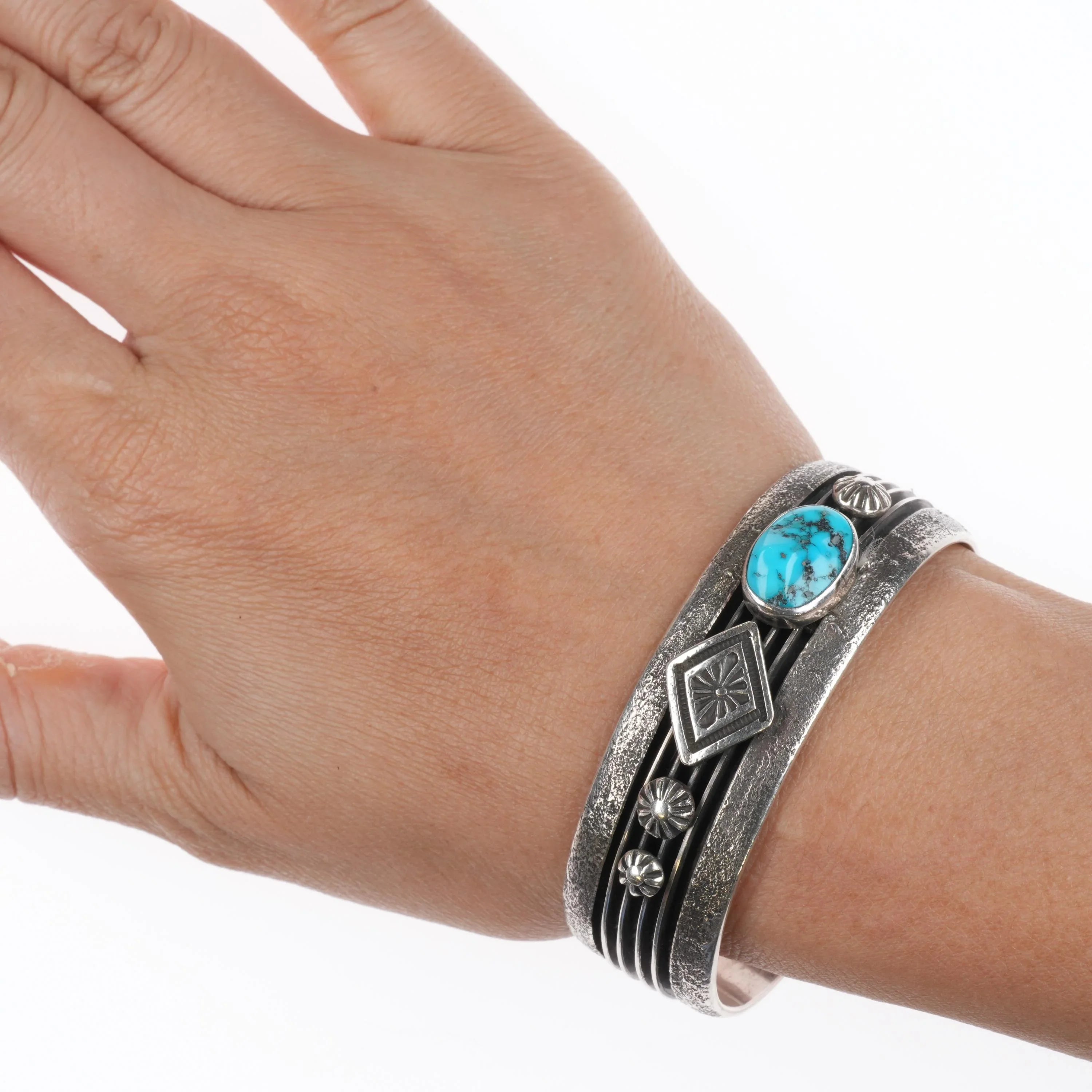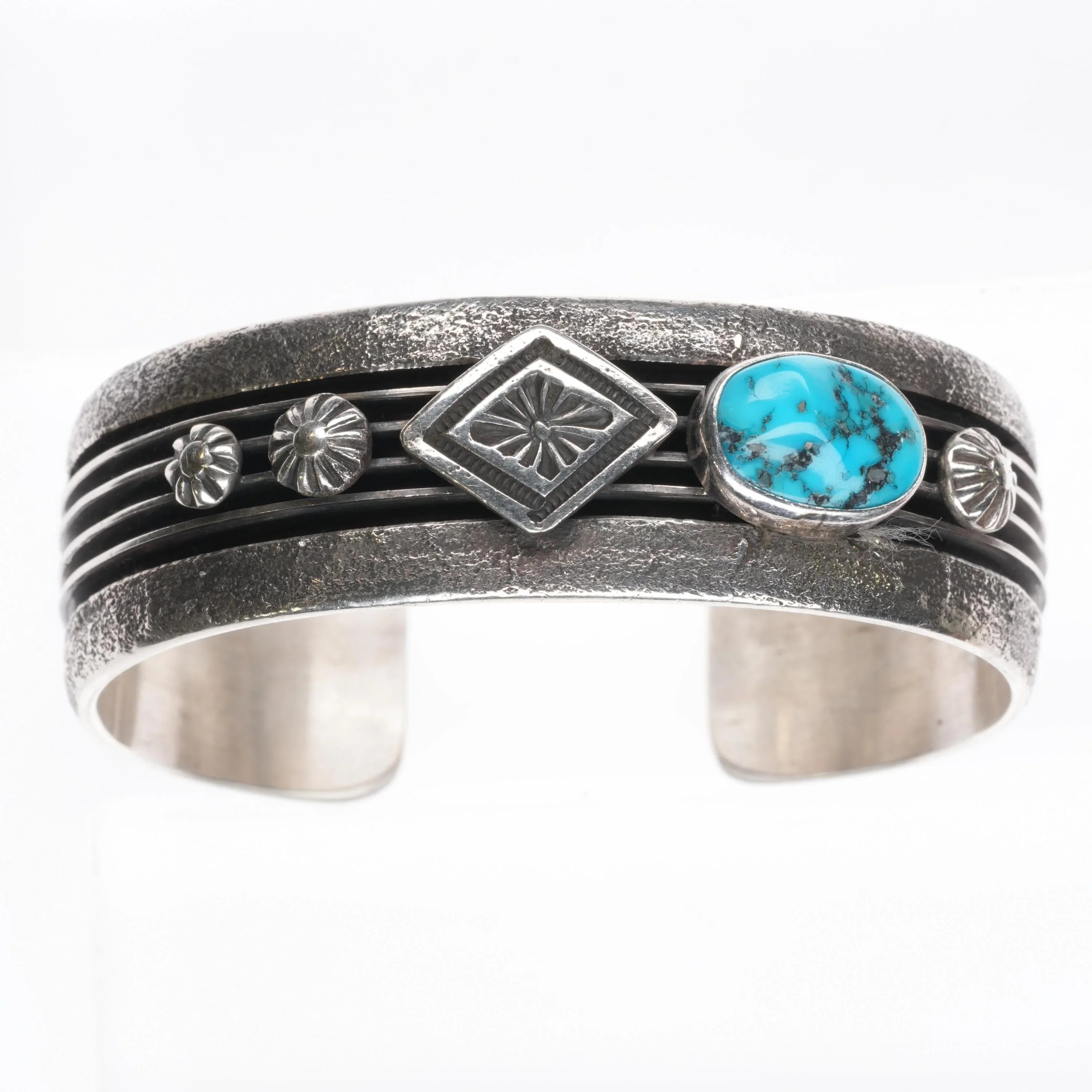 6.25" Ray King Navajo sterling silver Kingman turquoise cuff bracelet