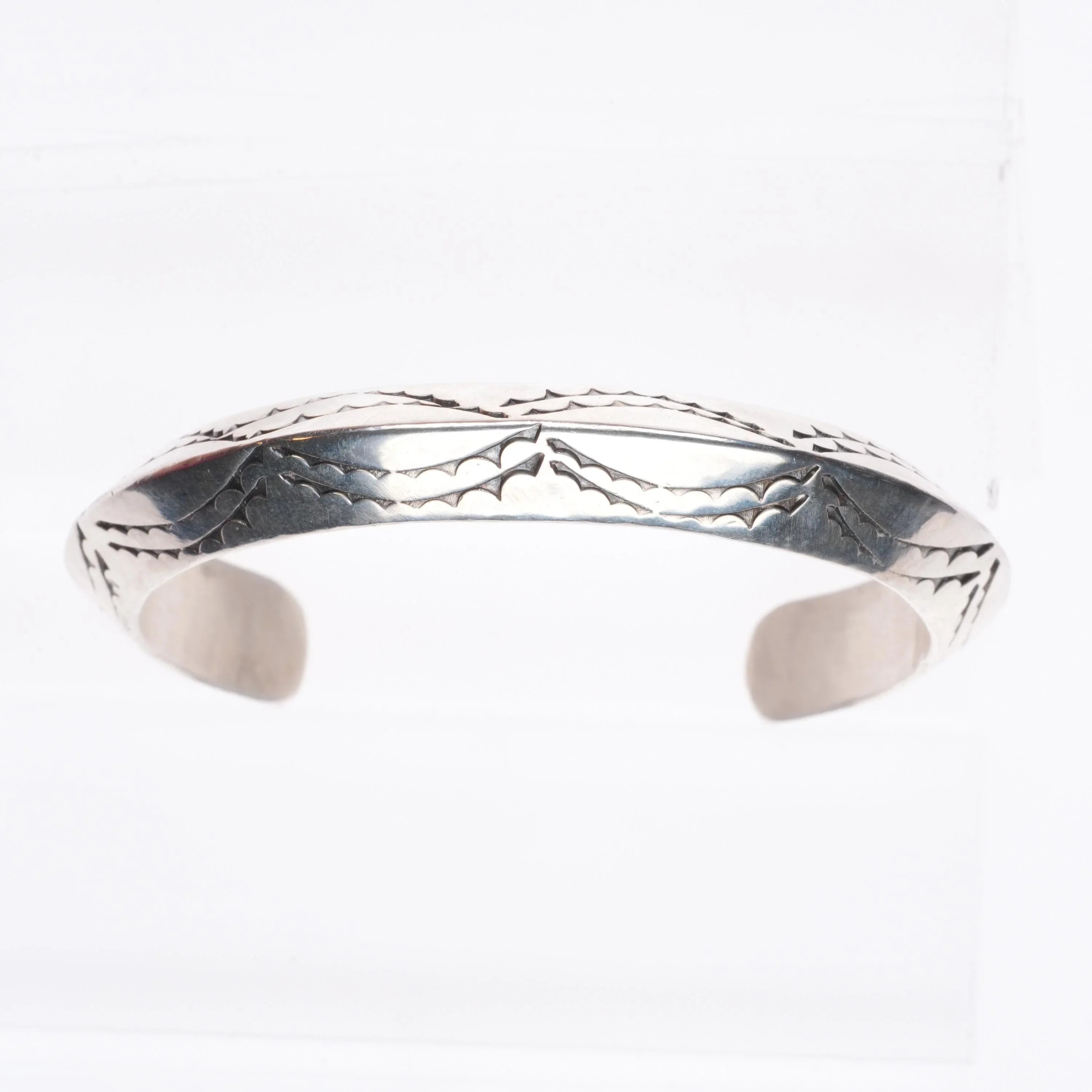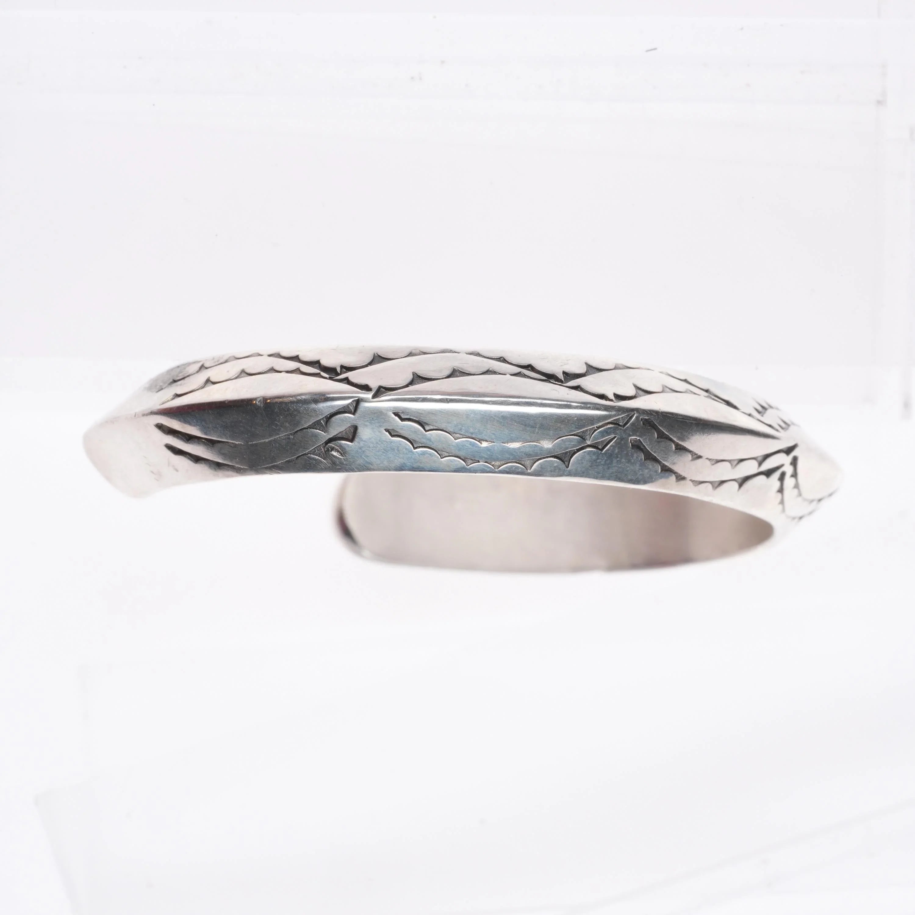 6.25" Vintage Navajo hand stamped carinated sterling silver cuff bracelet