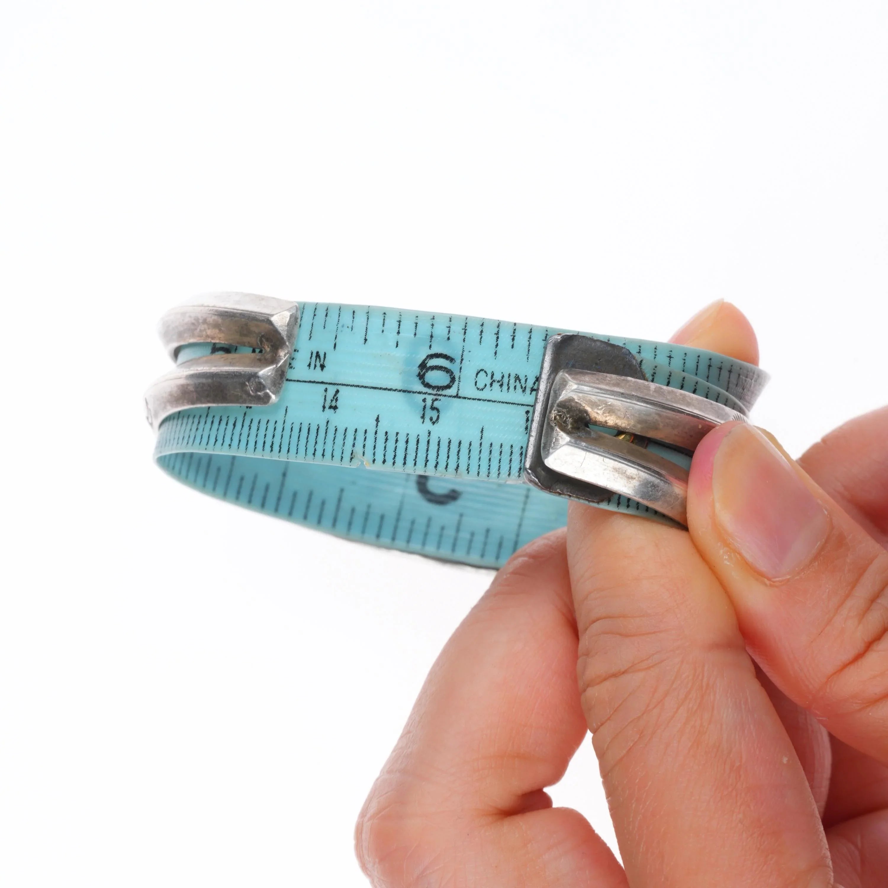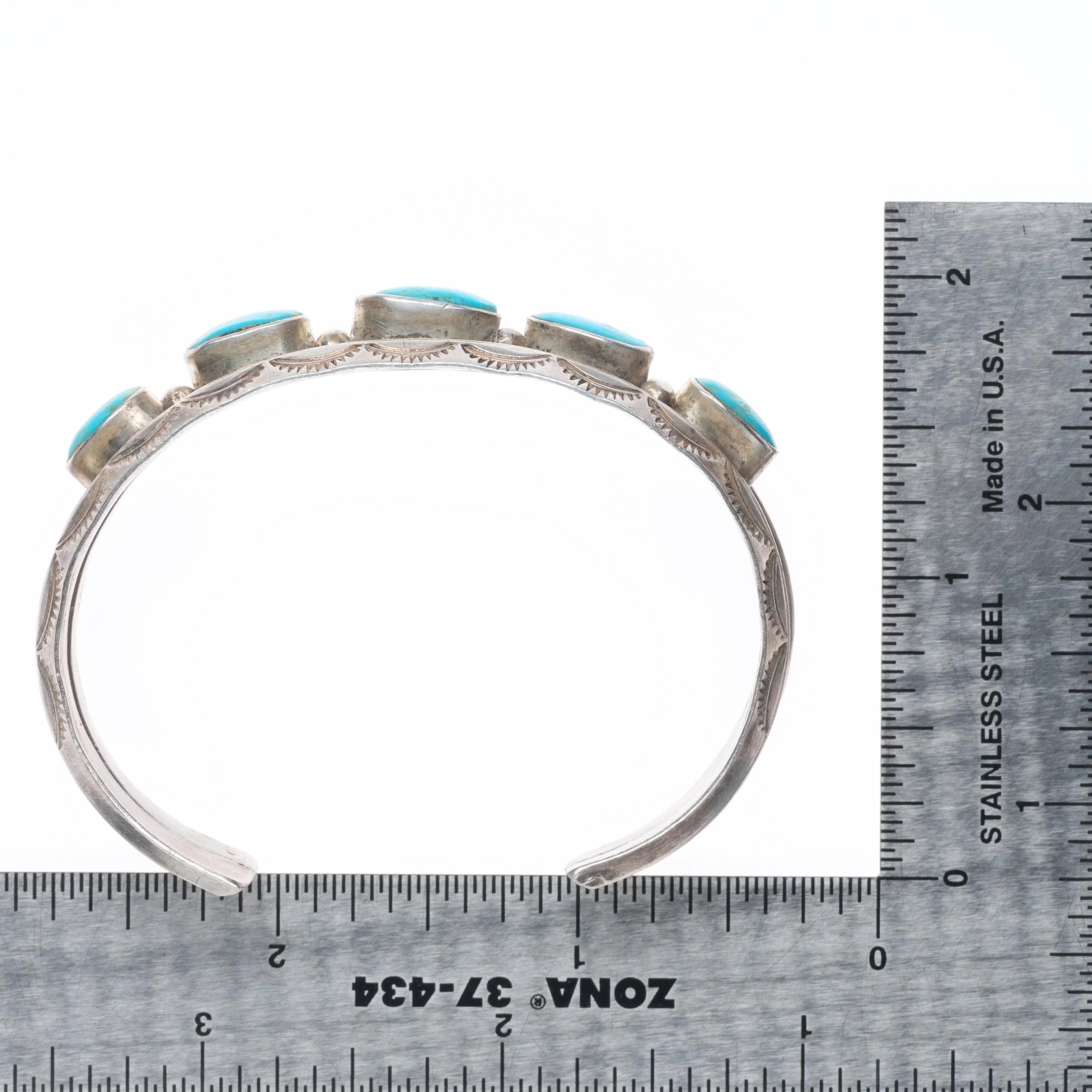 6.25" Vintage Navajo hand stamped turquoise row cuff bracelet sterling silver