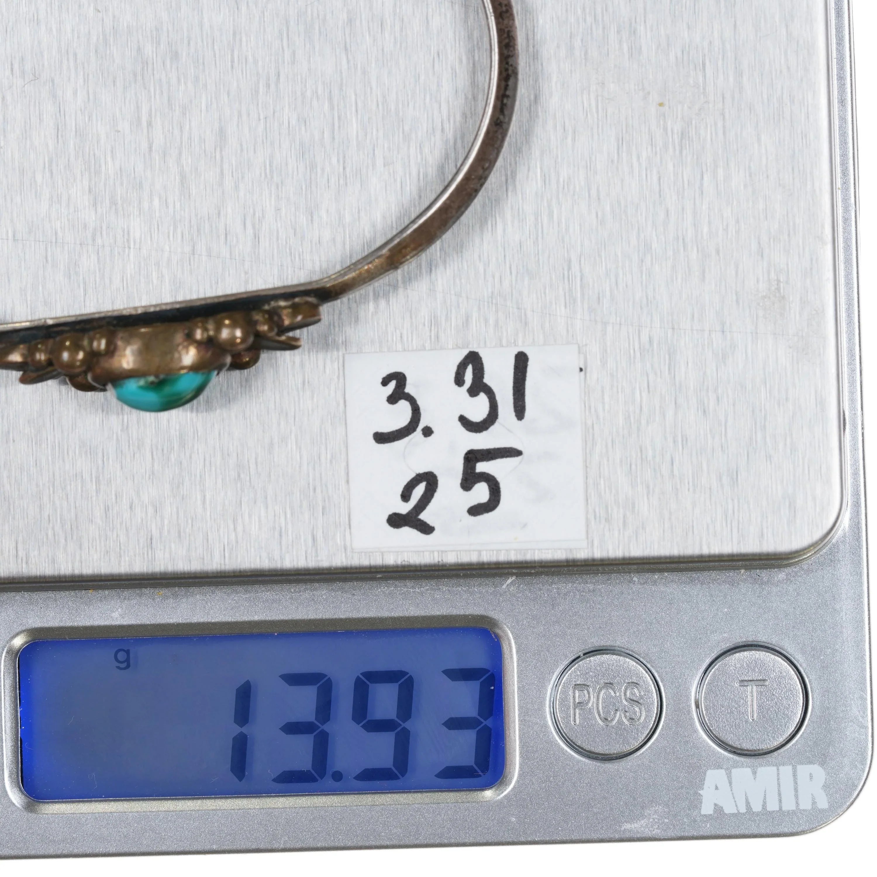 6.25" Vintage Silver and brass Native American cuff bracelet w/ Nice turquoise. Weight and measurements in pictures, solid sterling silver with brass bezel/ornament No issues.
