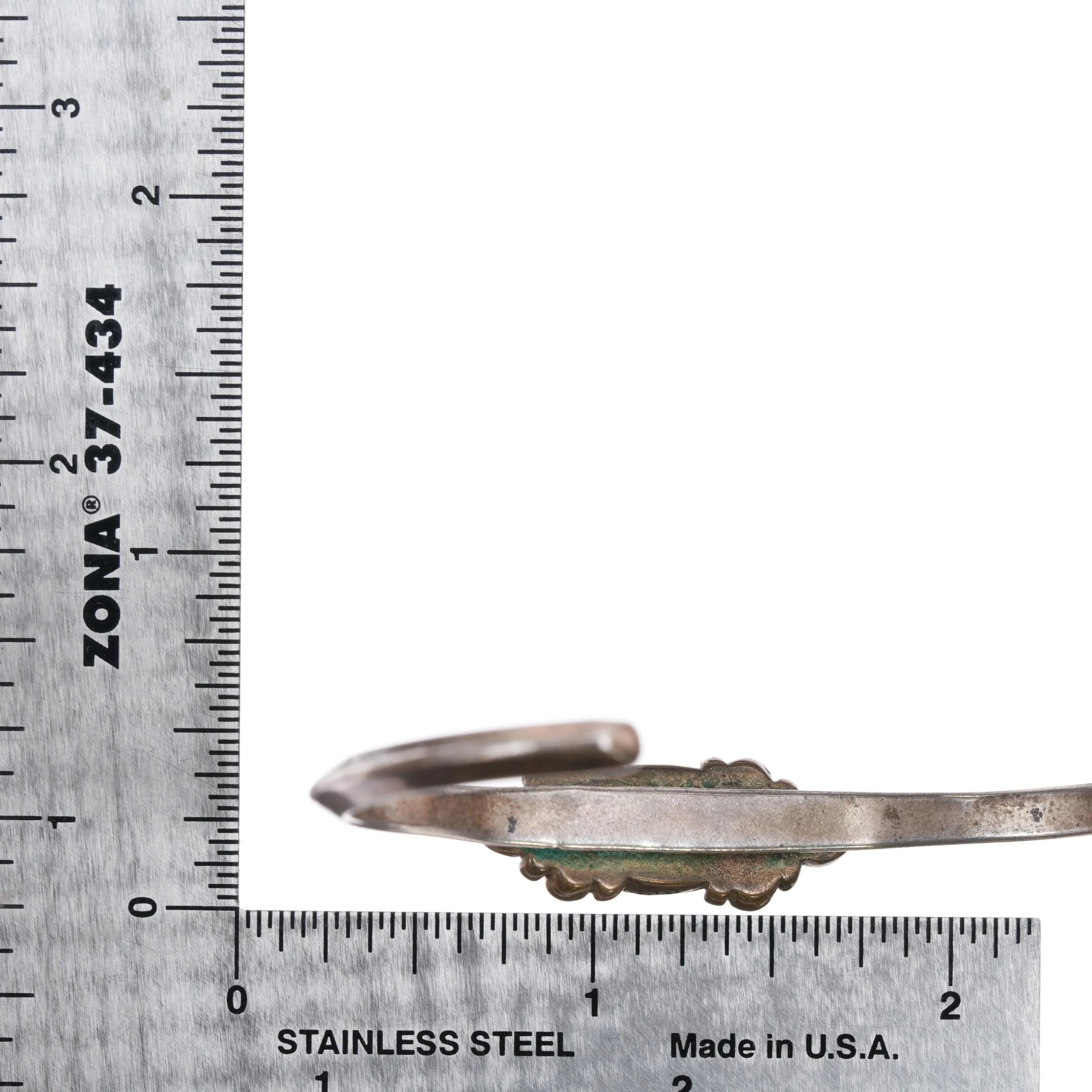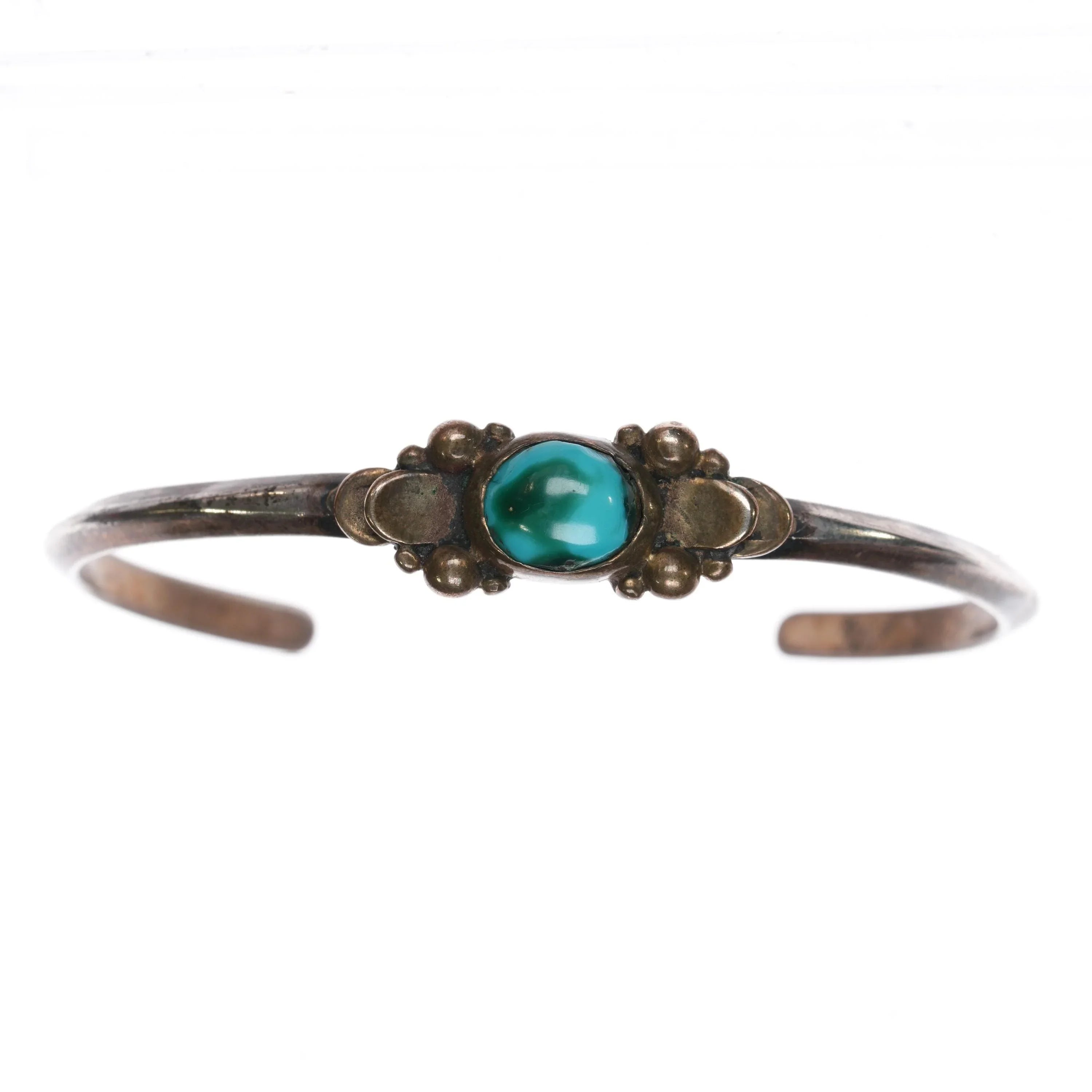 6.25" Vintage Silver and brass Native American cuff bracelet w/ Nice turquoise