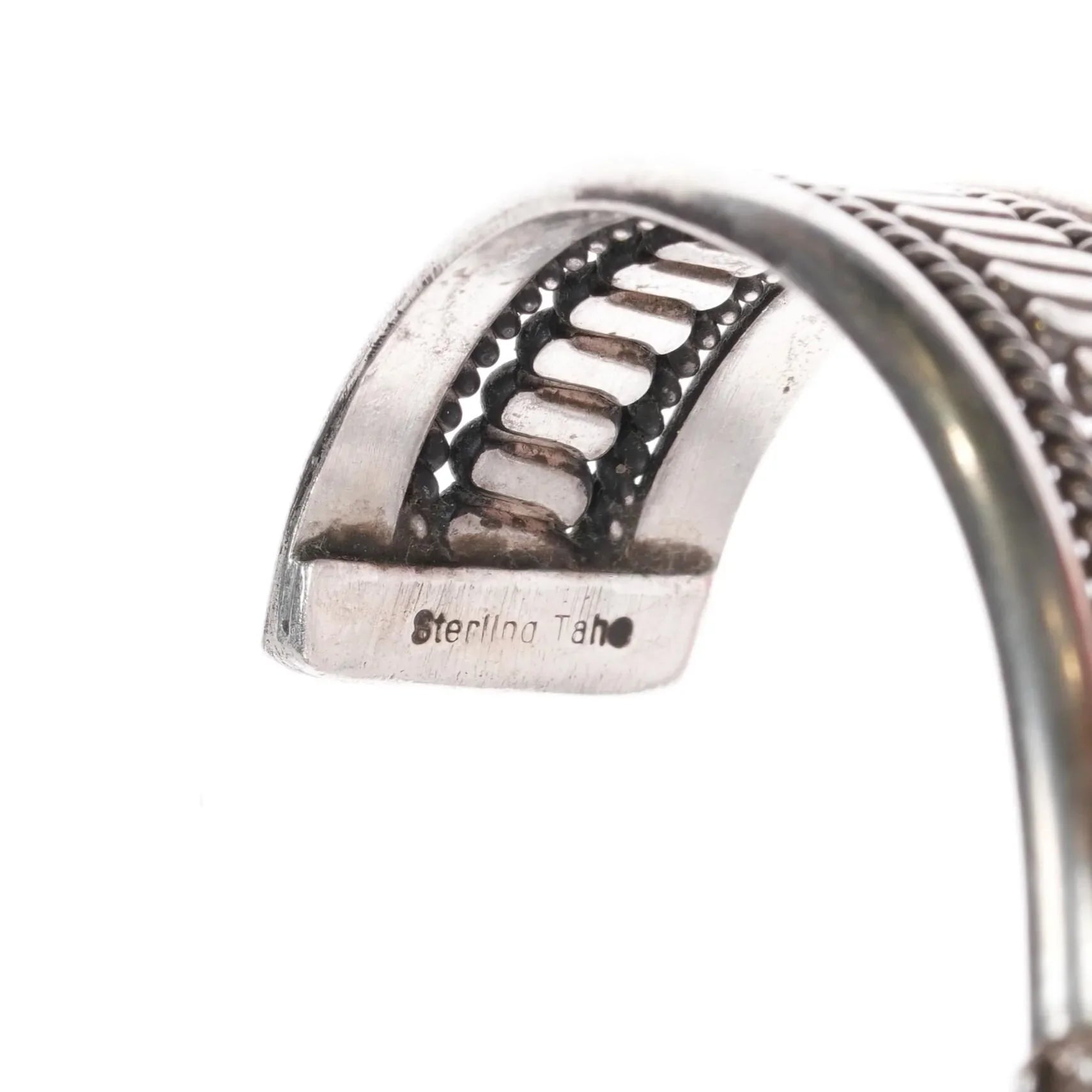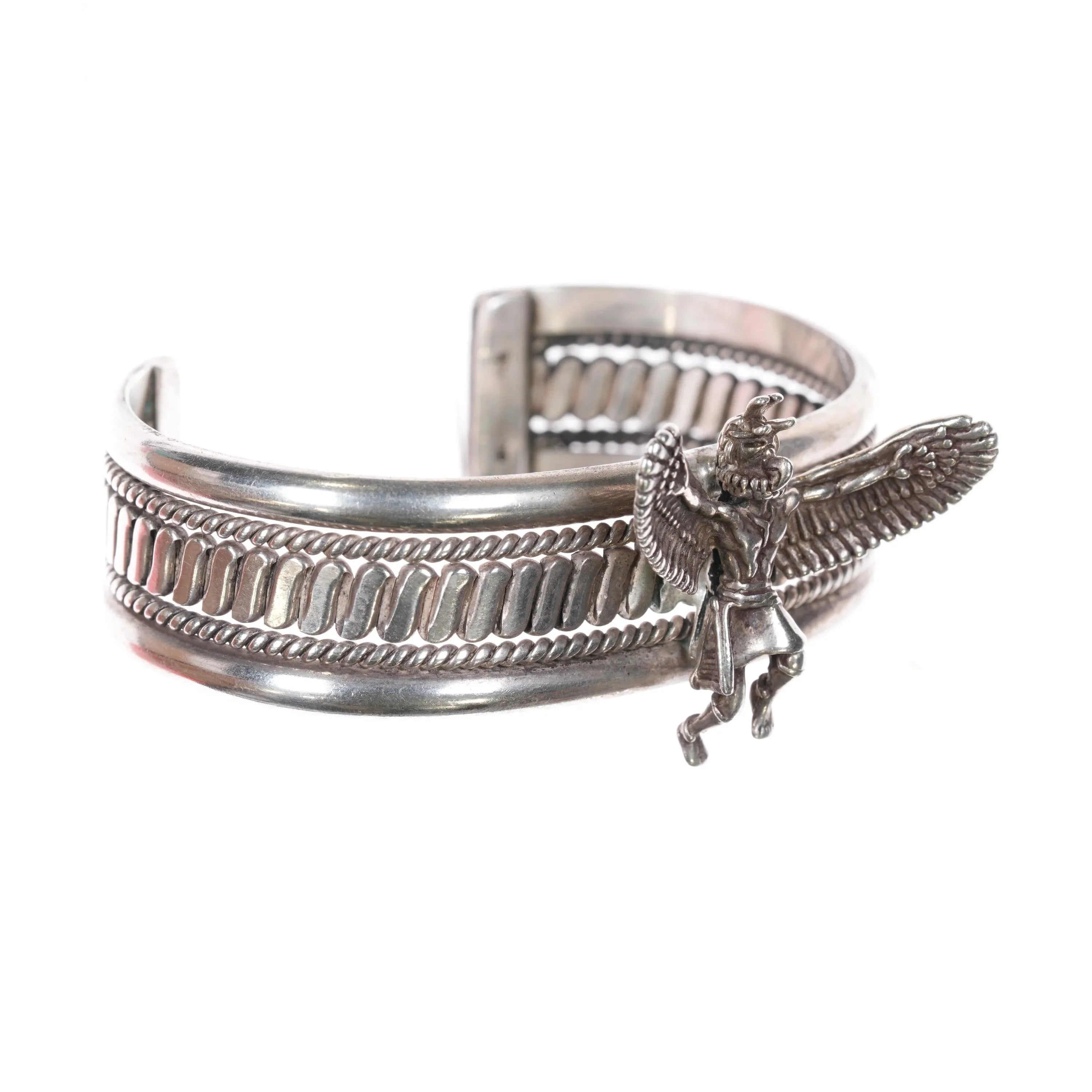 6.25" Vintage Tahe Navajo sterling eagle dancer cuff bracelet. Weight and measurements in pictures, solid sterling silver. No issues. Marked as shown, circa last quarter of the 20th century.
