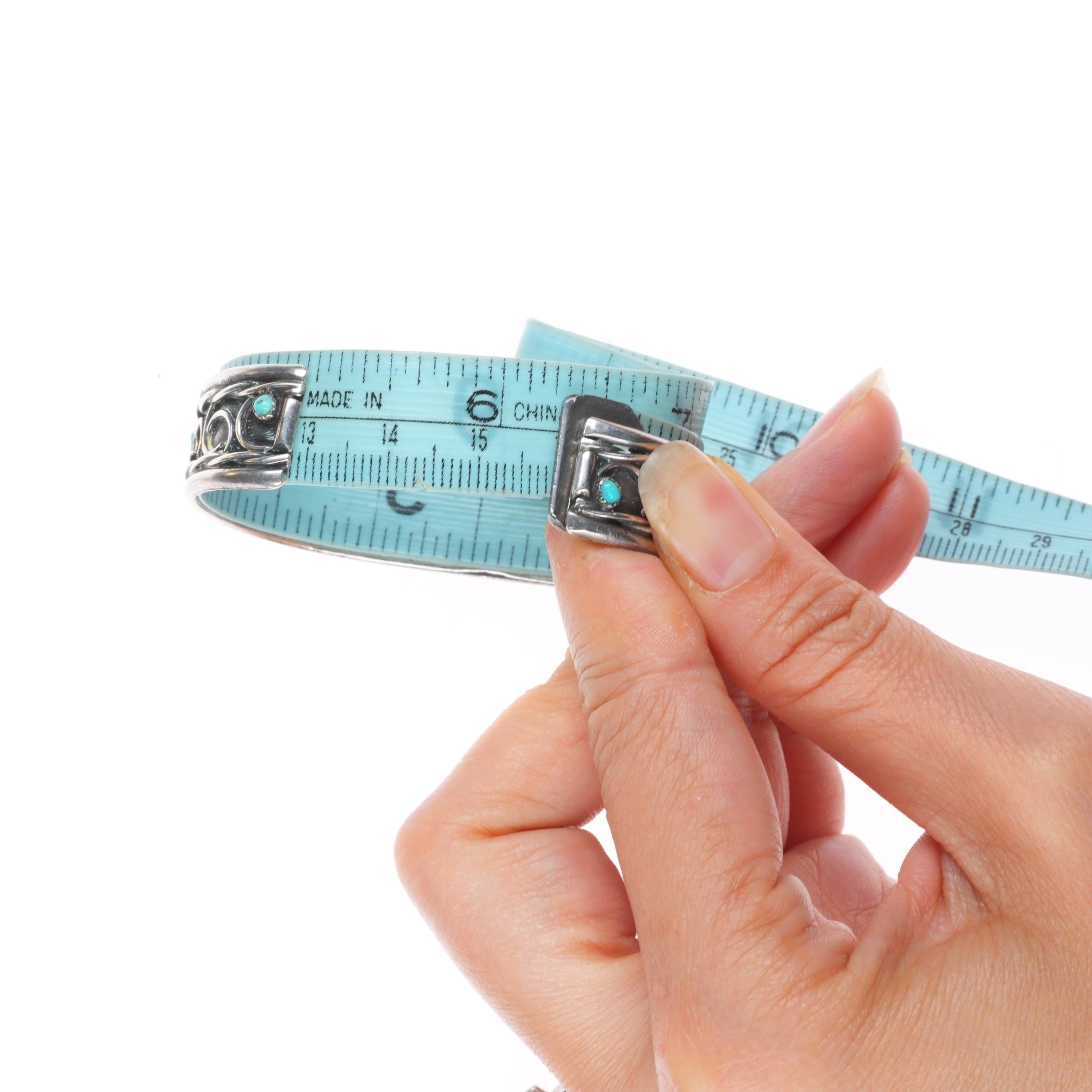 Bracelets are shown in the photos with a tape measure inside the bracelet, other photos will typically show the gap size. The size at the beginning of the title includes the gap. Almost all bracelets that don‘t have inlay work should be adjustable by at least .25", please refer to pictures for the gap size to see if it would work if slightly adjusted as the gap would change.