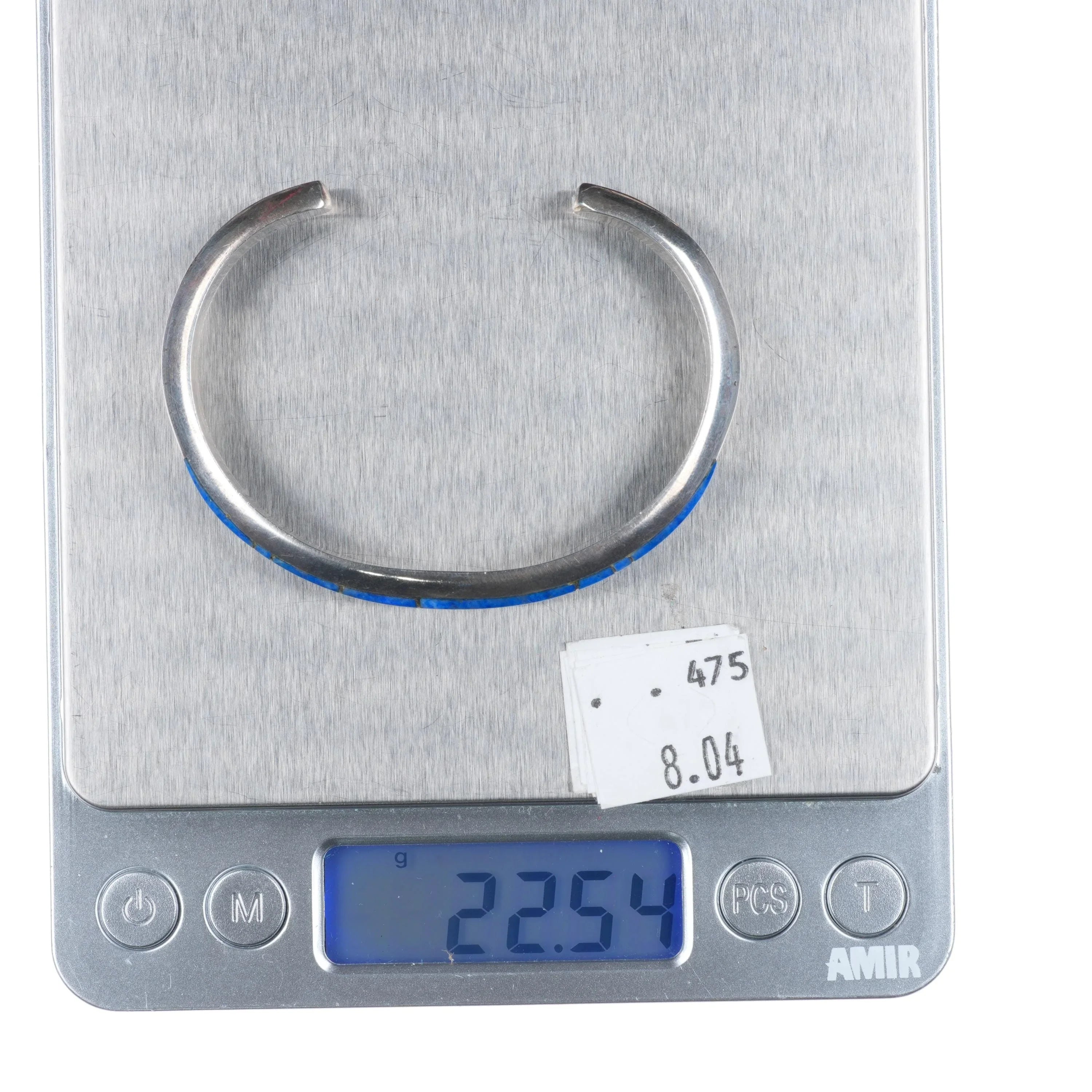 6.25" Wayne Muskett Navajo sterling silver denim Lapis inlay cuff bracelet