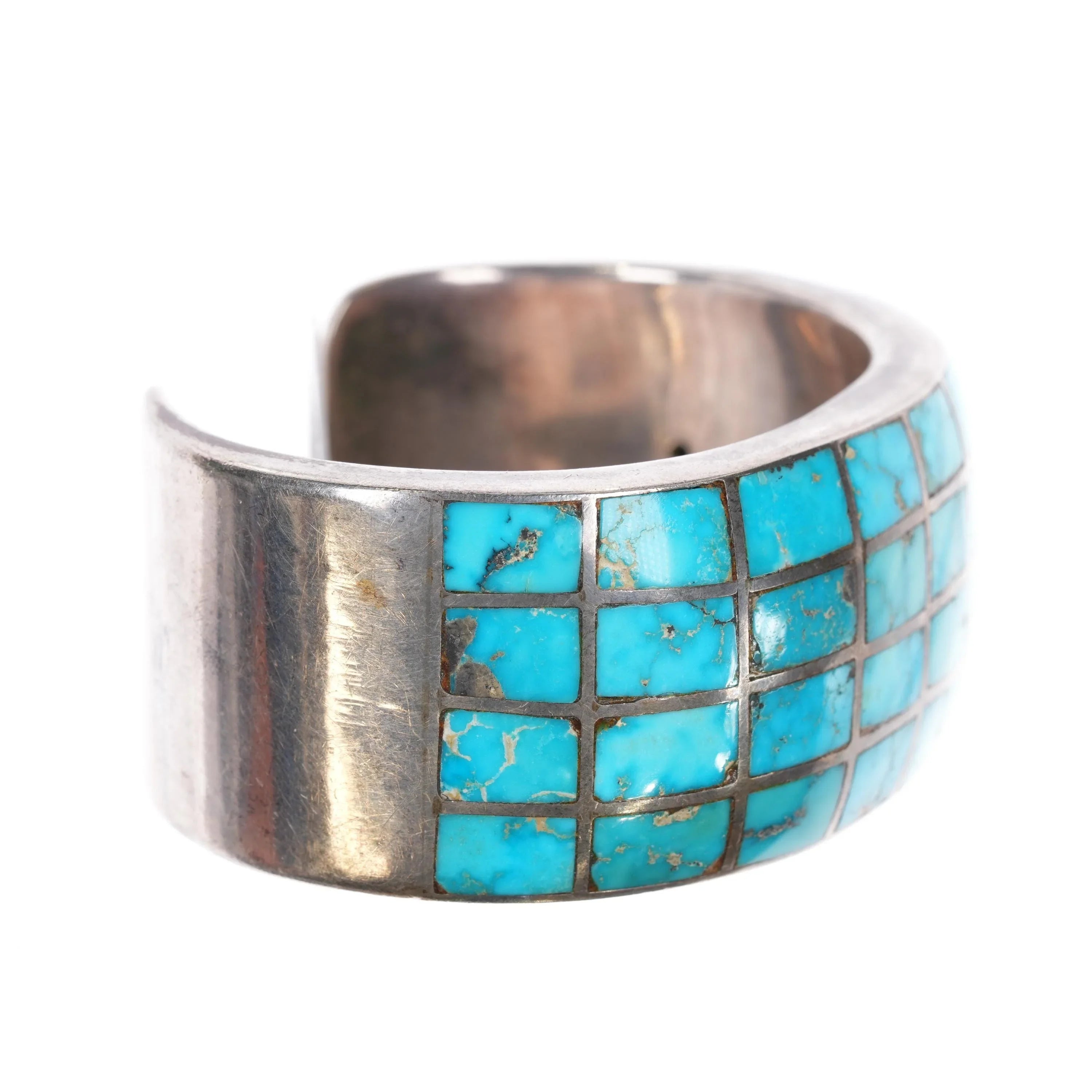 6.375" Vintage Zuni 4 row silver turquoise channel inlay cuff bracelet
