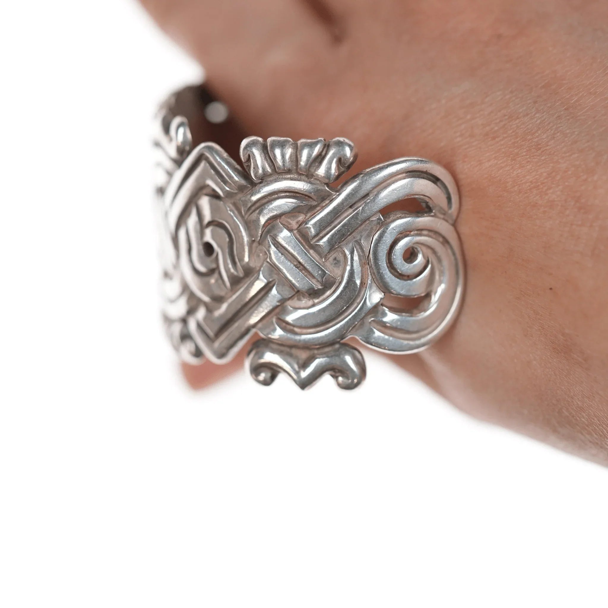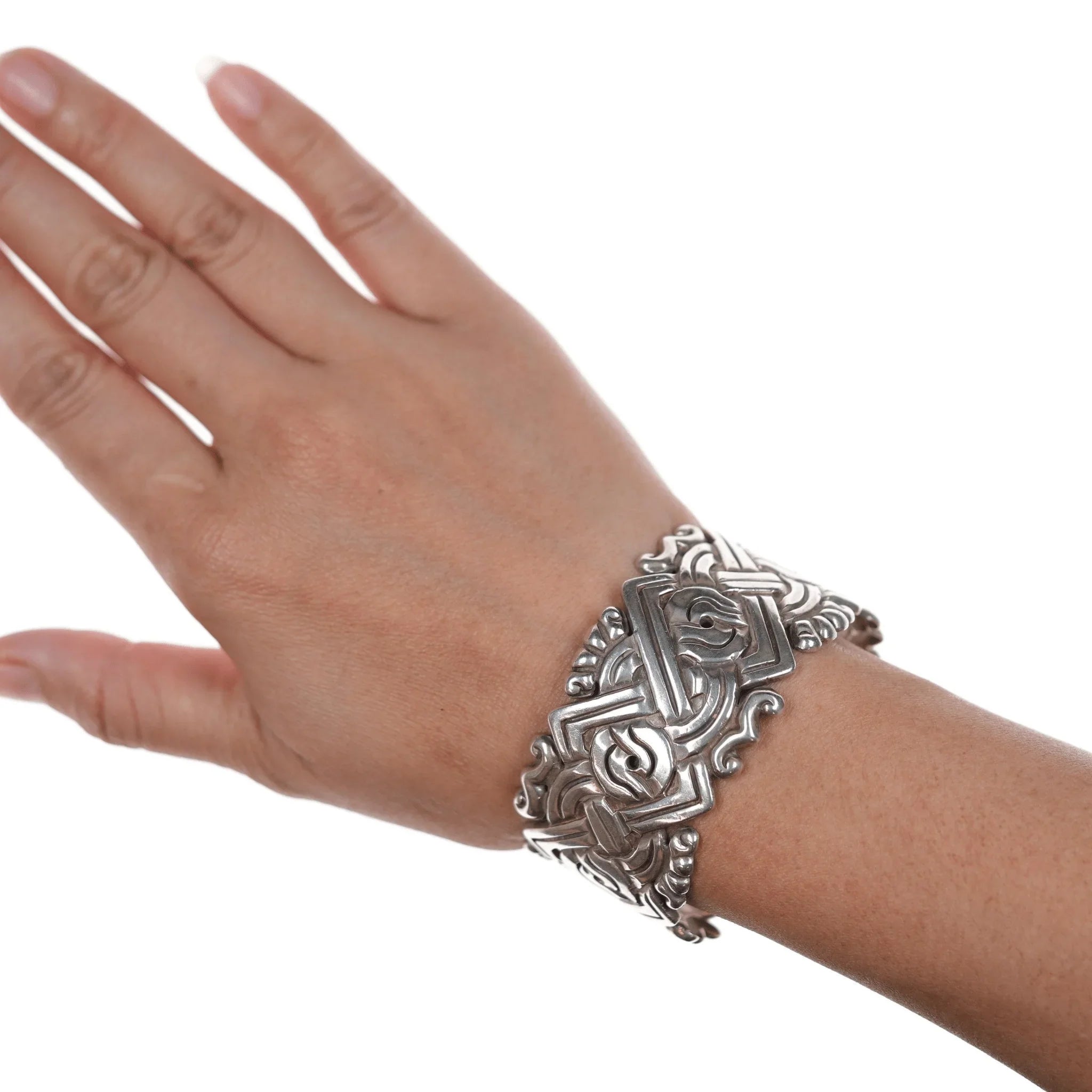 6 3/8" William Spratling Sterling Aztec style cuff bracelet