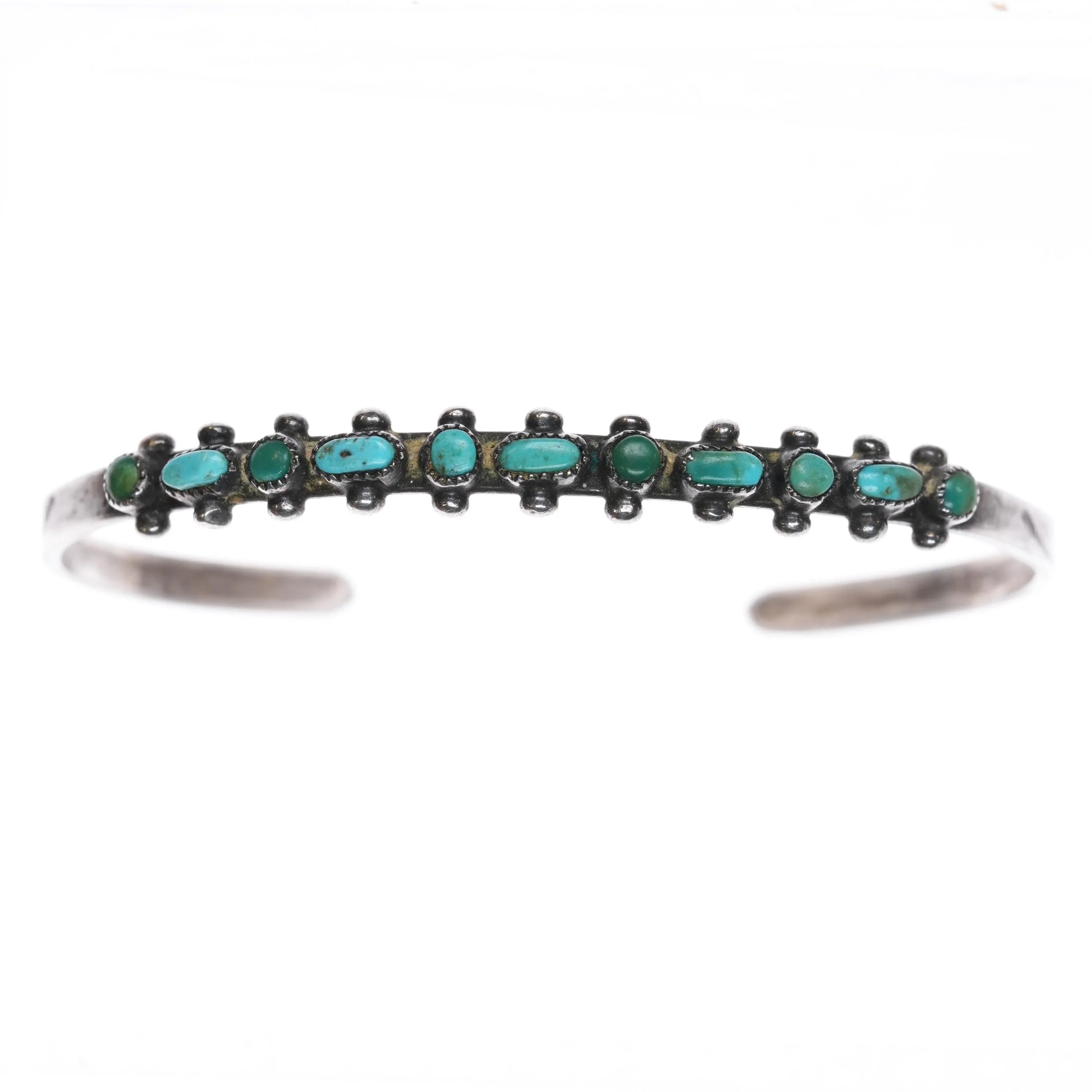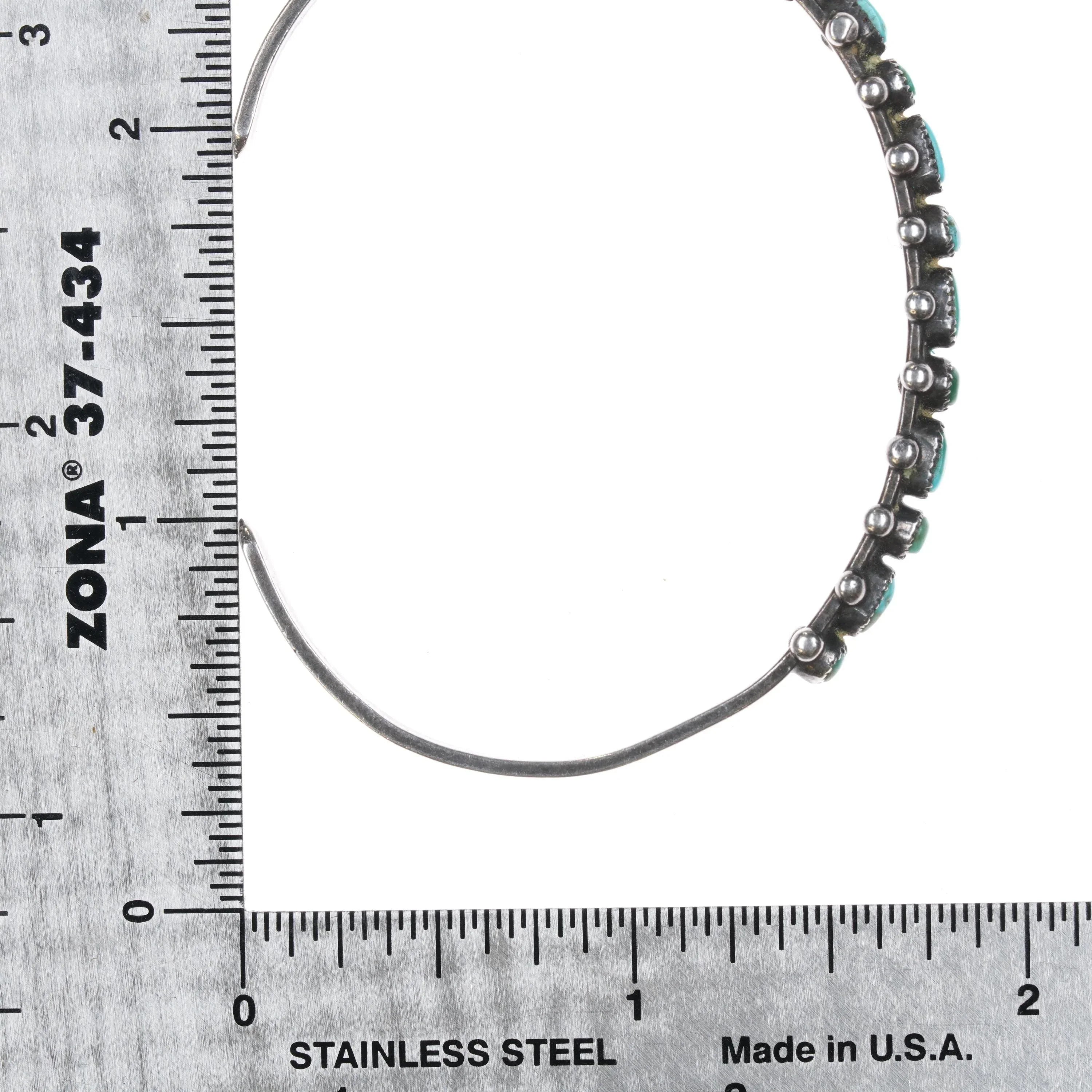 6" 30's-40's Zuni Silver Dot dot Dash turquoise row cuff bracelet