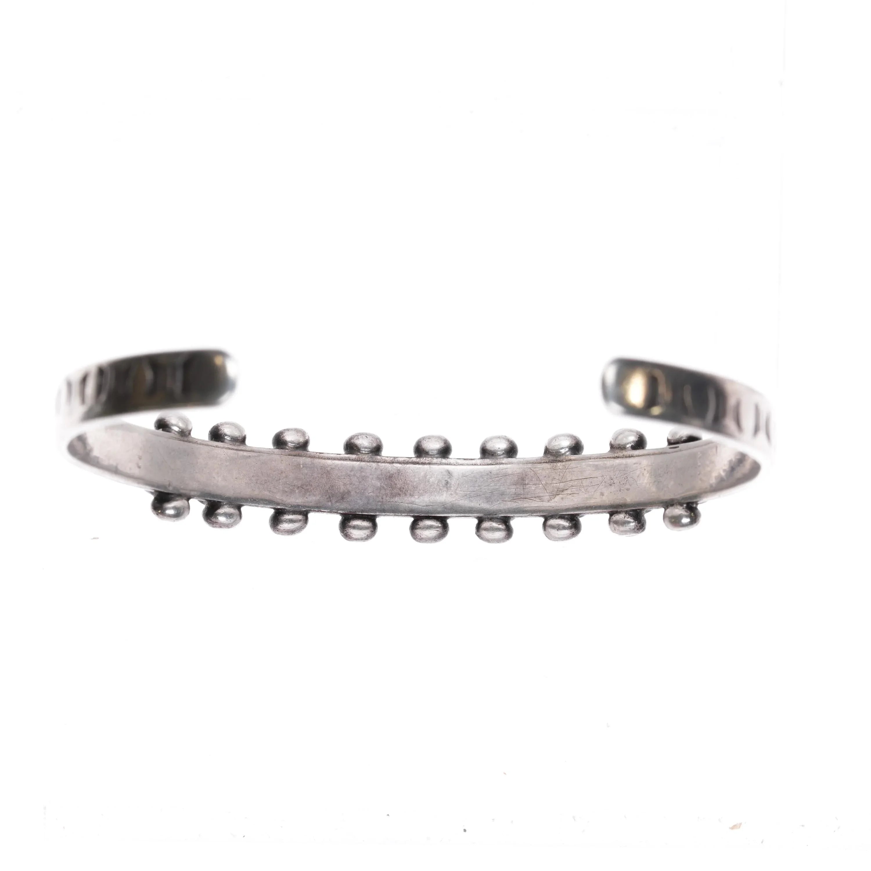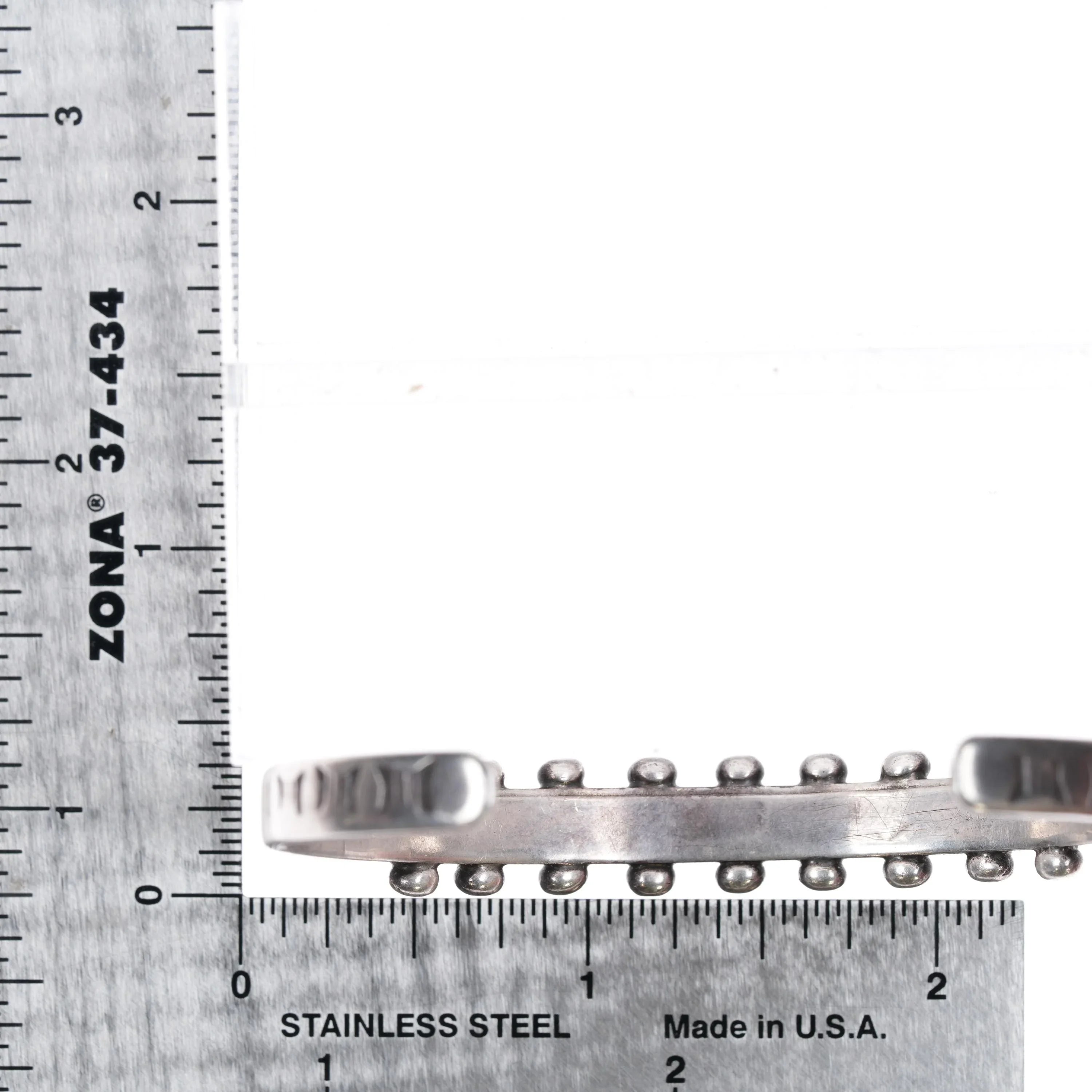 6.5" 1930's Sturdy Zuni silver turquoise row cuff bracelet with stamped sides