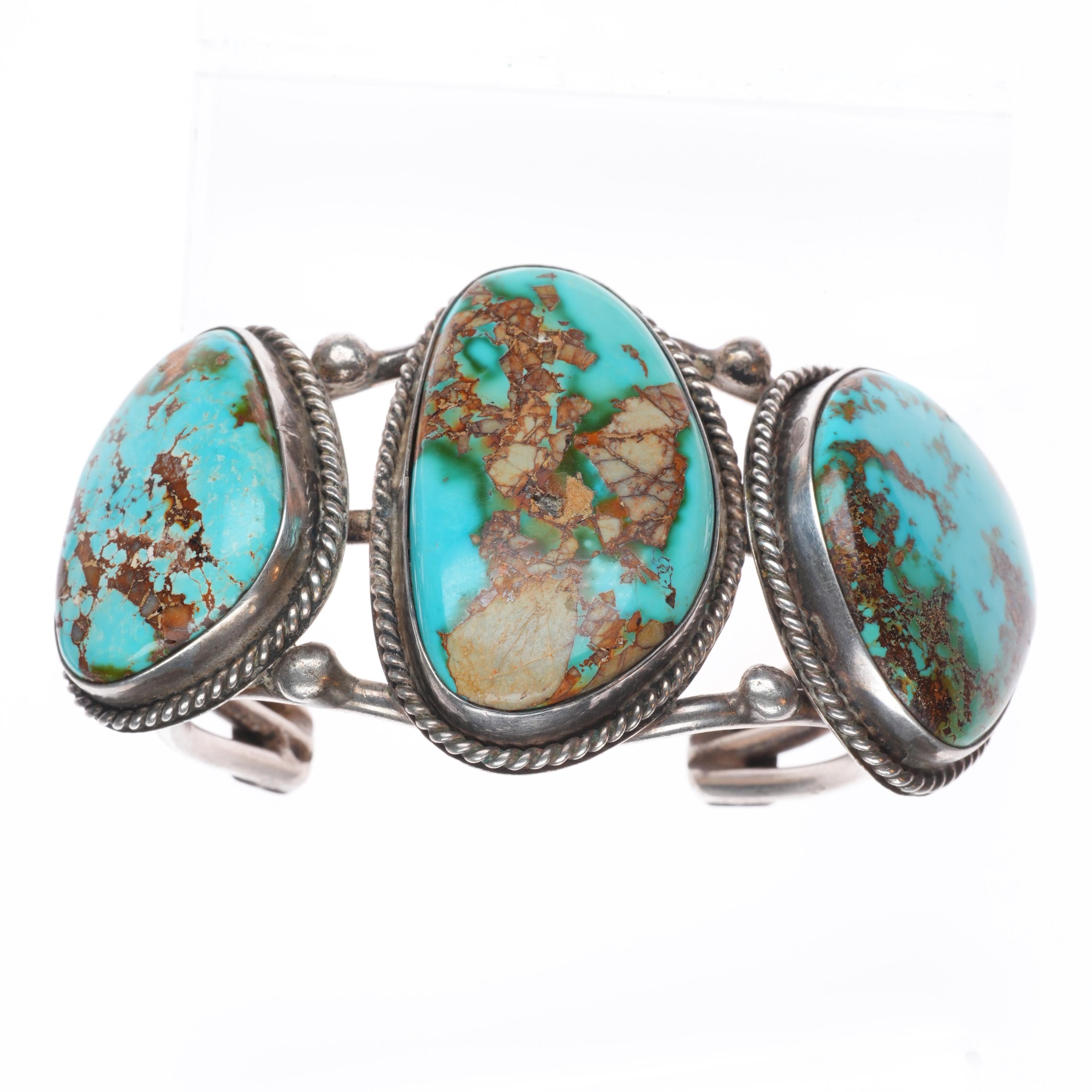 6.5" 1940's Navajo sterling silver Royston turquoise chunky cuff bracelet