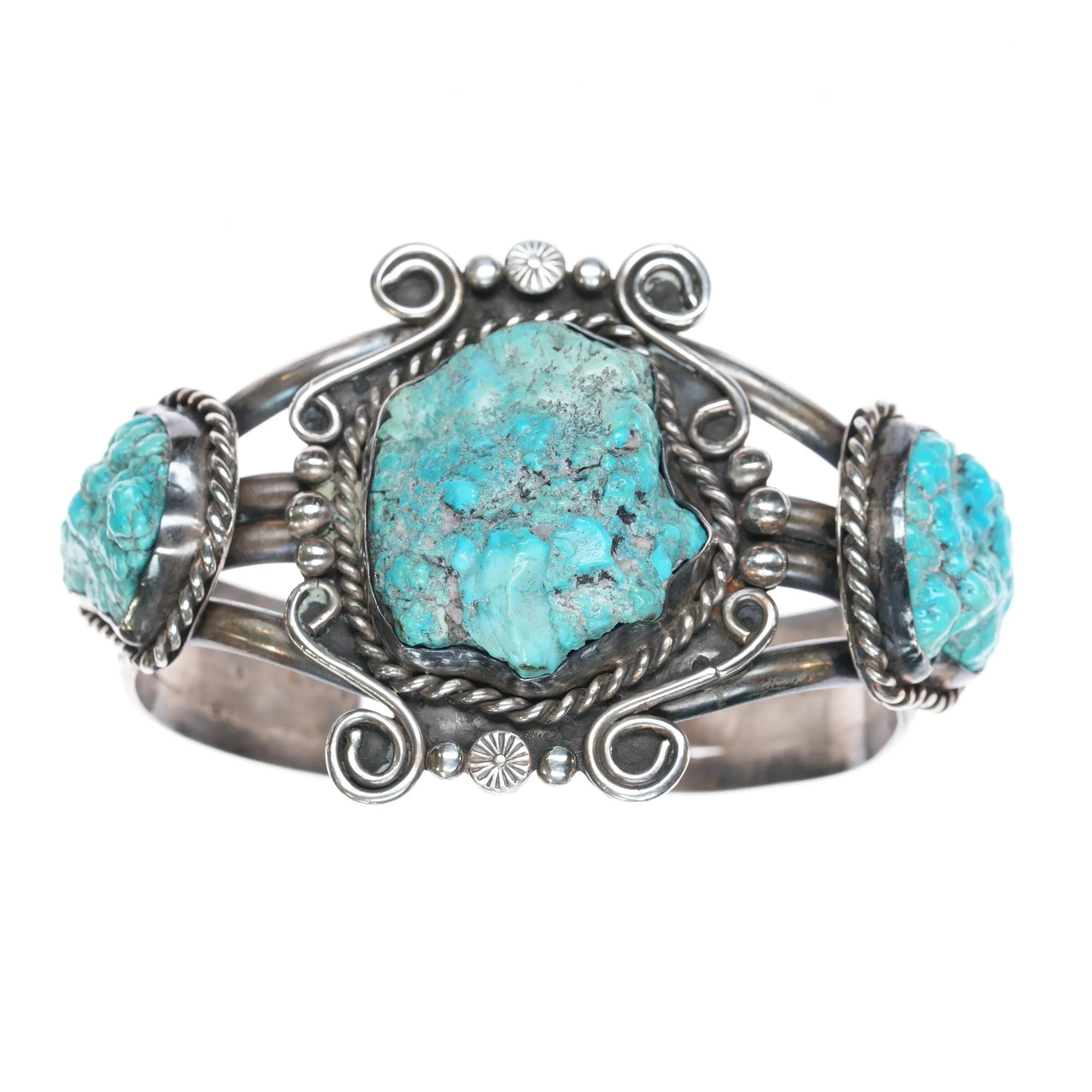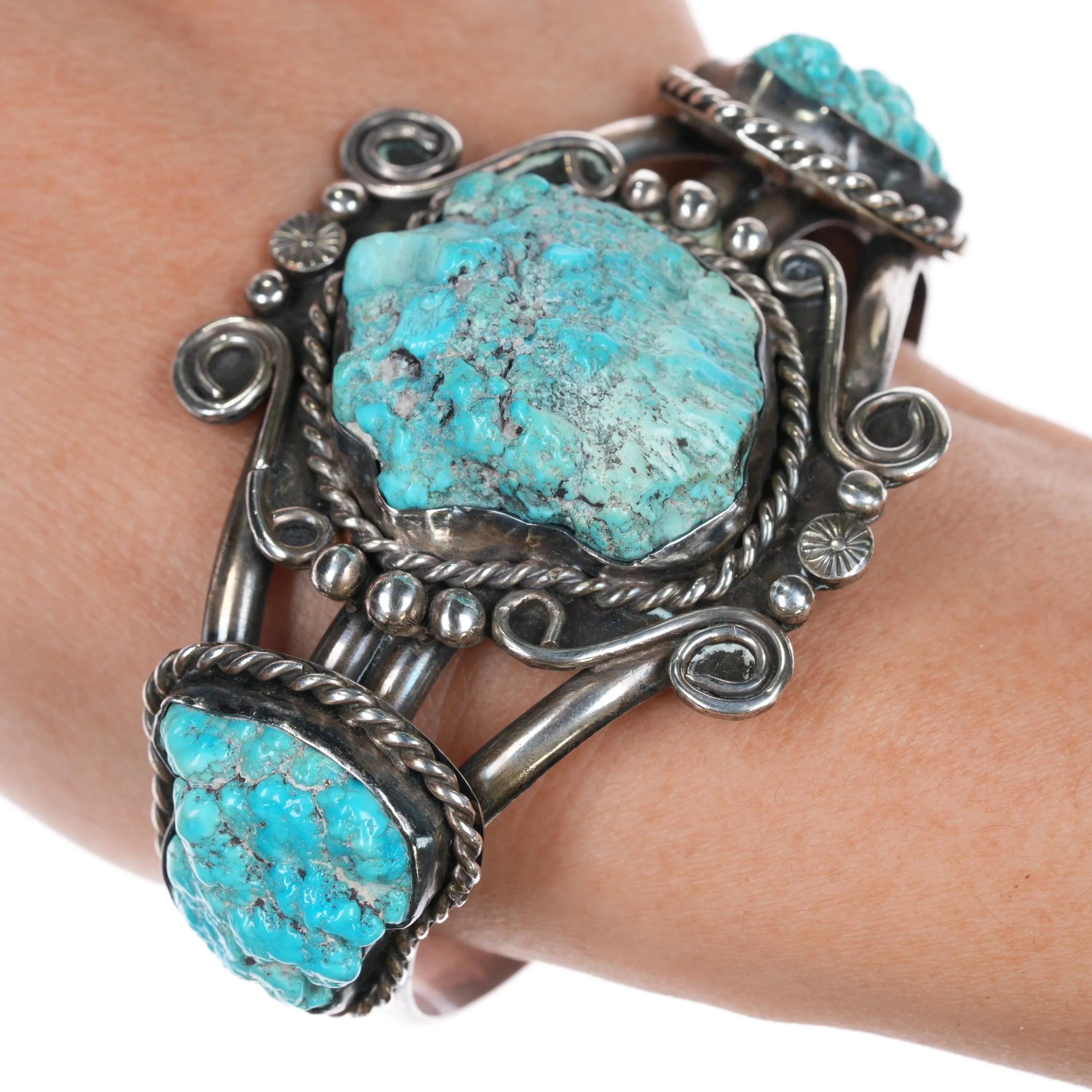 6.625" 60's-70's Navajo sterling Botryoidal turquoise cuff bracelet
