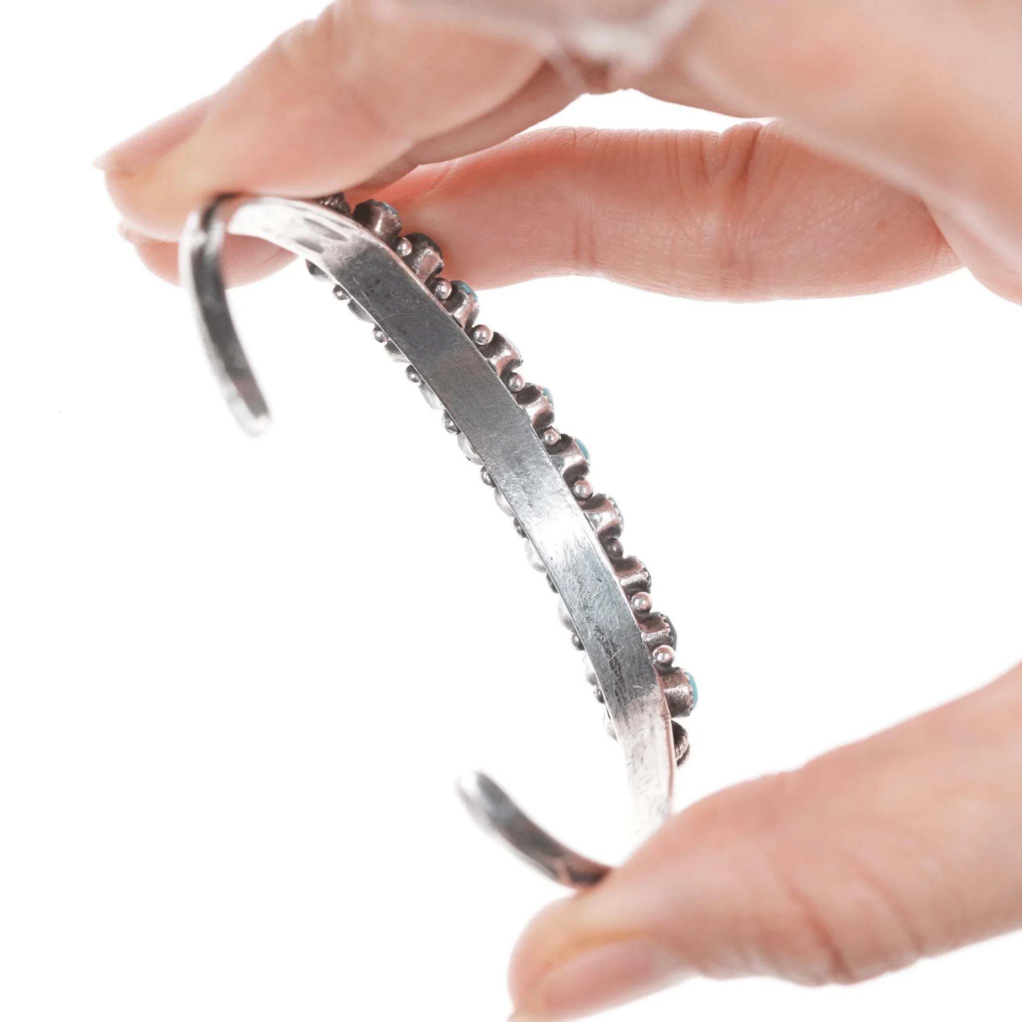 6 5/8" c1930's Zuni snake eye turquoise double row cuff bracelet<br><br>Marked or unmarked as shown in pics, weight and other measurements in pics. Sorry but my jewelry is stored in a secure location and cannot be accessed for more pictures,<br>videos, or measurements until sold. If you look at pictures/description your<br>question should be answered. Thank you so much for your time and consideration! If you would like to chat, that would be great, but lets chat about something that isn't answered in this listing that we put so much effort into already :)<br><br>All precious metals are tested and guaranteed. A Native American jewelry piece referred to as "silver" or "ingot" is guaranteed to be at least 90% silver. Bracelets are photographed on a 6" women's wrist.
