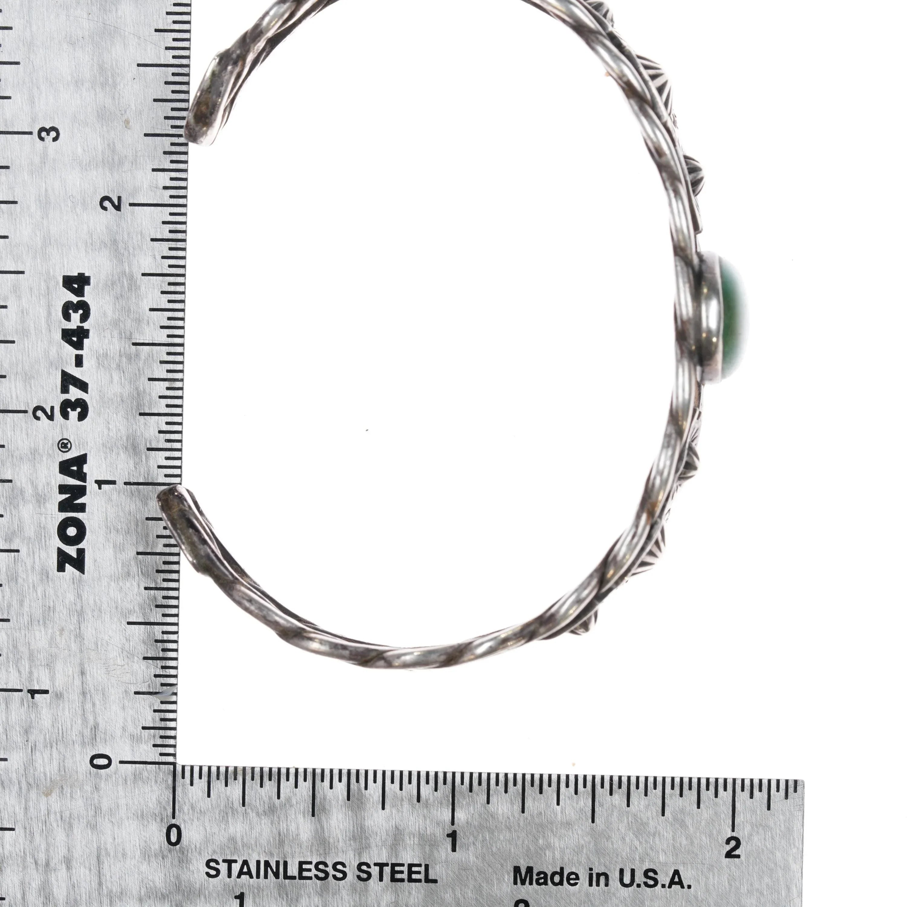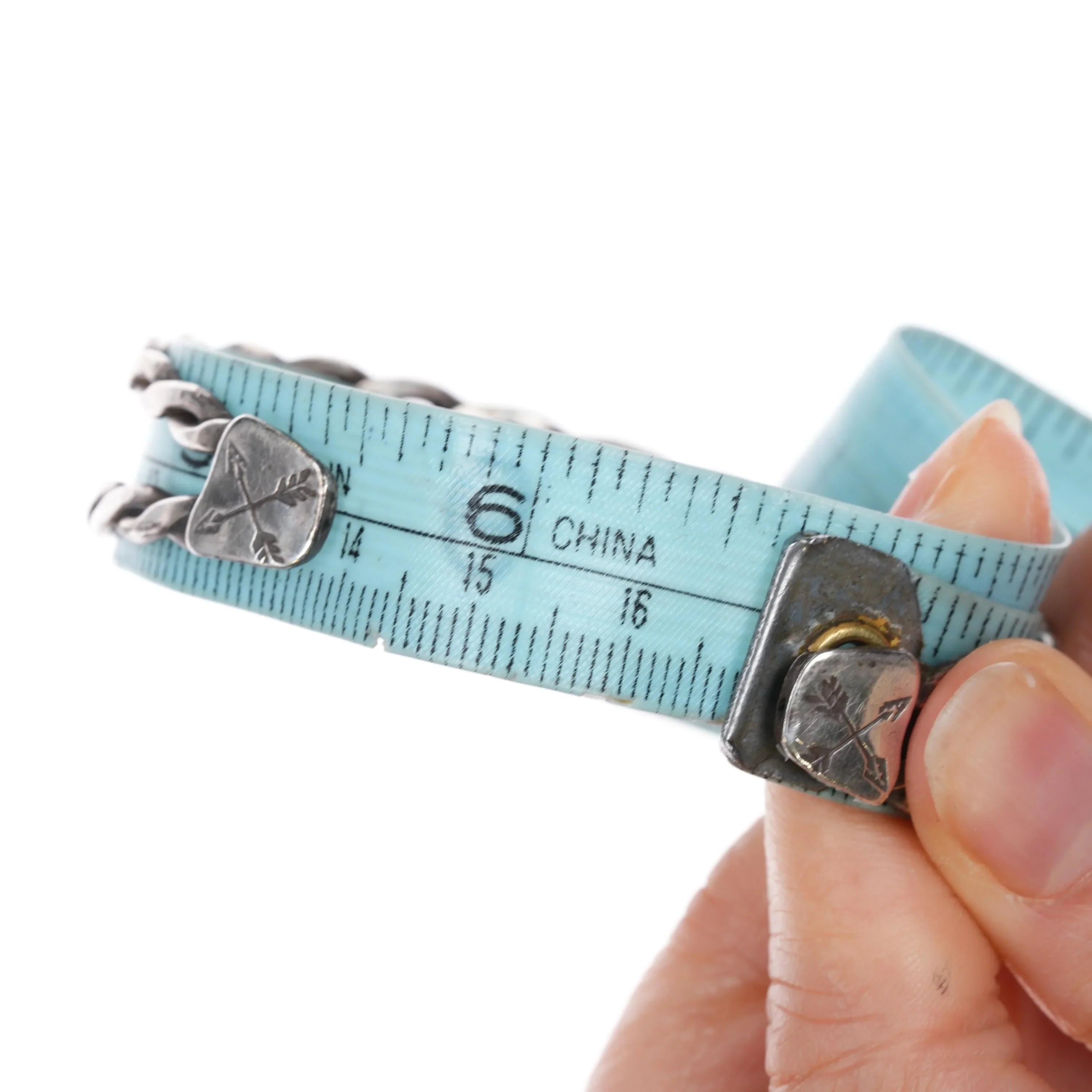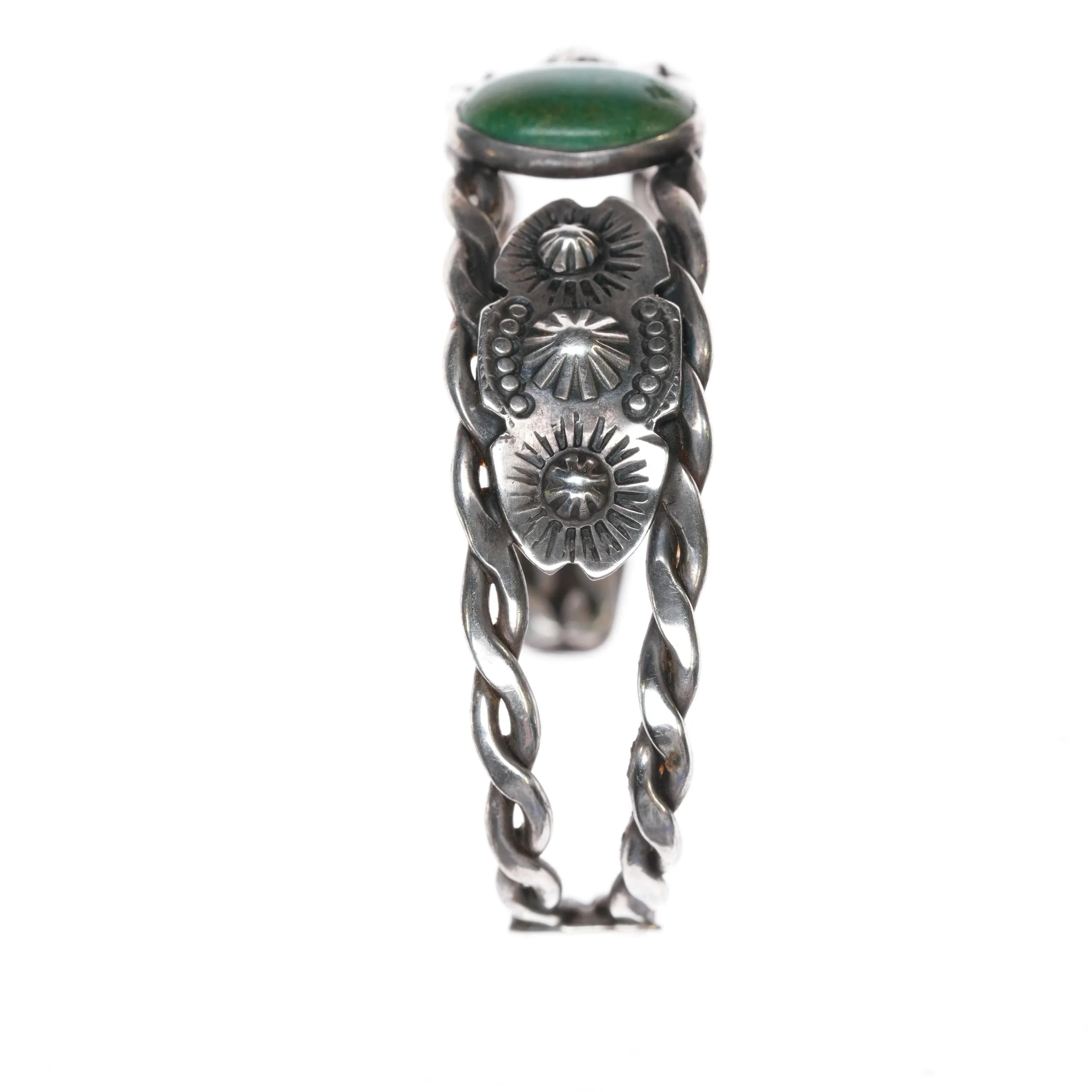 6.625" c1940's Fred Harvey era twisted sterling wire turquoise cuff bracelet