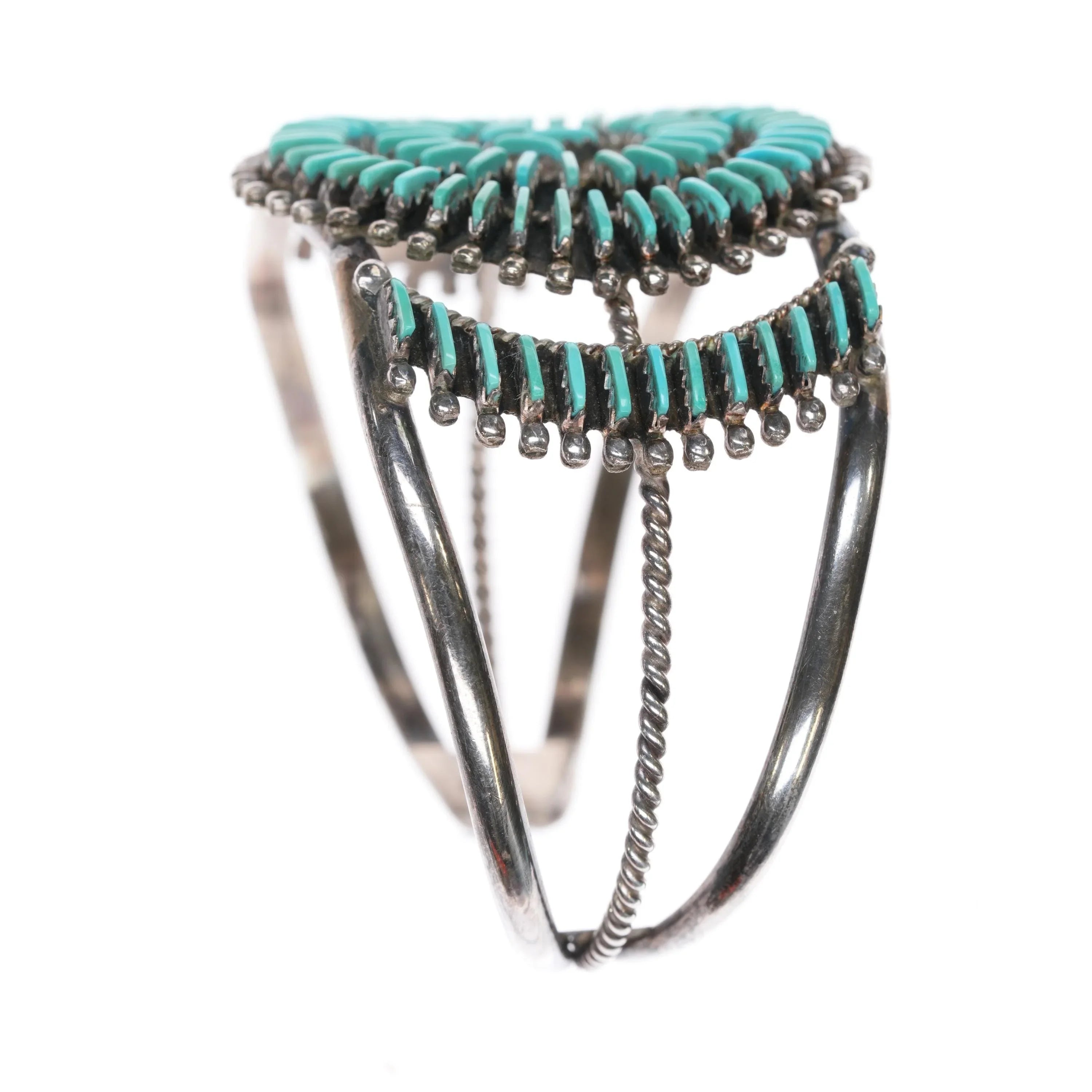 6.5" Bellson Zuni sterling Needlepoint turquoise cuff bracelet