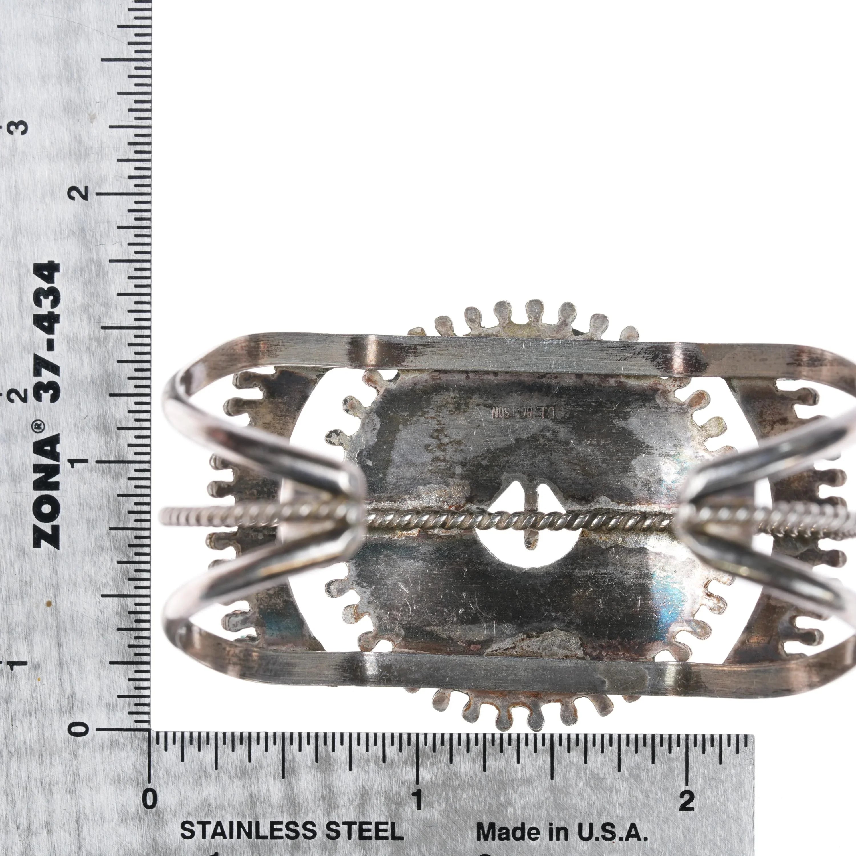 6.5" Bellson Zuni sterling Needlepoint turquoise cuff bracelet. Solid sterling silver, marked as shown. Will fit up to a 6.5" wrist, gap size and other measurements in pictures. No damage.