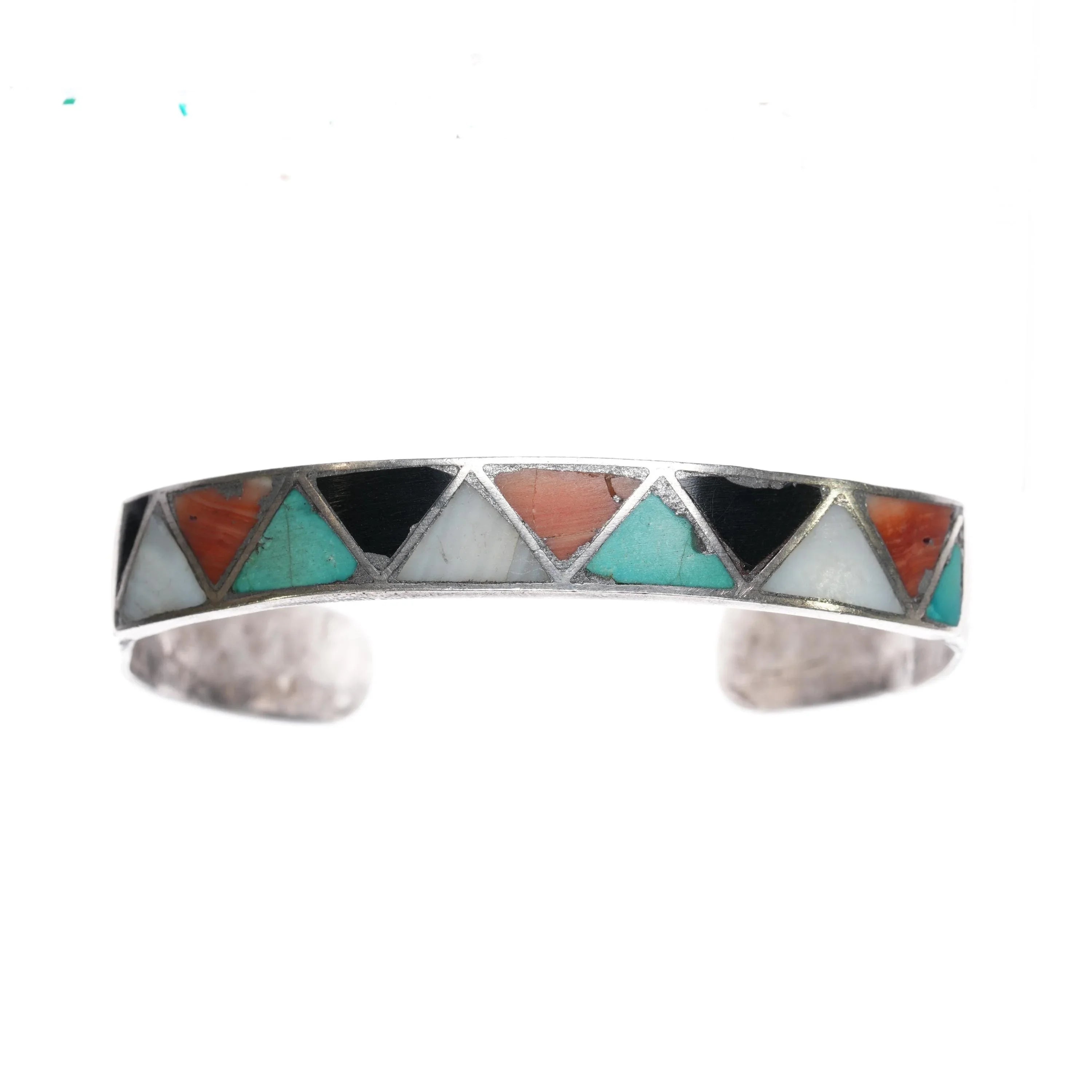 6.5" c1940's Zuni hand stamped silver channel inlay cuff bracelet