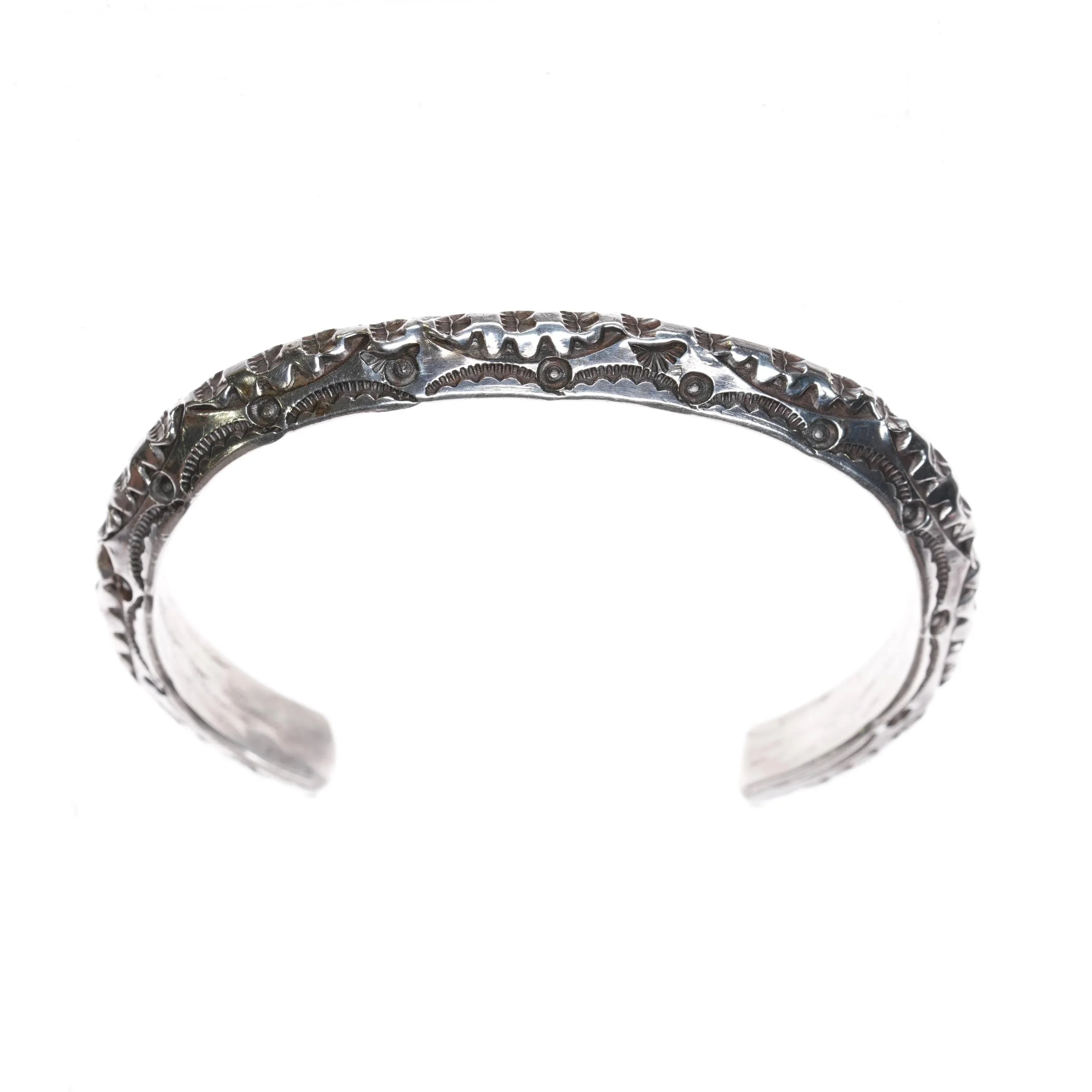 6.5" Deep stamped Navajo sterling silver carinated cuff bracelet
