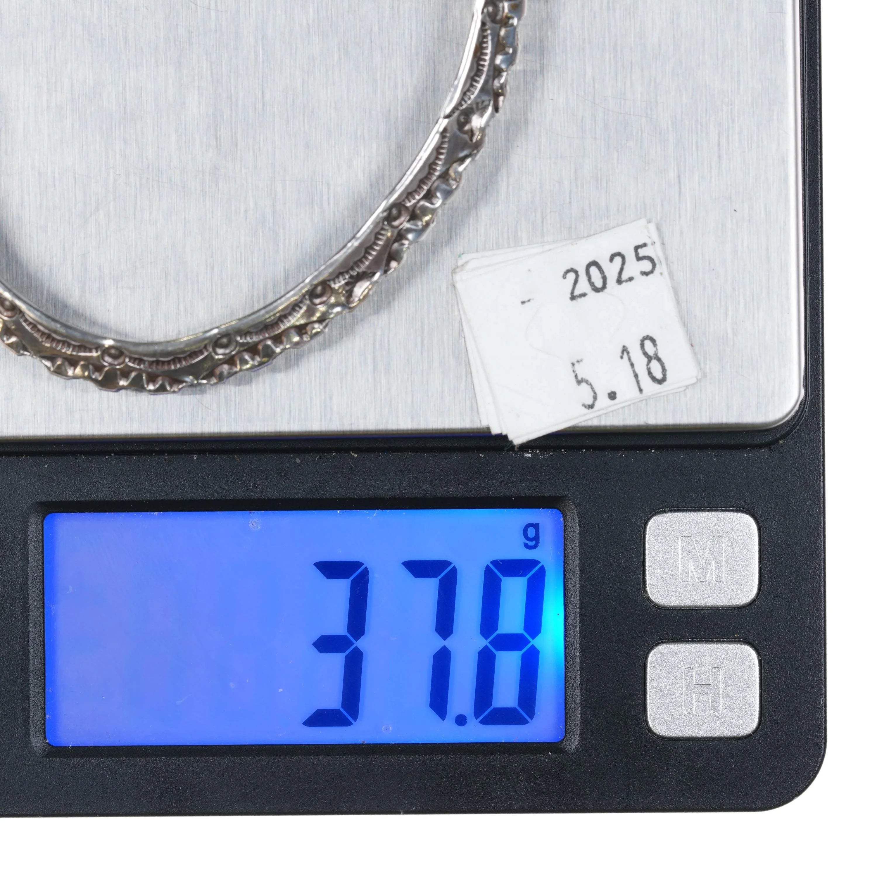 6.5" Deep stamped Navajo sterling silver carinated cuff bracelet Weight and measurements in pictures, Tested and guaranteed solid sterling silver with no markings. Vintage, possibly unworn.