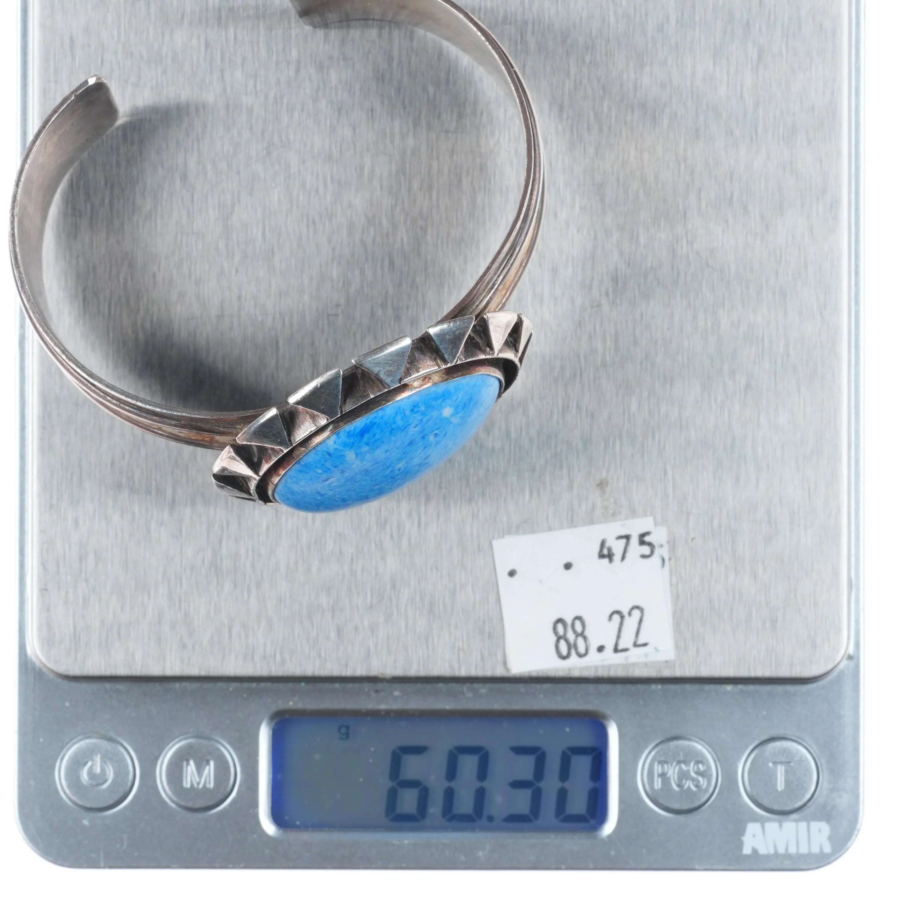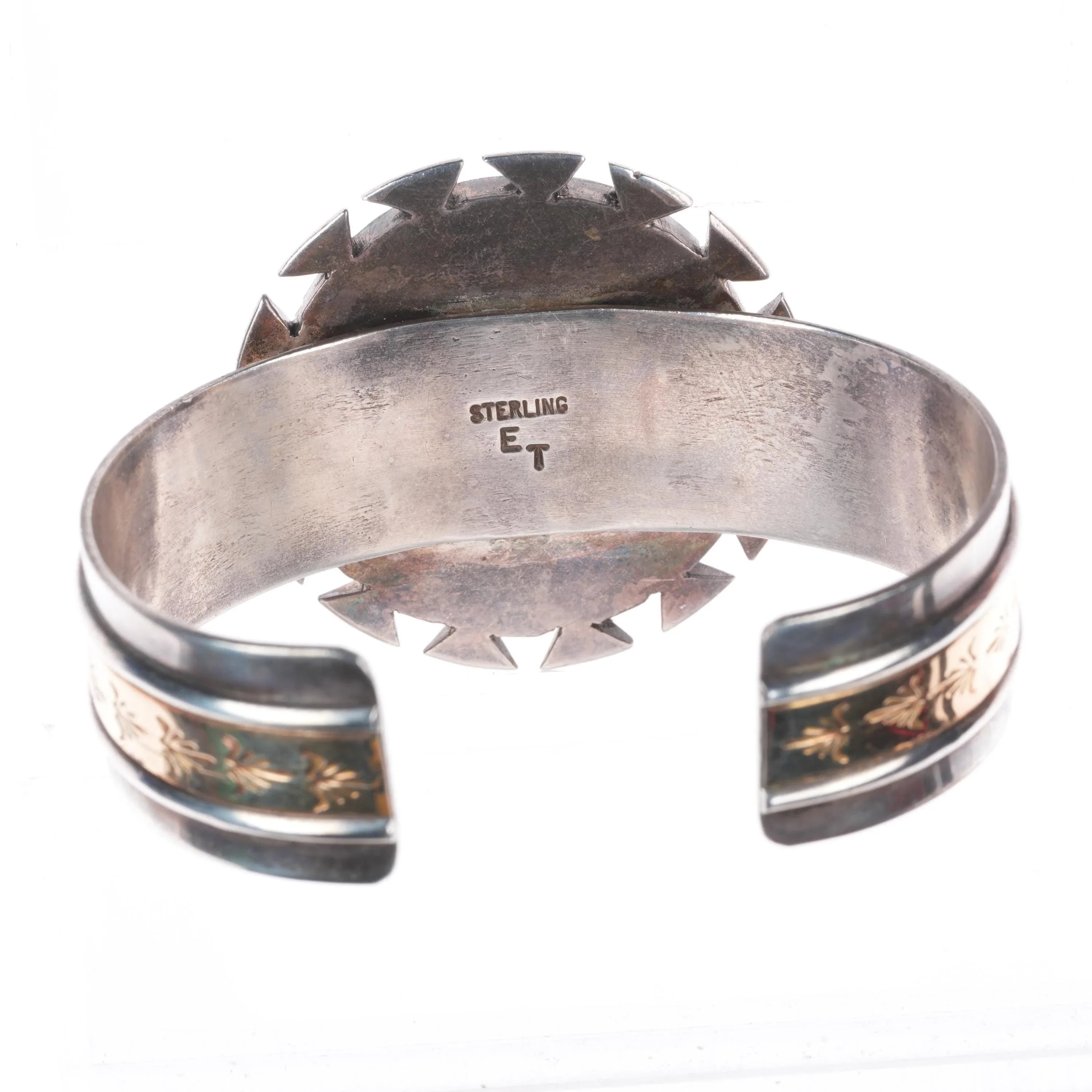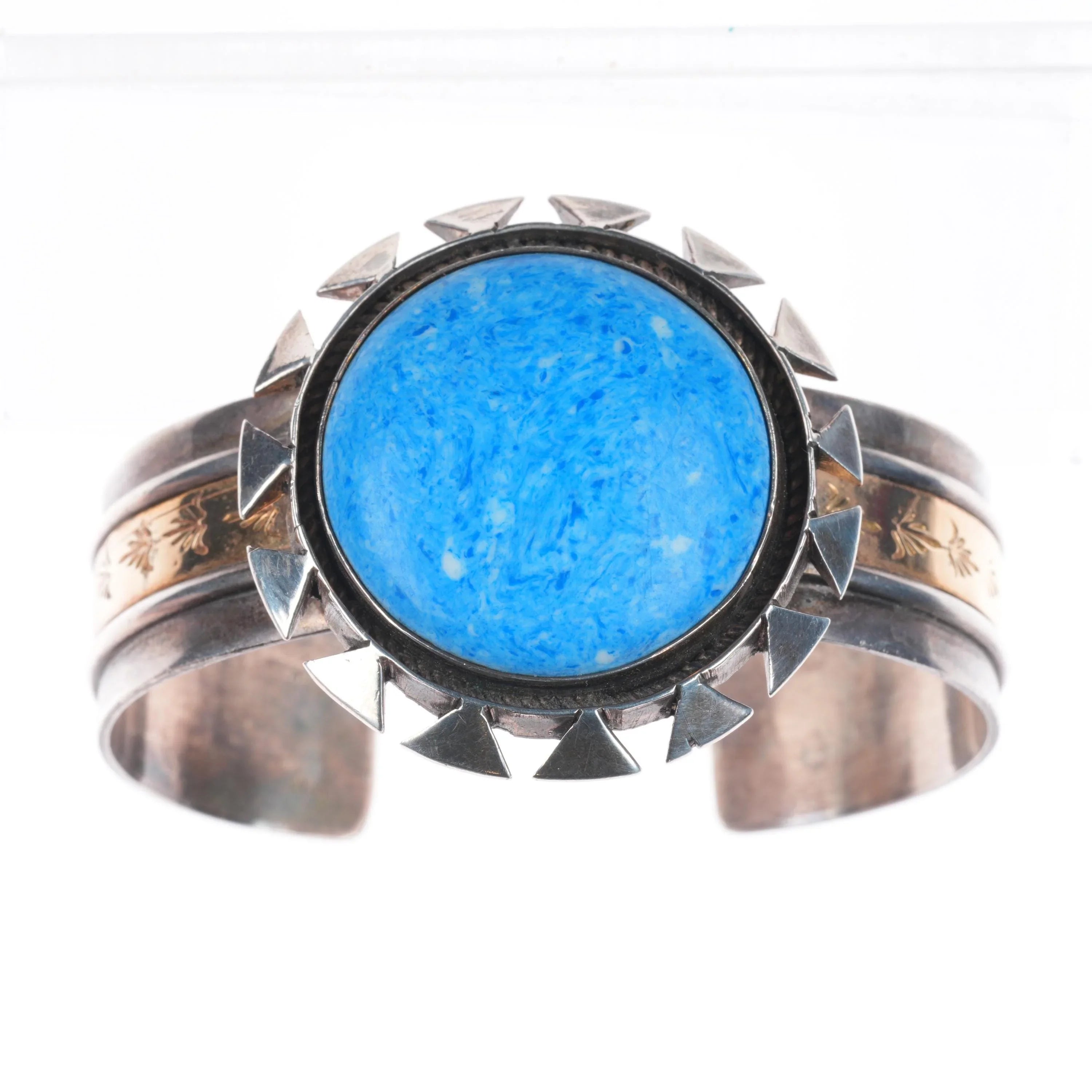 6.5" ET Navajo sterling silver denim lapis gold filled cuff bracelet. Tested and guaranteed solid sterling silver with weight and measurements in pictures. Circa last quarter of the 20th century. No issues.