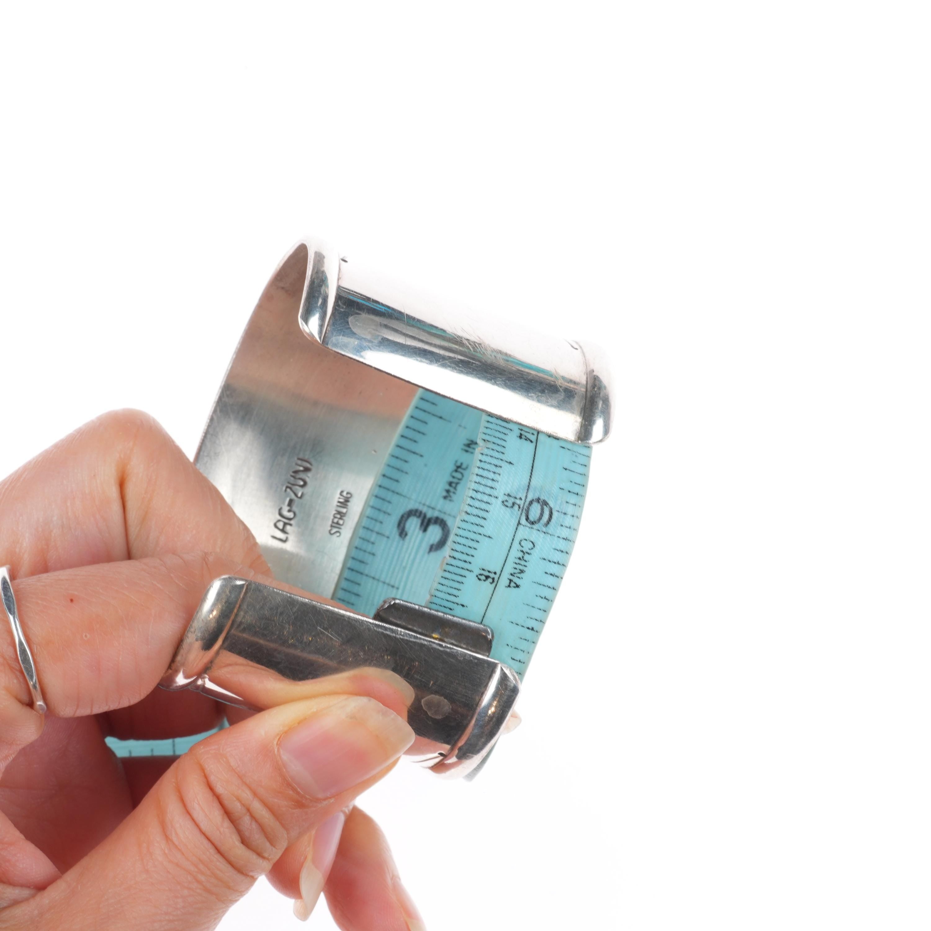 6.5" Glenn Paquin Lag Zuni wide band sterling silver cuff bracelet. Tested and guaranteed solid sterling silver with weight and measurements in pictures. Circa last quarter of the 20th century with age appropriate wear..