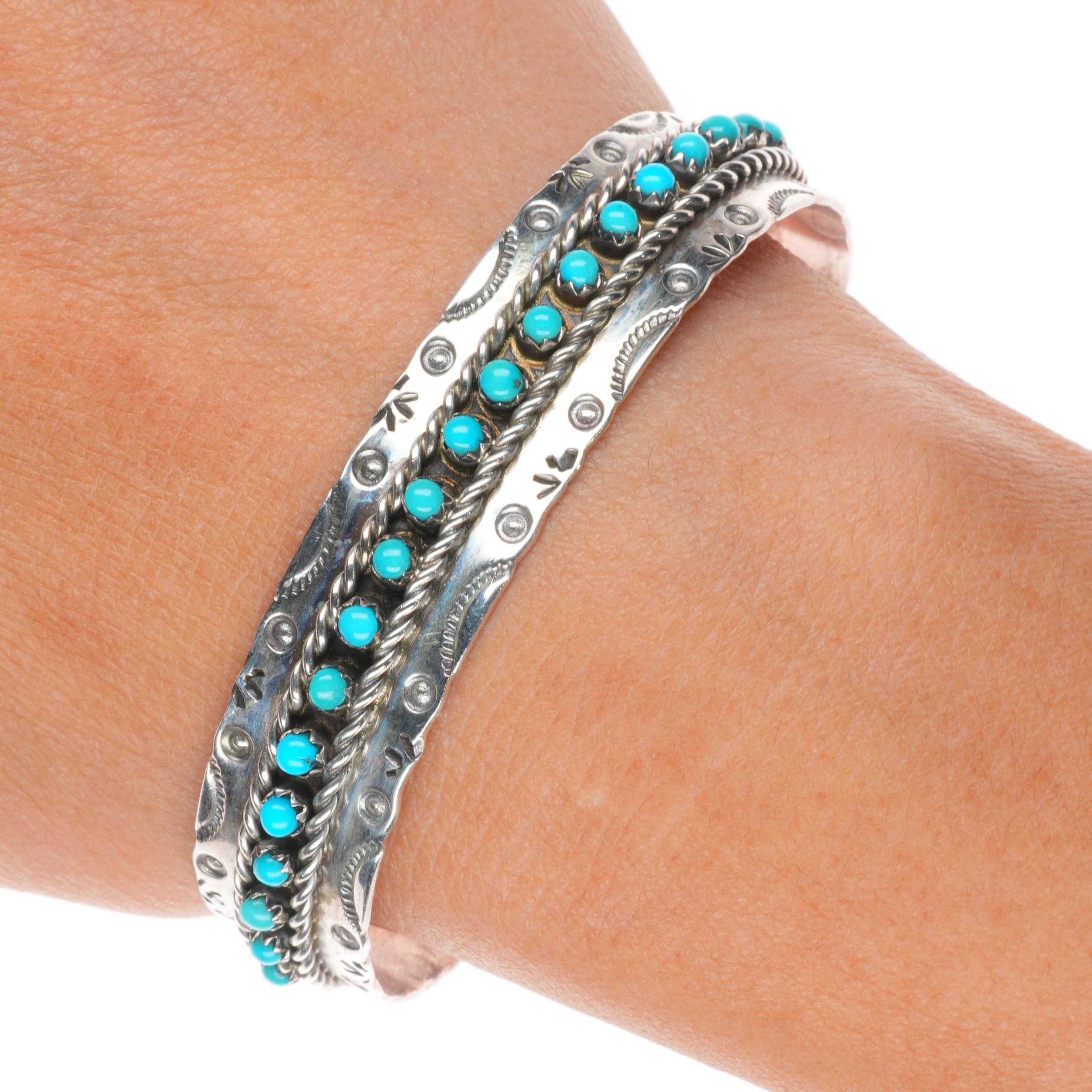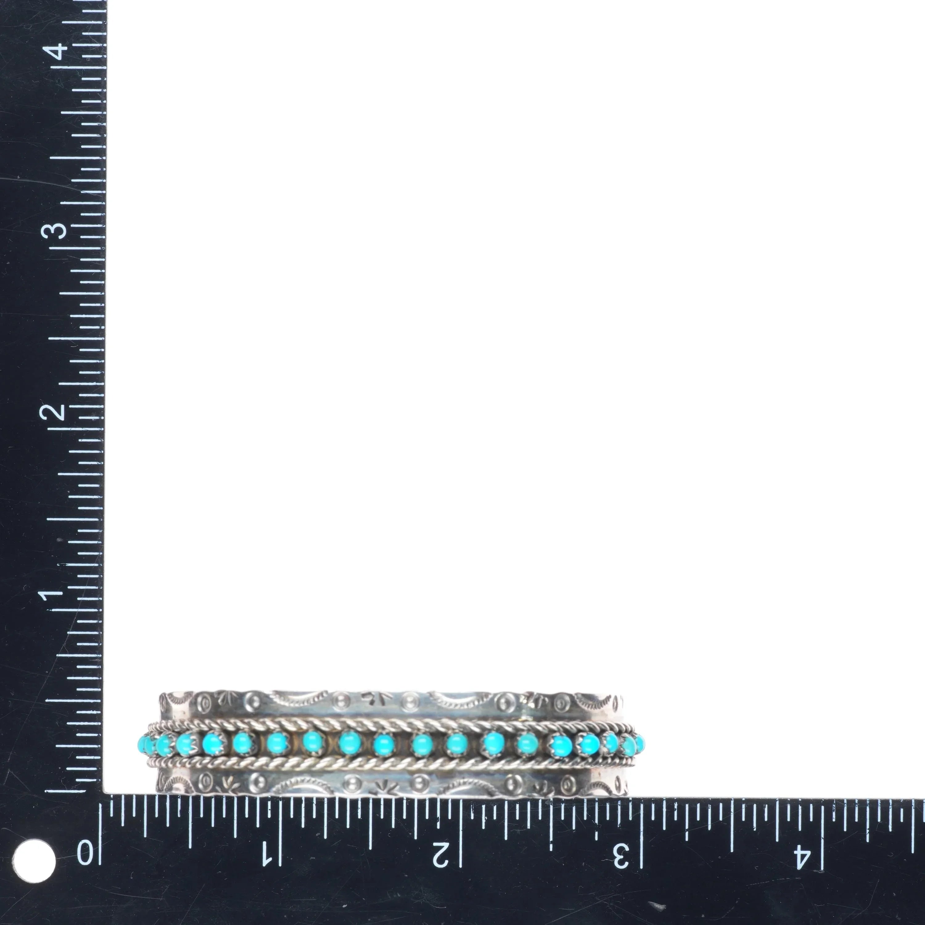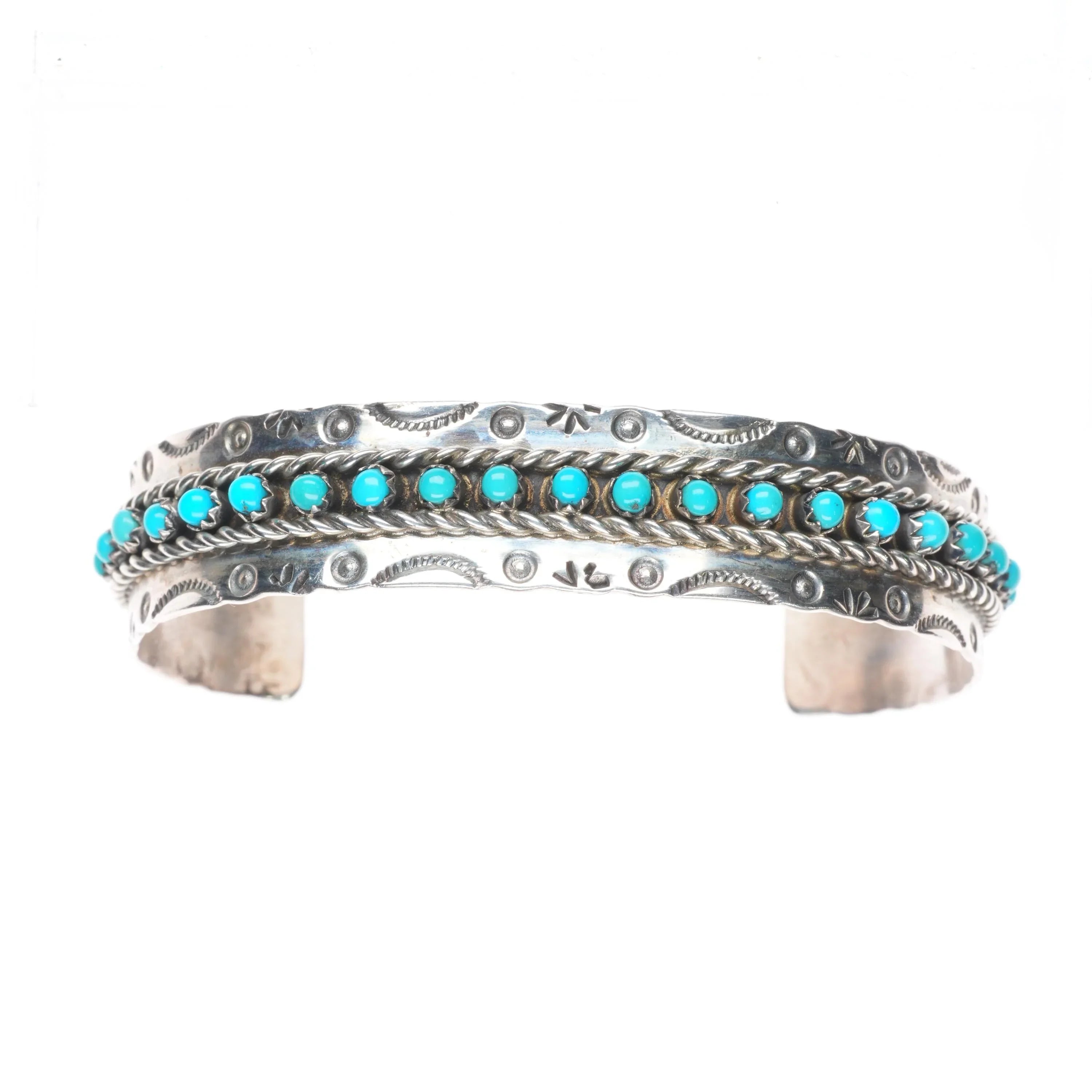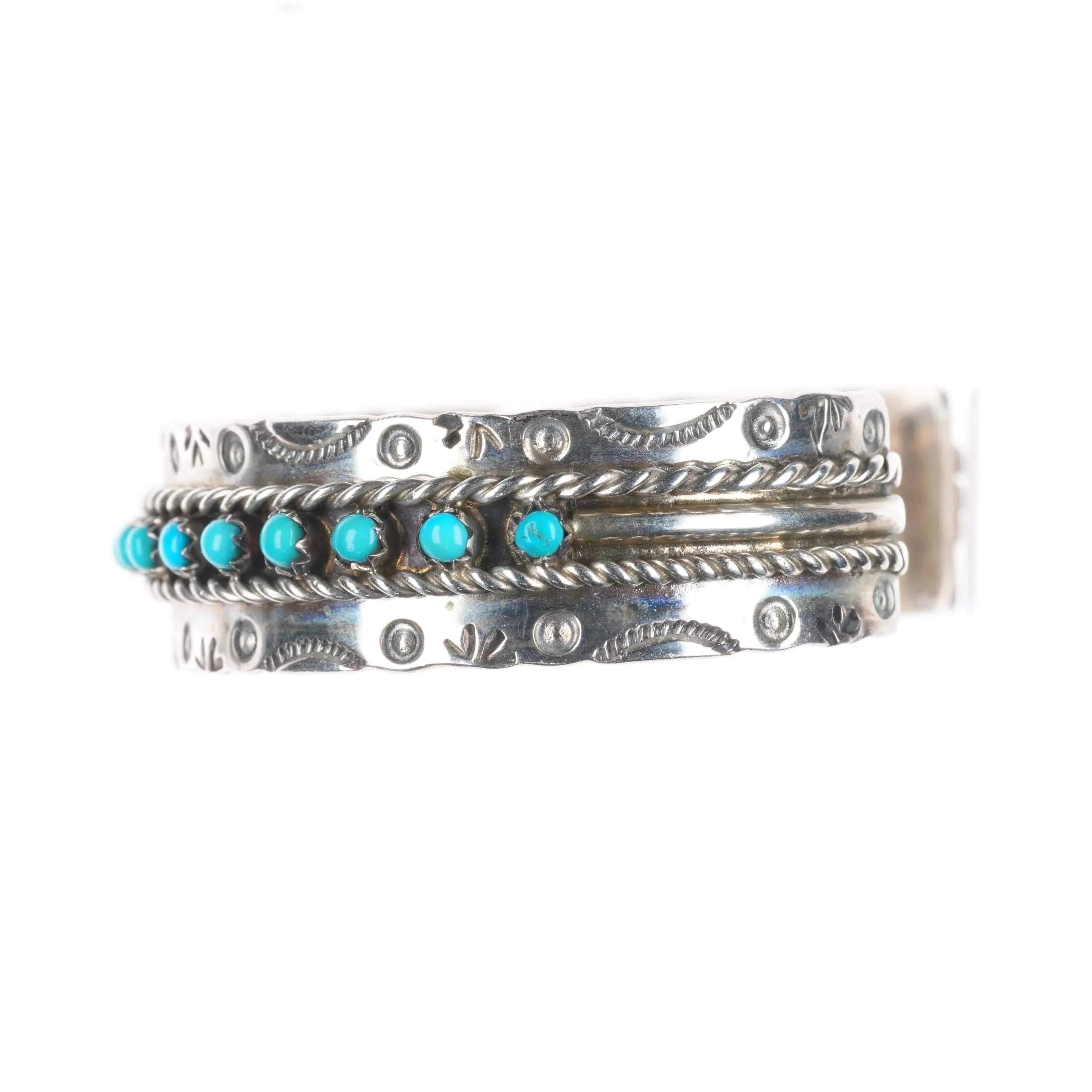 6.5" Jason/Pearl Ukestine Zuni sterling silver snake eye turquoise cuff bracelet