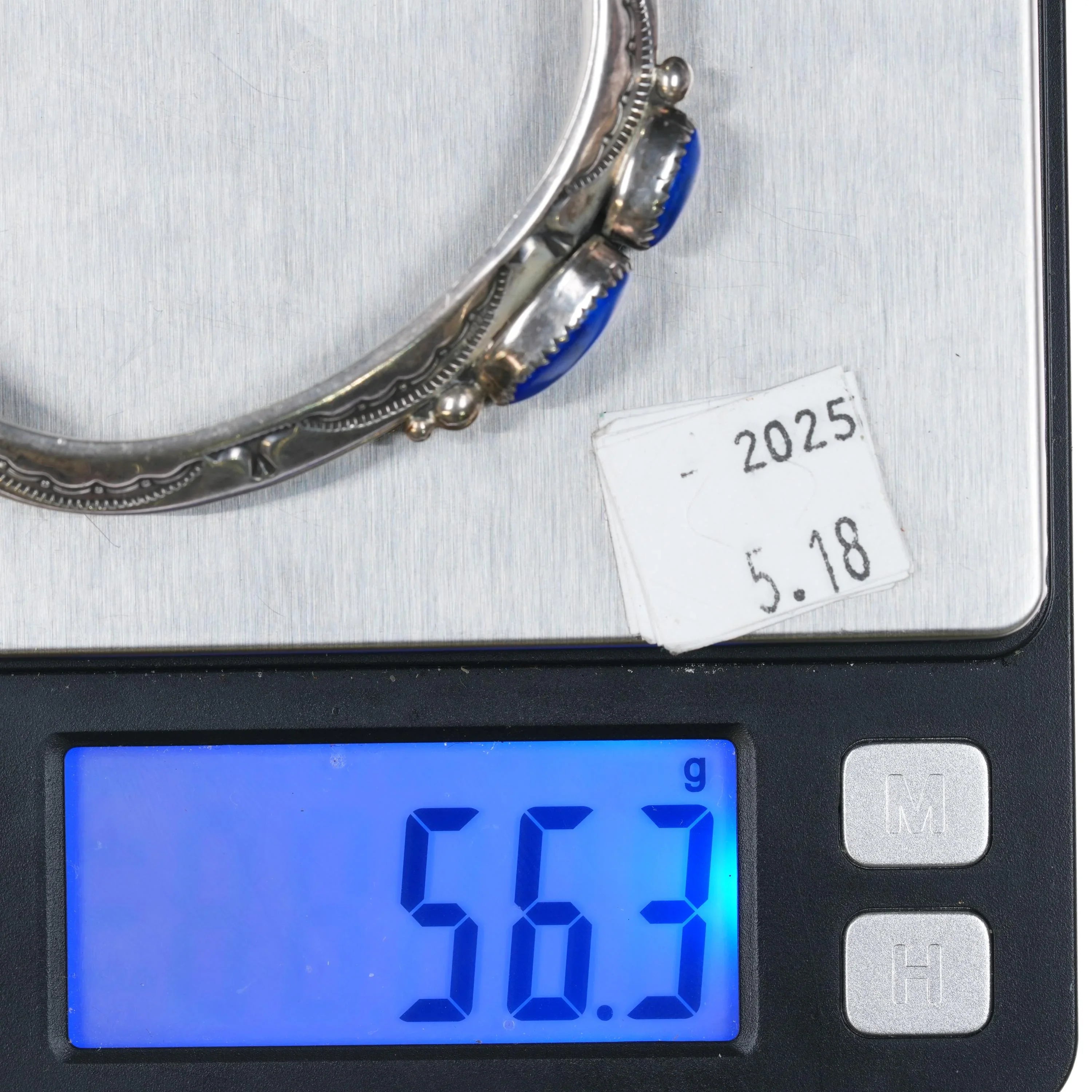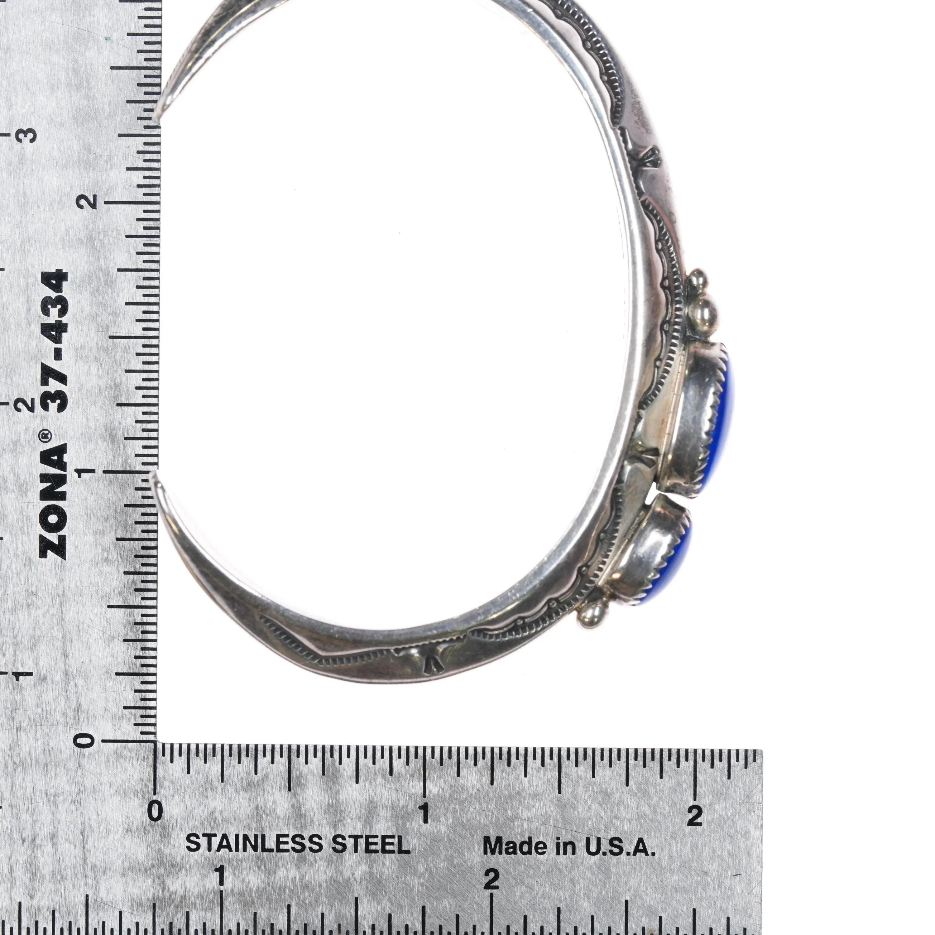 6.5" Jeanette Dale Navajo sterling silver lapis 2 stone carinated cuff bracelet Weight and measurements in pictures, Tested and guaranteed solid sterling silver with artists markings. Vintage, possibly unworn.