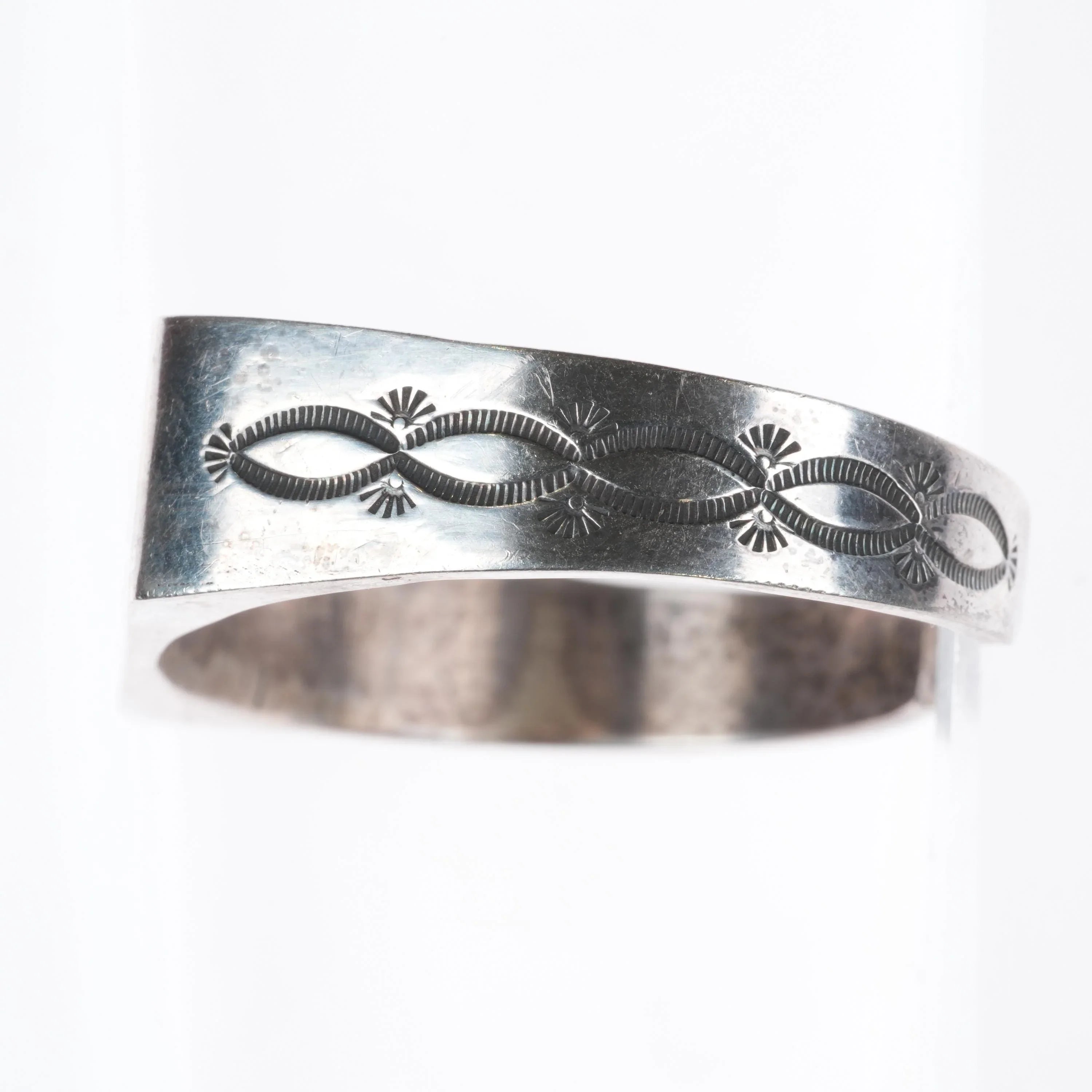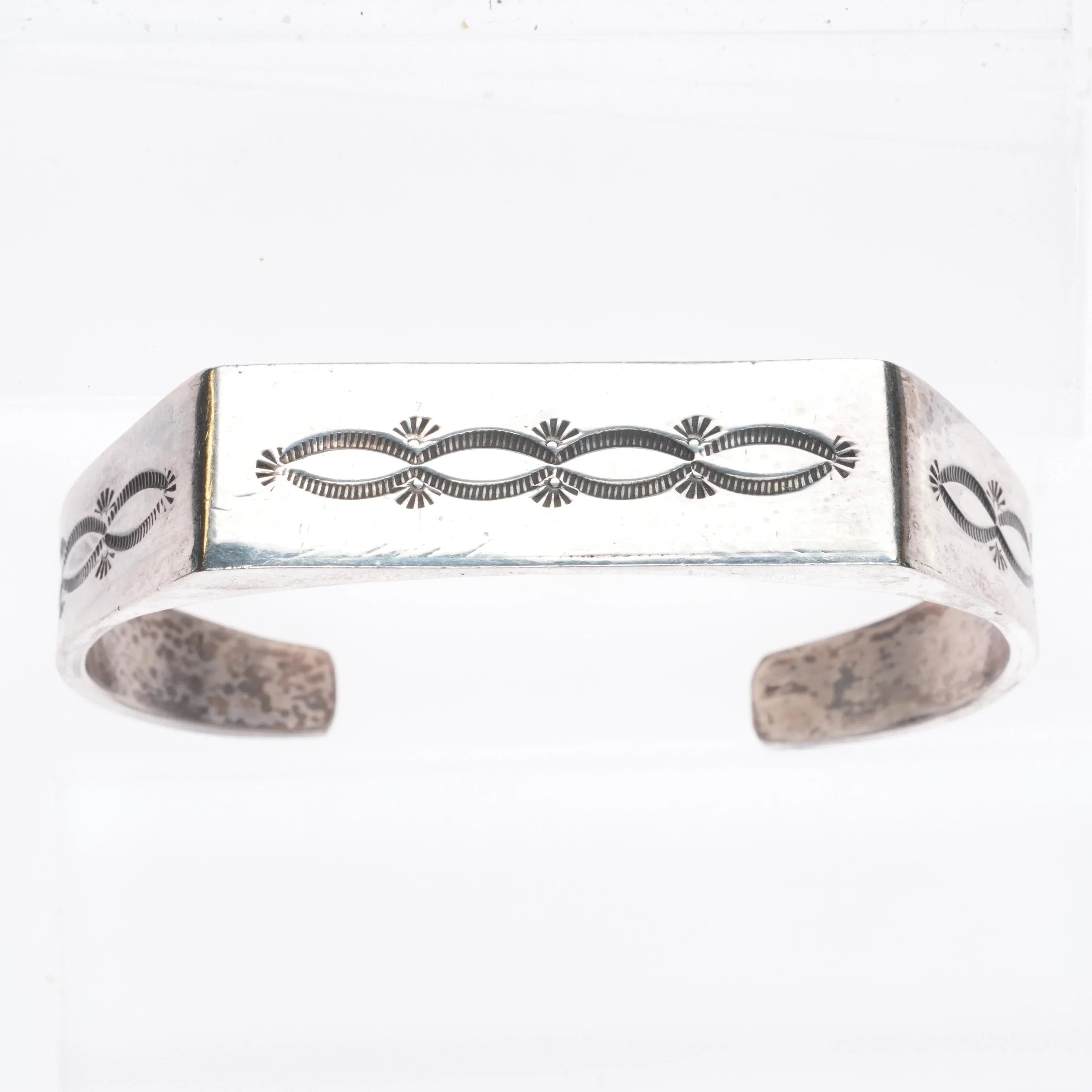 6.5" KM Navajo sterling silver hand stamped flat face cuff bracelet