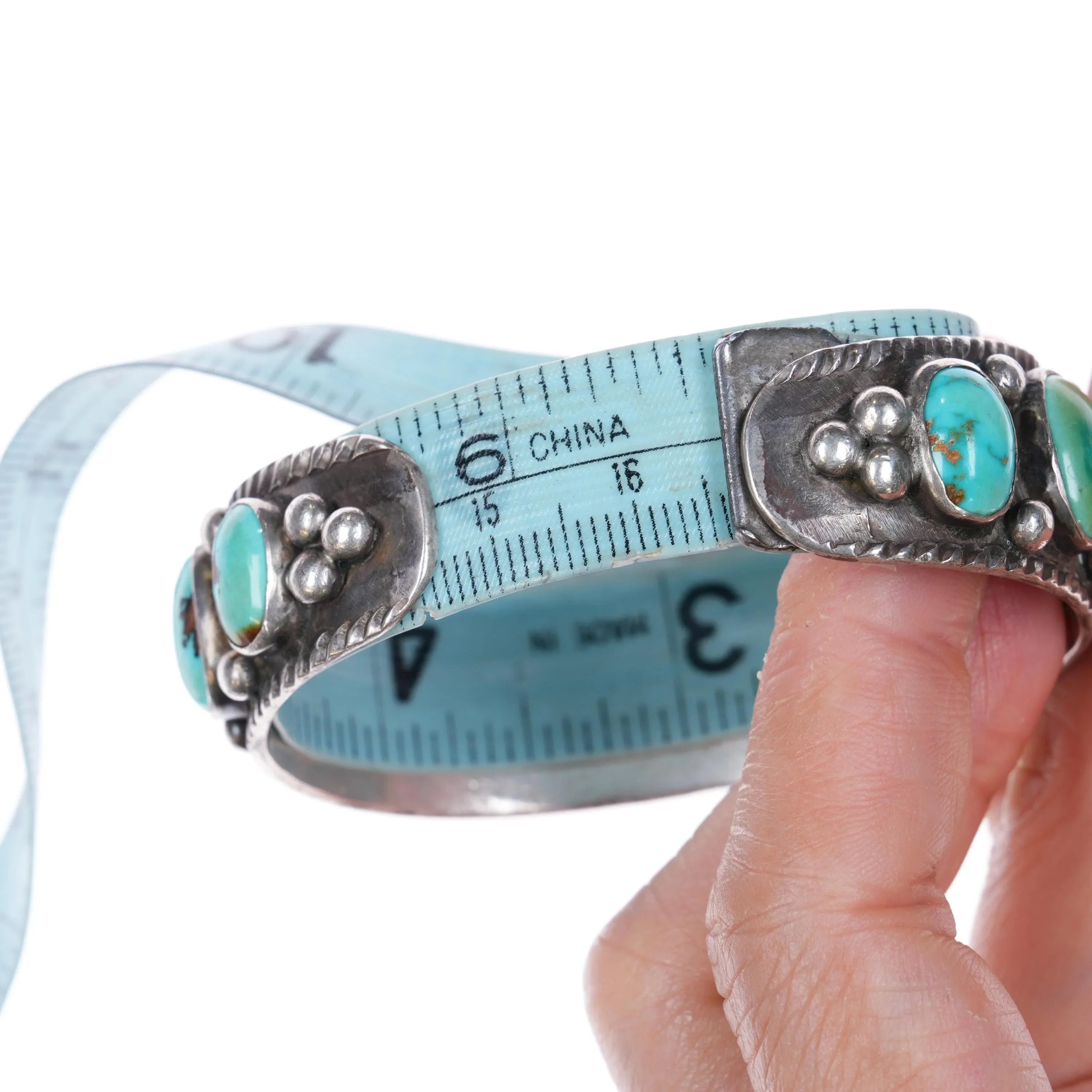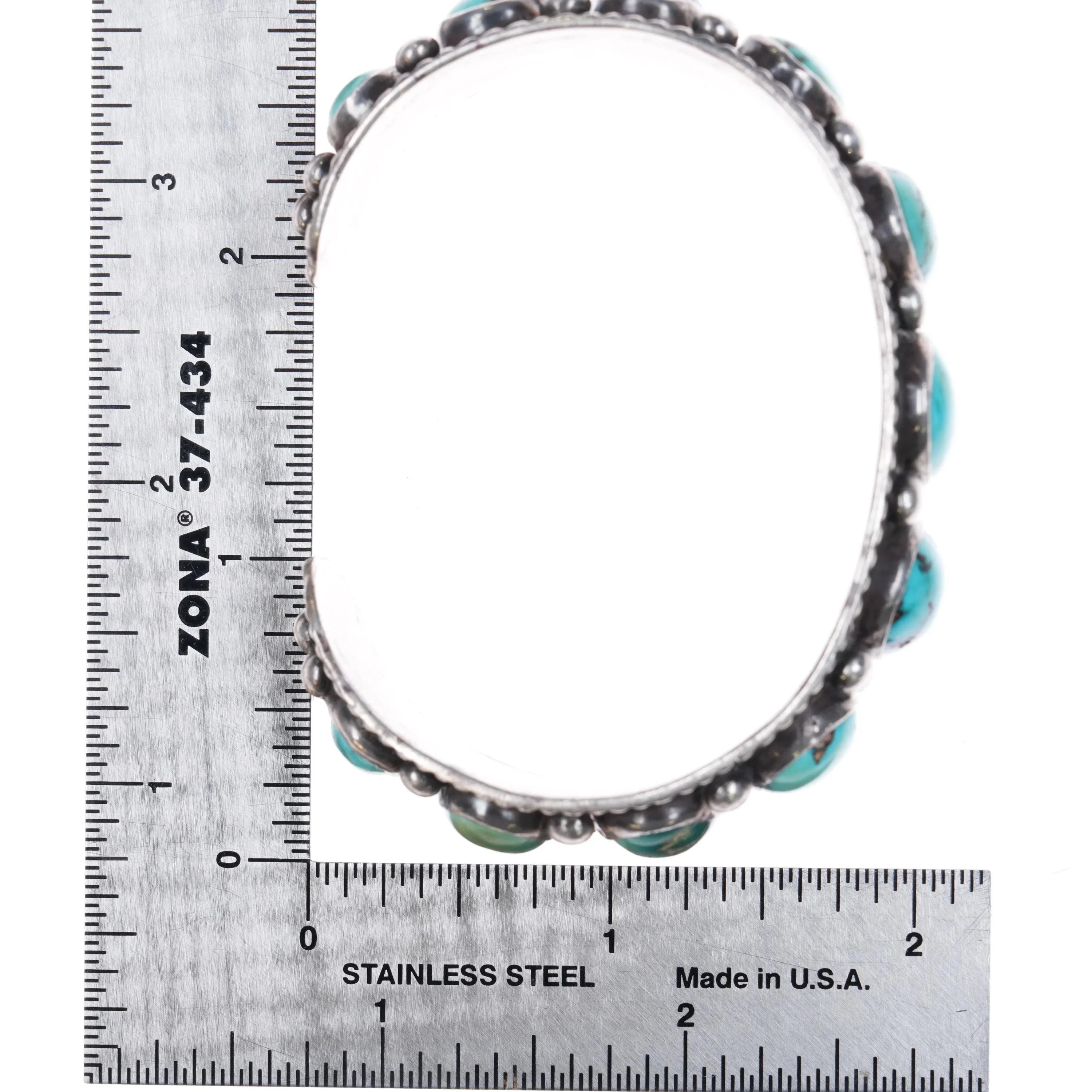 6.5" Large 30's-40's Navajo chiseled rim turquoise row cuff bracelet