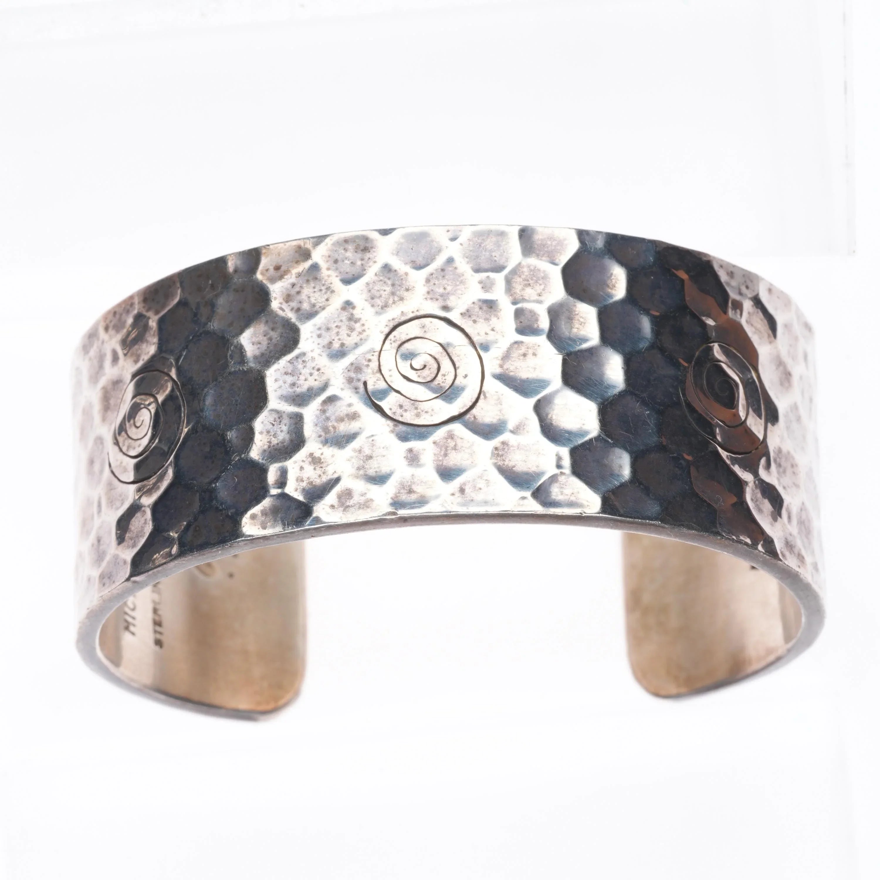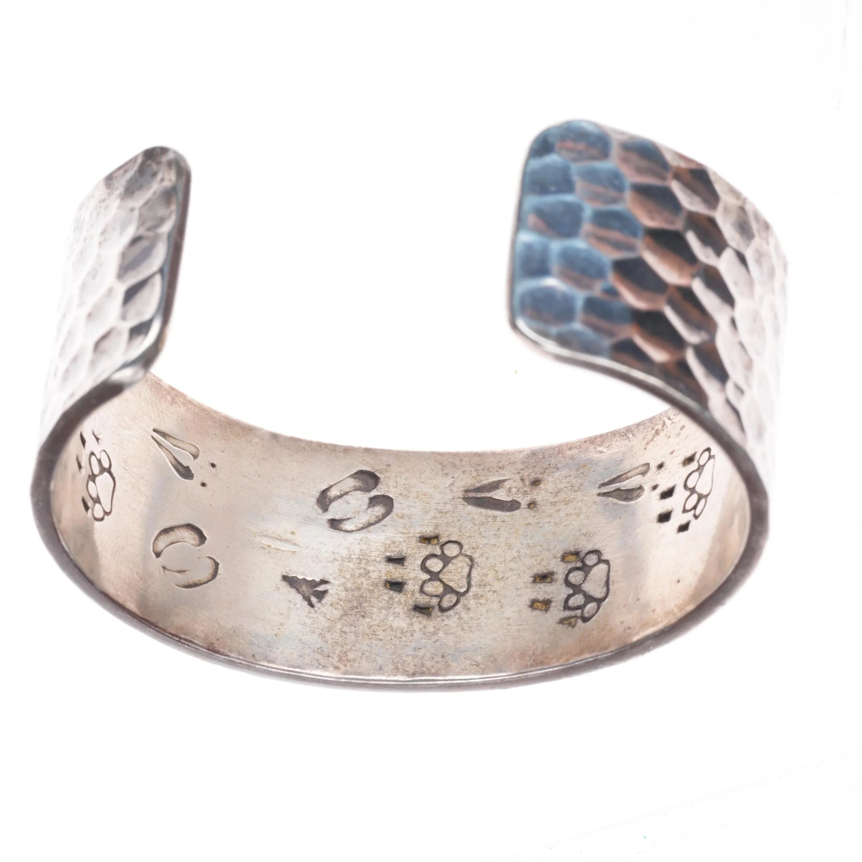 6.5" Michael L Slim Navajo hammered sterling silver heavy cuff bracelet . Tested and guaranteed solid sterling silver with weight and measurements in pictures. No damage or significant wear, circa last quarter of the 20th century.
