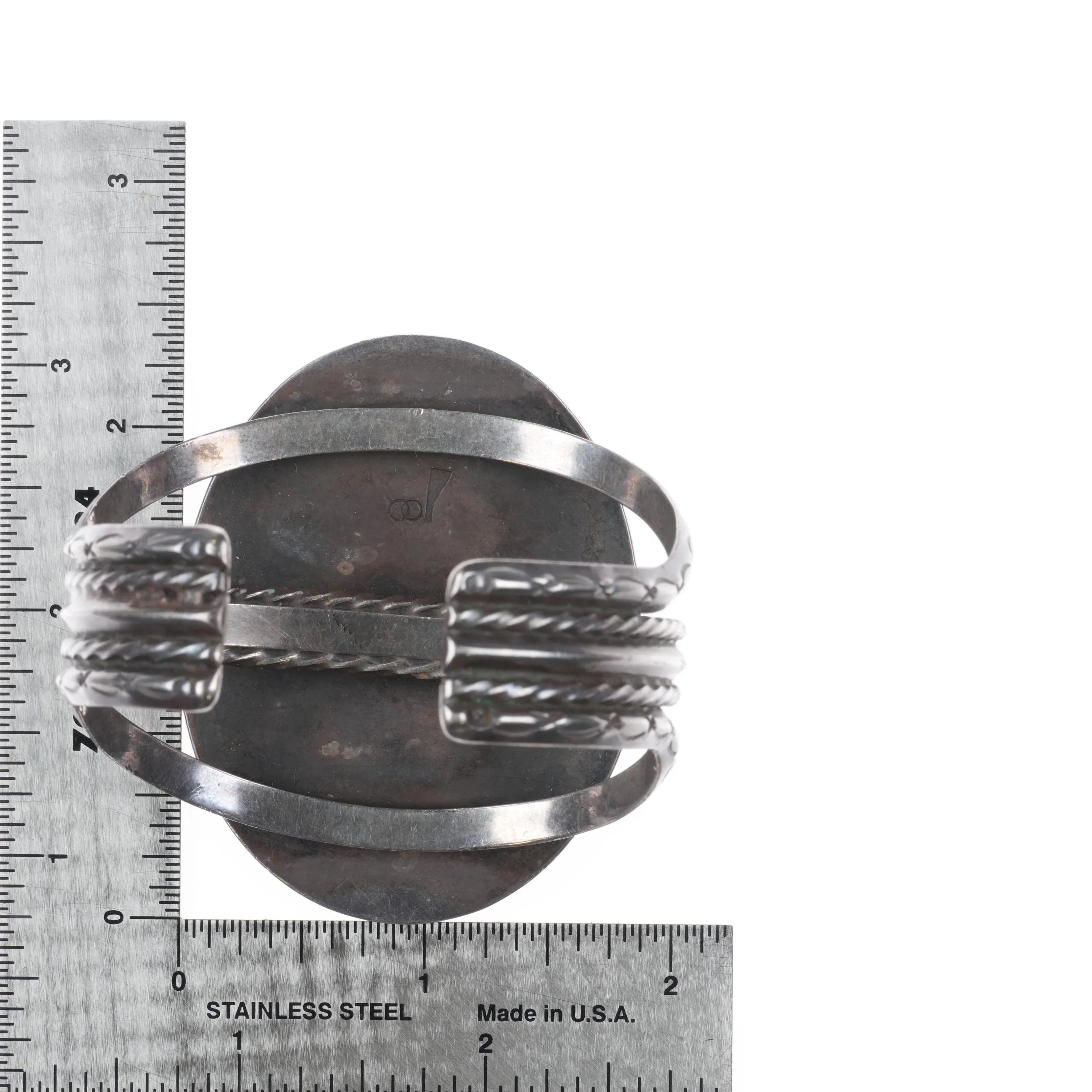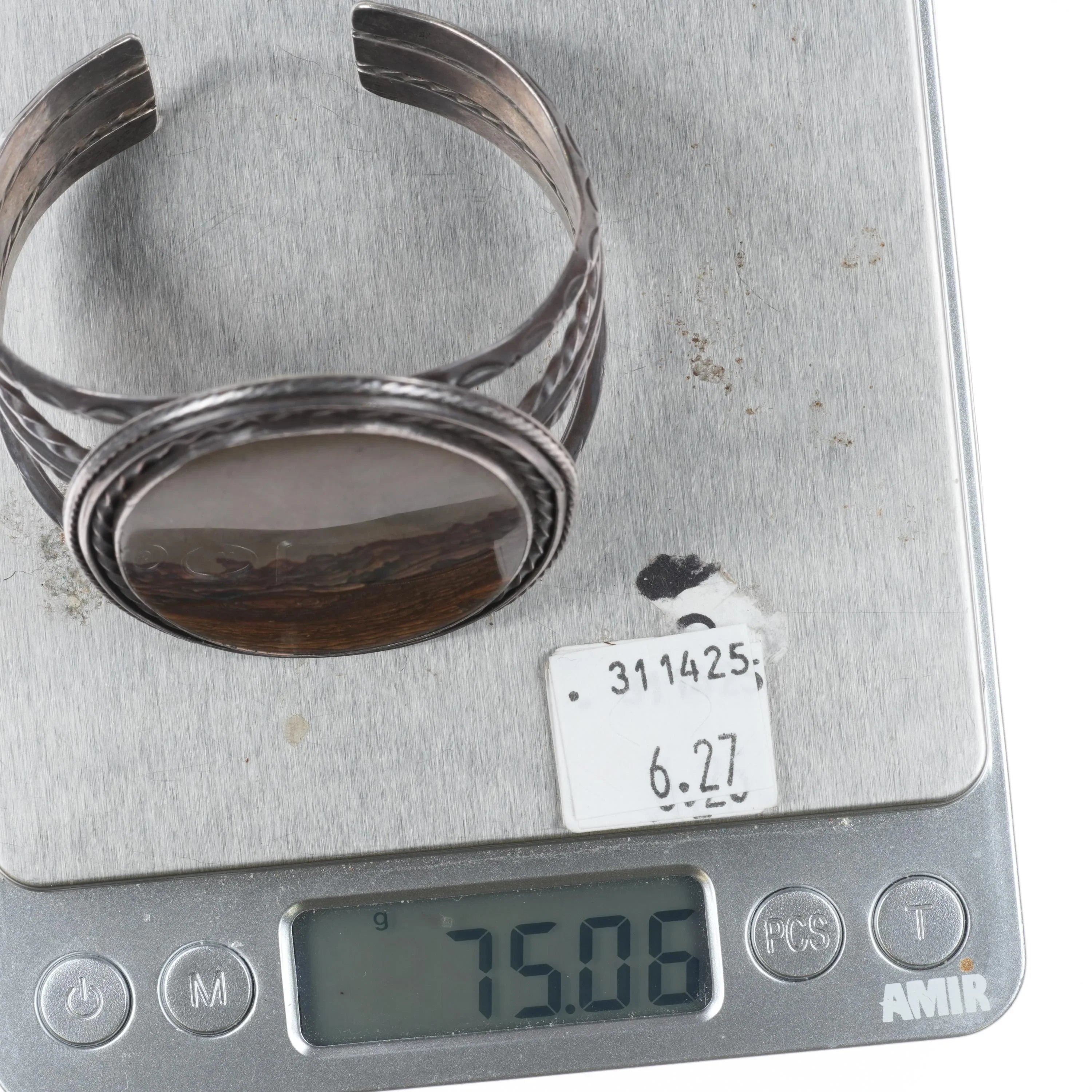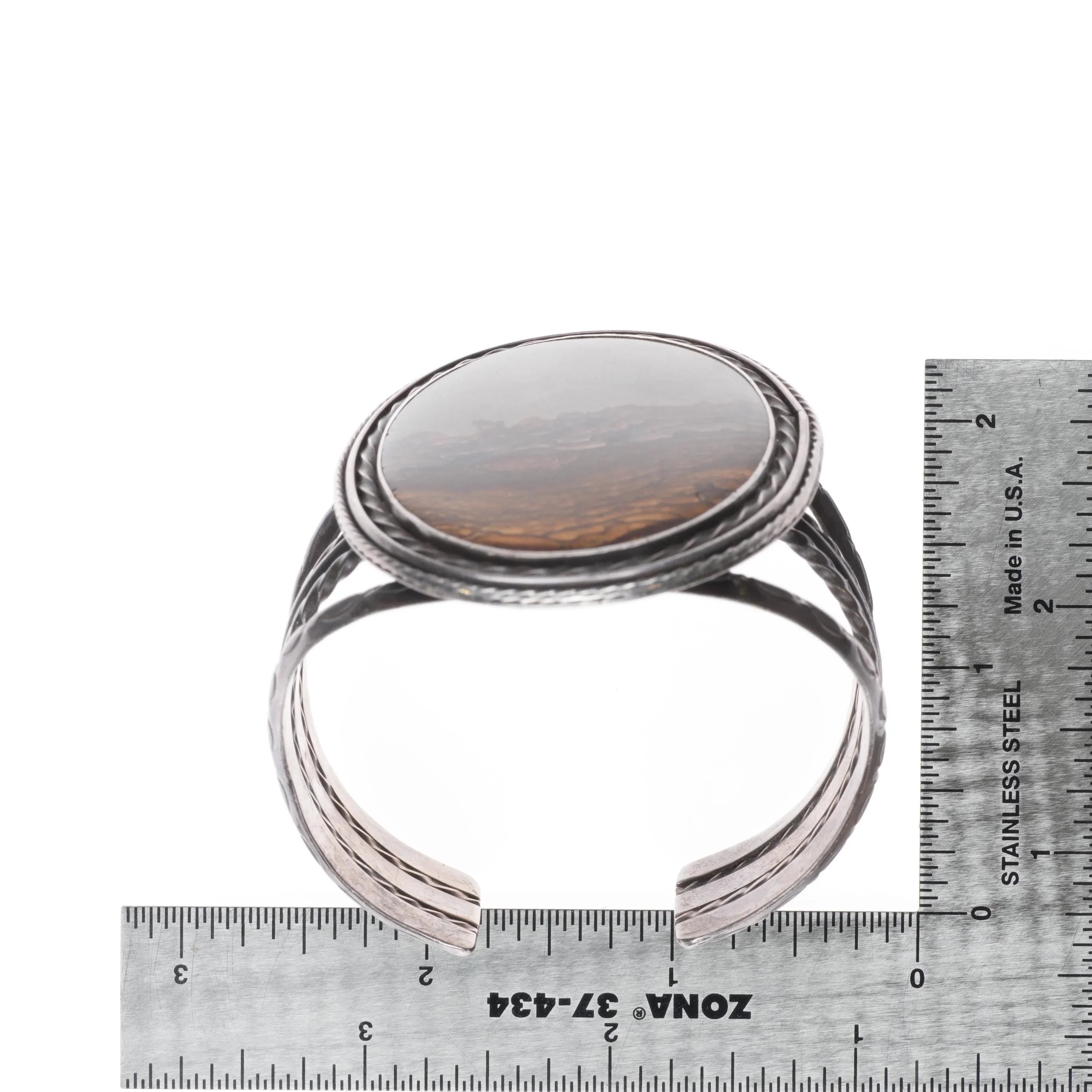 6.5" Vintage Navajo sterling silver twisted wire picture jasper cuff bracelet