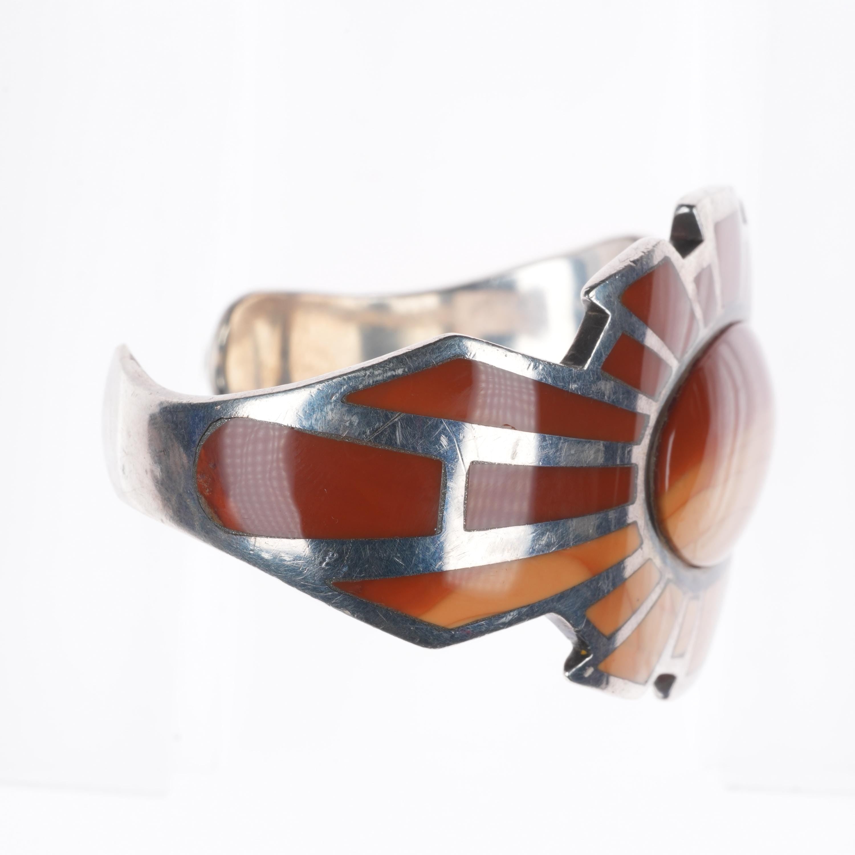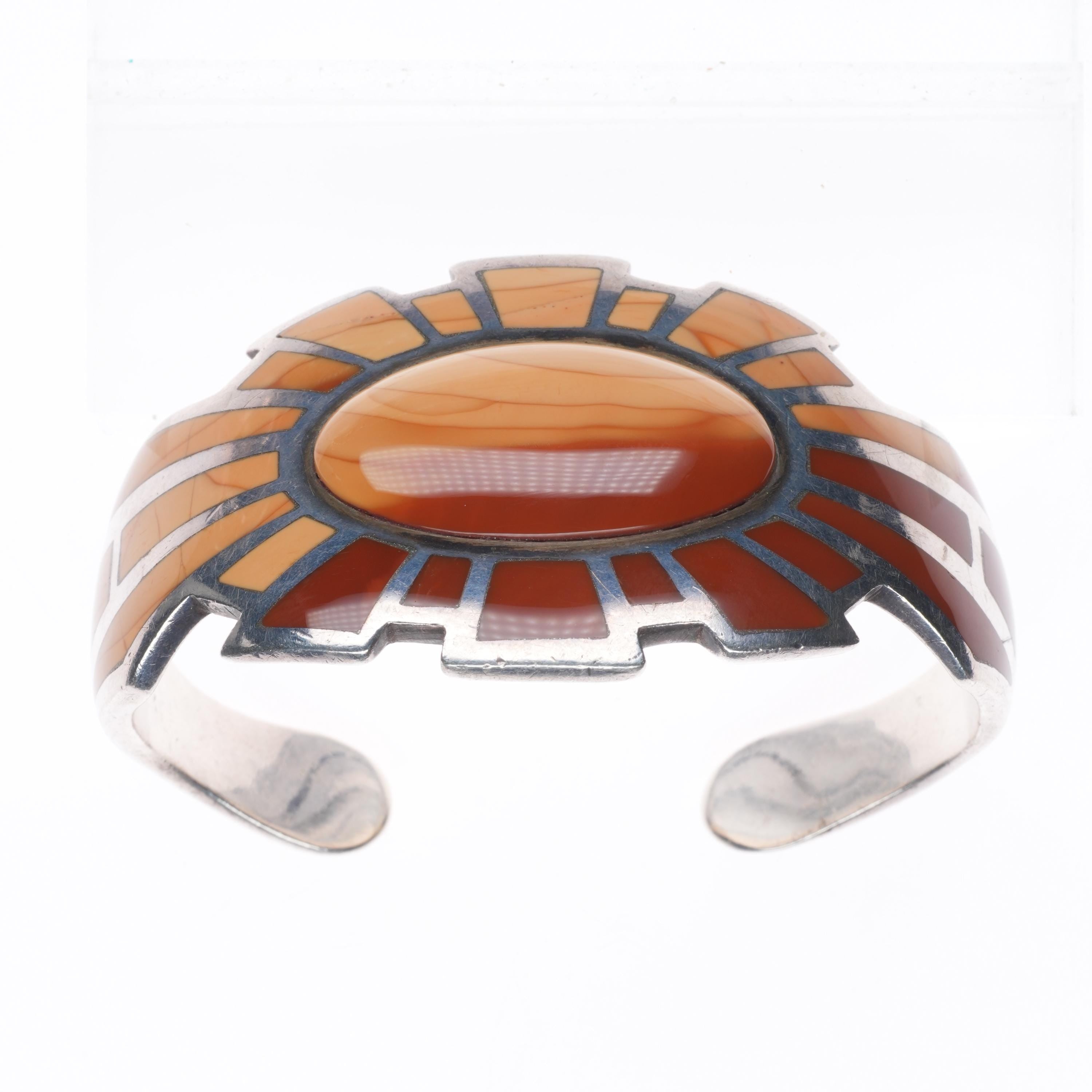 6.5" Vintage southwestern sterling silver picture jasper inlay cuff bracelet . Tested and guaranteed solid sterling silver with weight and measurements in pictures. Circa last quarter of the 20th century with age appropriate wear..