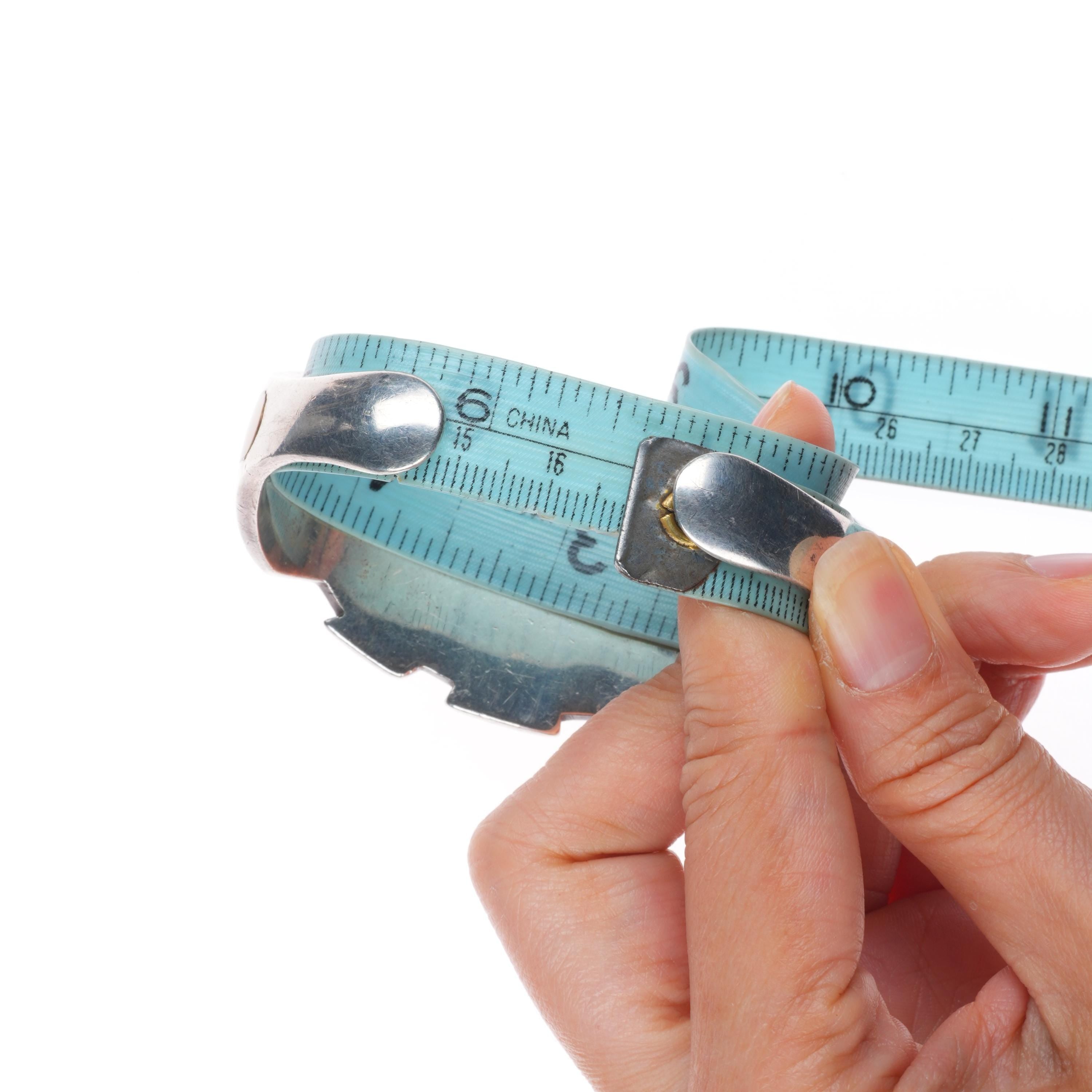 Bracelets are shown in the photos with a tape measure inside the bracelet, other photos will typically show the gap size. The size at the beginning of the title includes the gap. Hallmarked sterling hallmarks and no other markings.