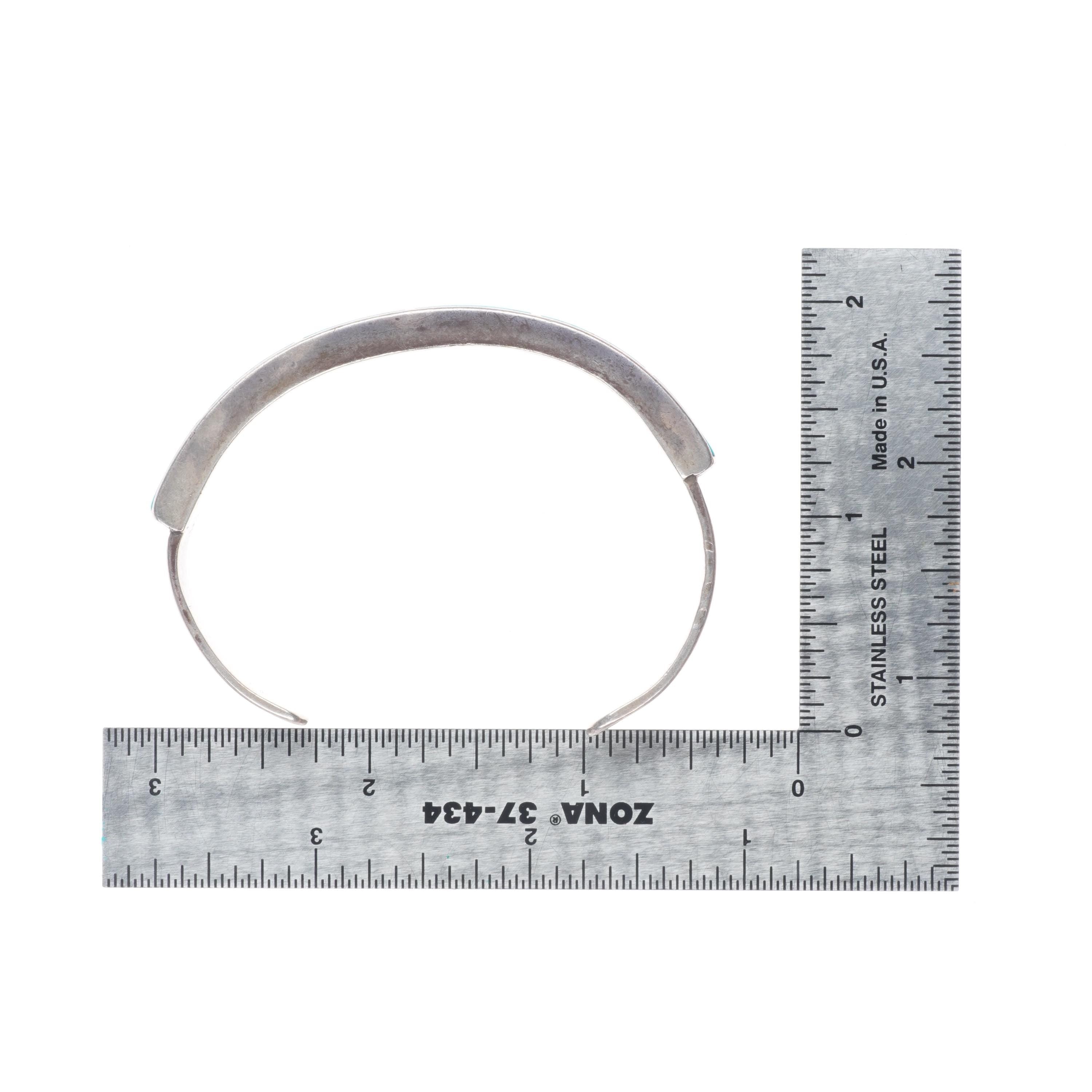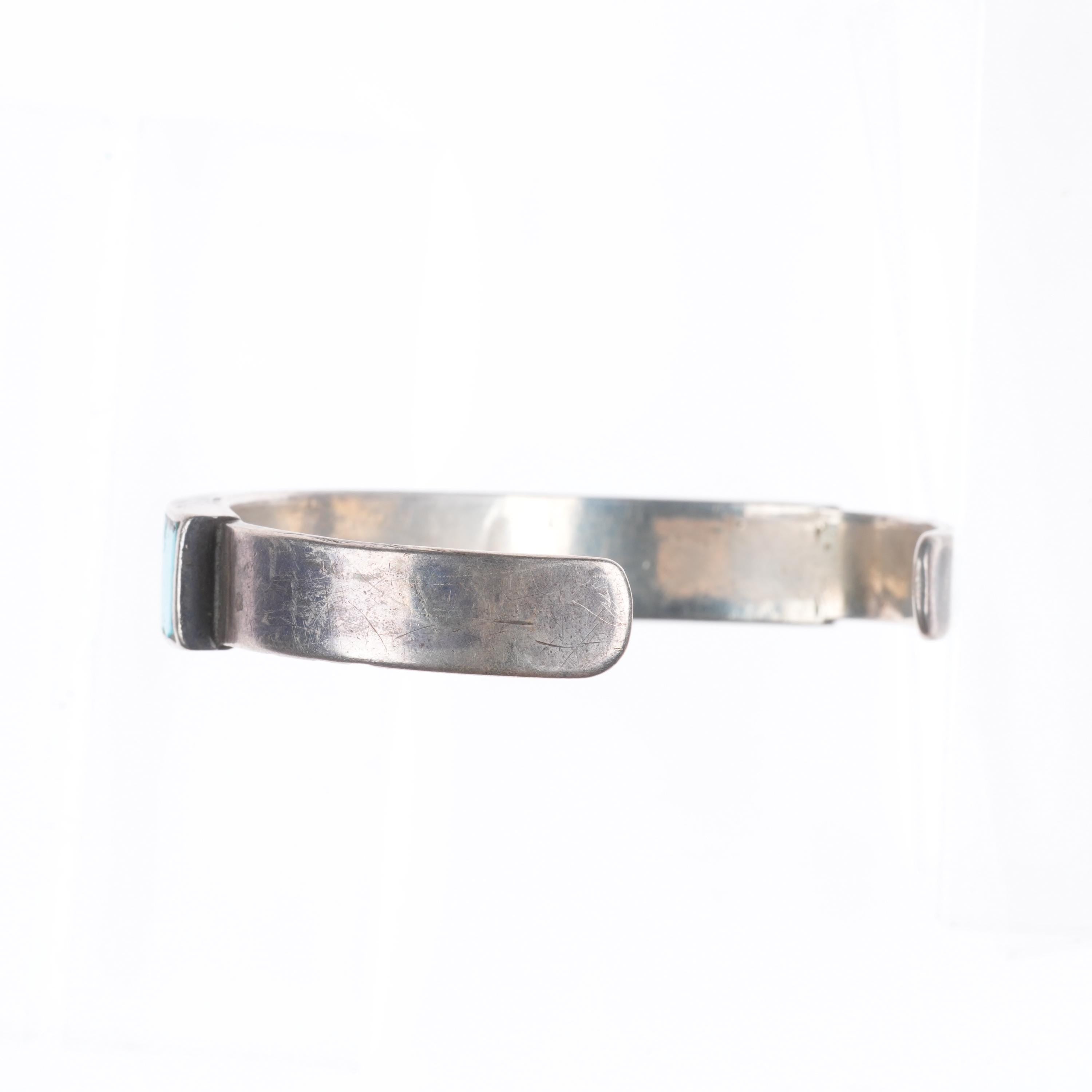 6.5" Vintage Zuni ingot/sterling silver turquoise channel inlay cuff bracelet. Tested and guaranteed solid sterling silver with weight and measurements in pictures. Circa second quarter of the 20th century with age appropriate wear.. All stones secure with some old fractures.