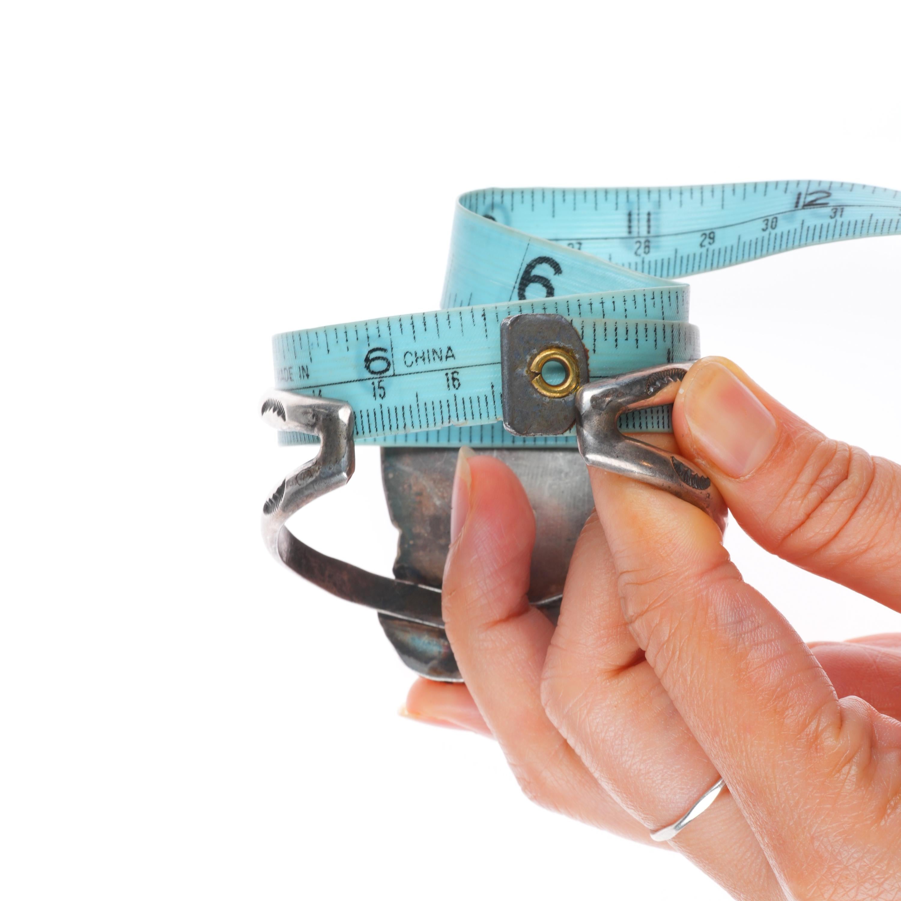 Bracelets are shown in the photos with a tape measure inside the bracelet, other photos will typically show the gap size. The size at the beginning of the title includes the gap. Almost all bracelets that don‘t have inlay work should be adjustable by at least .25", please refer to pictures for the gap size to see if it would work if slightly adjusted as the gap would change.