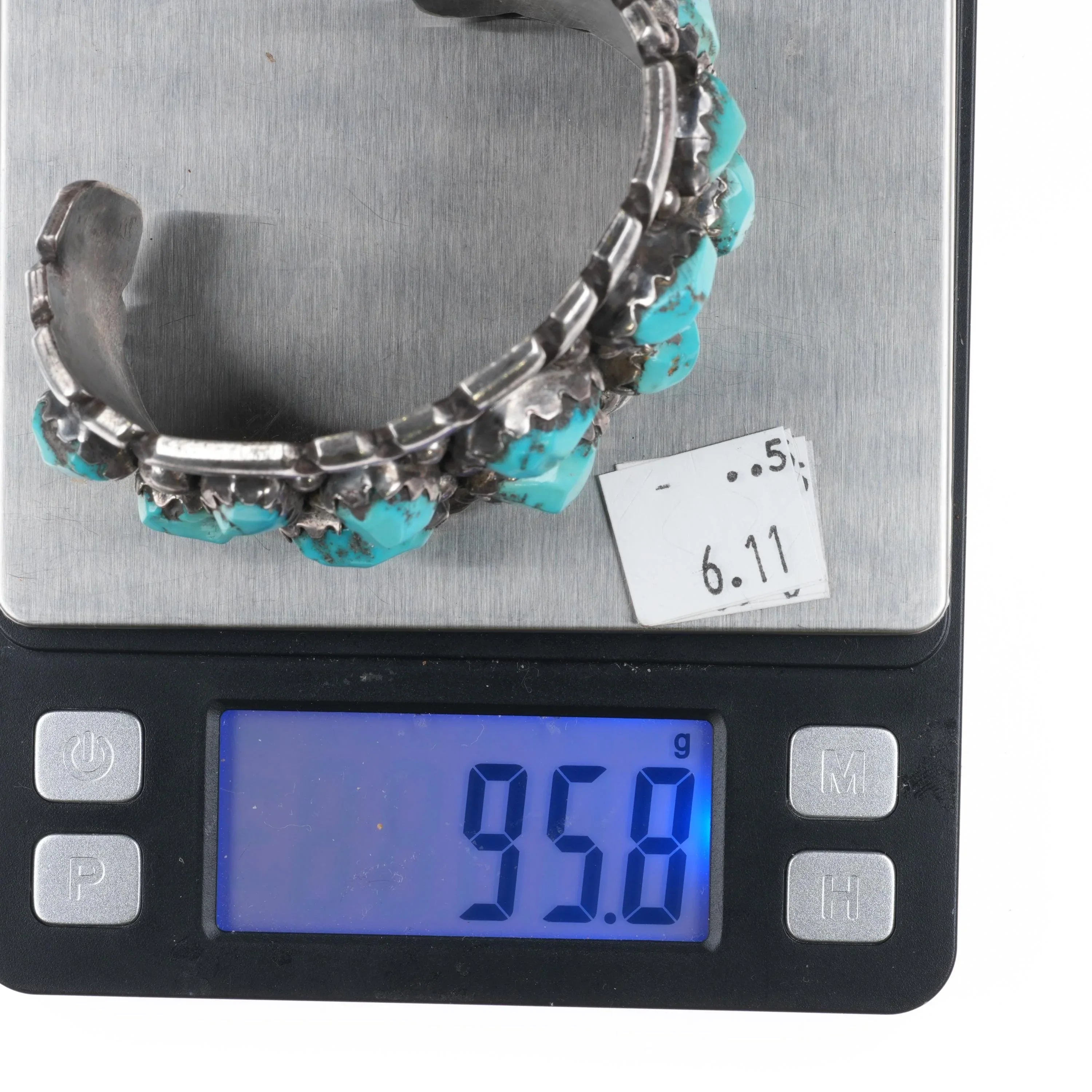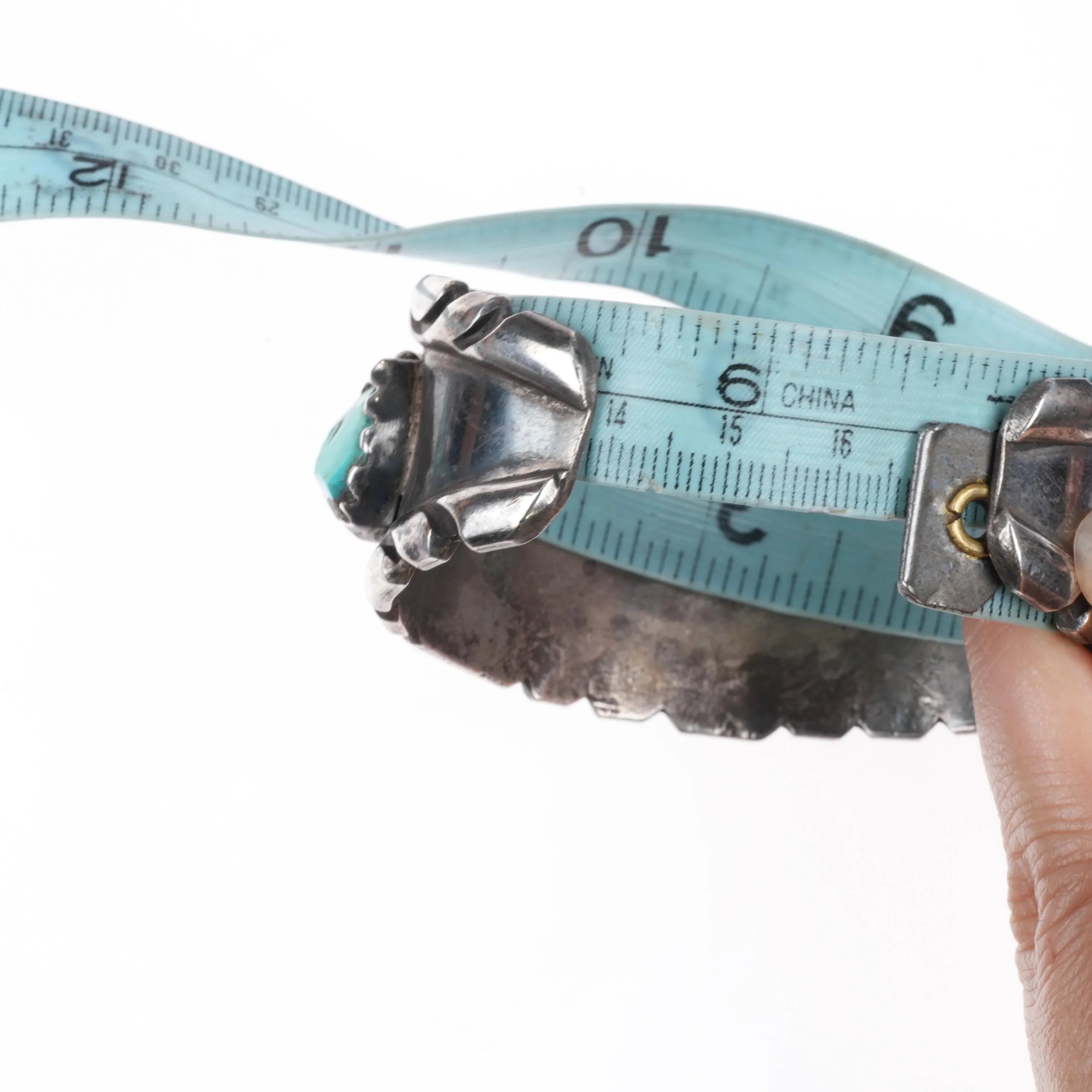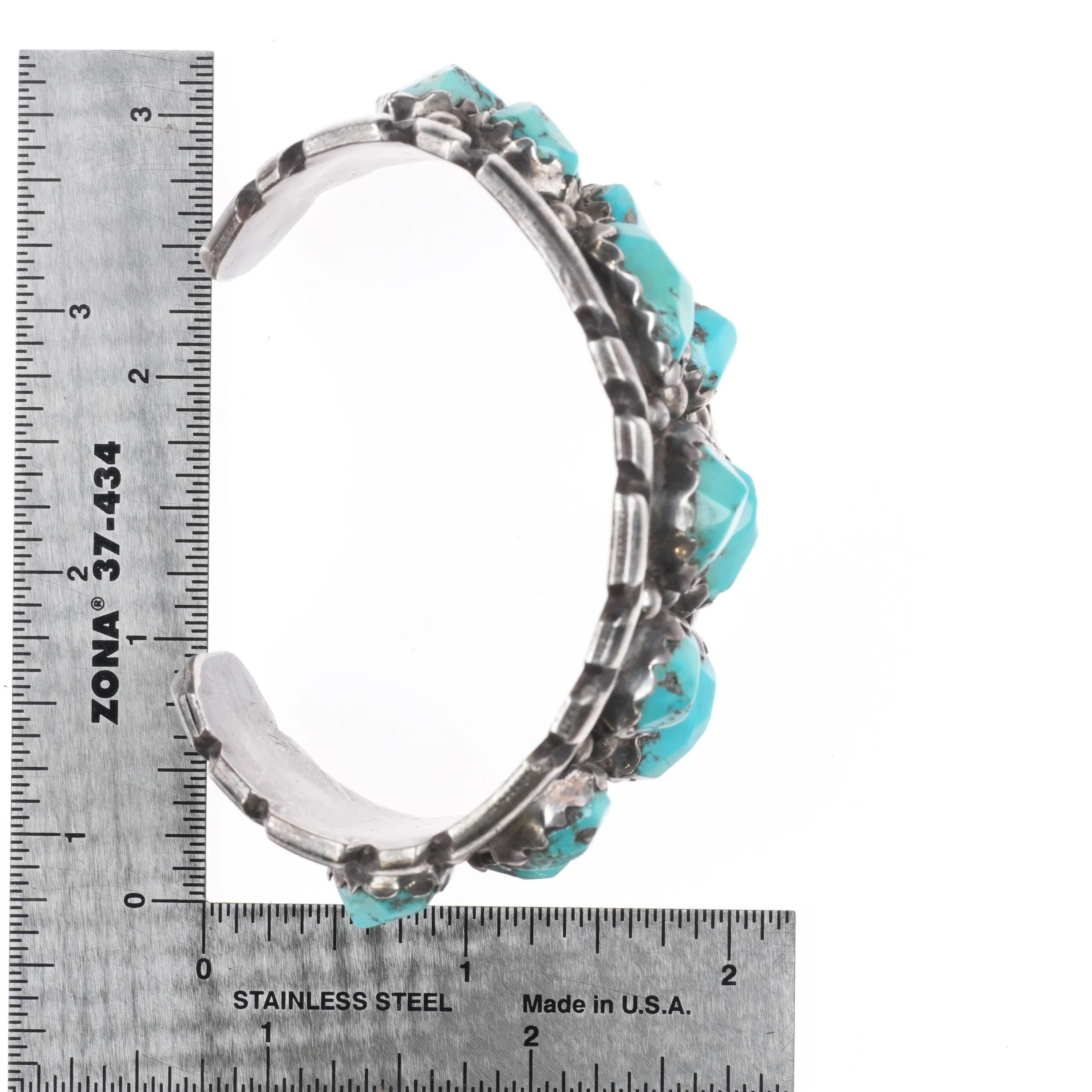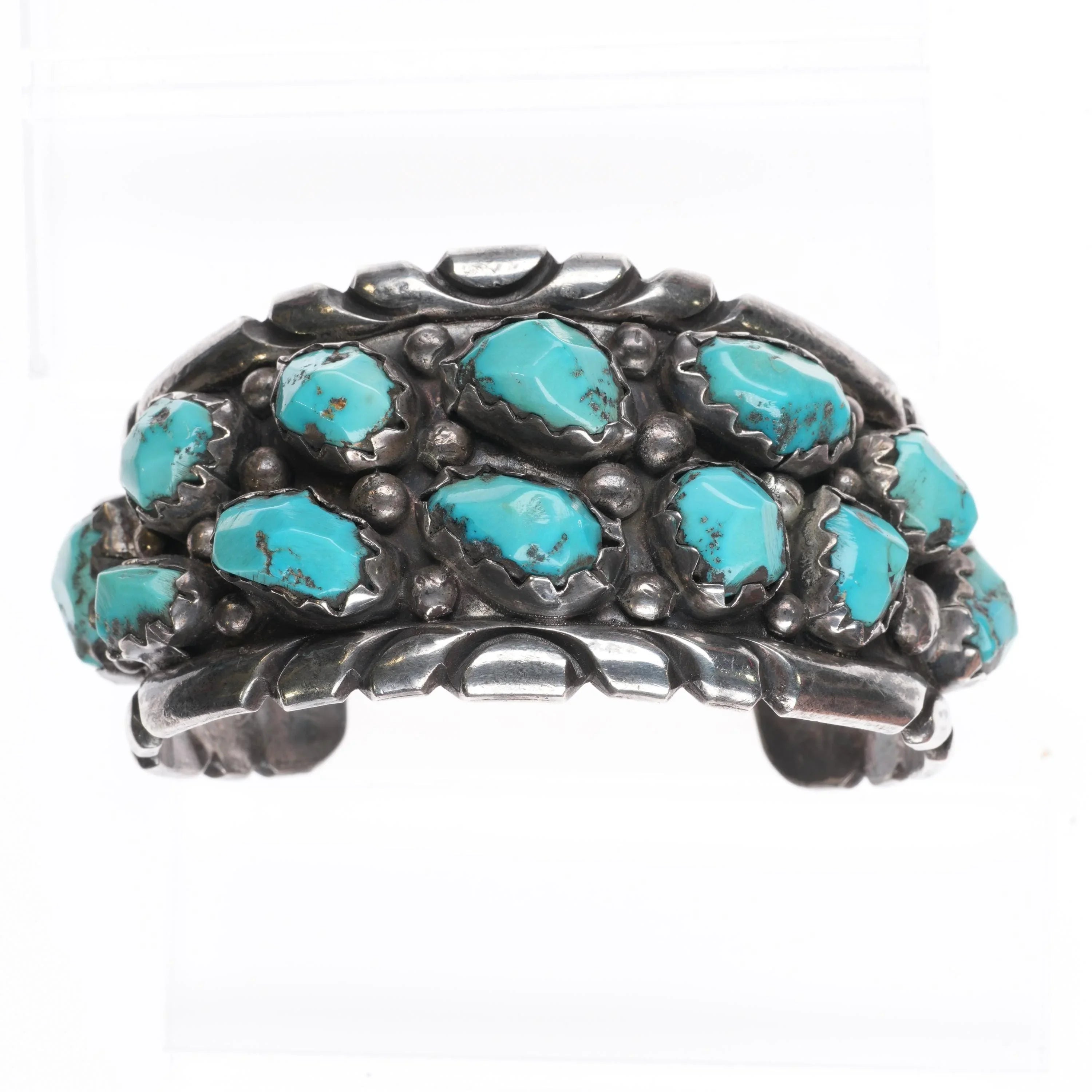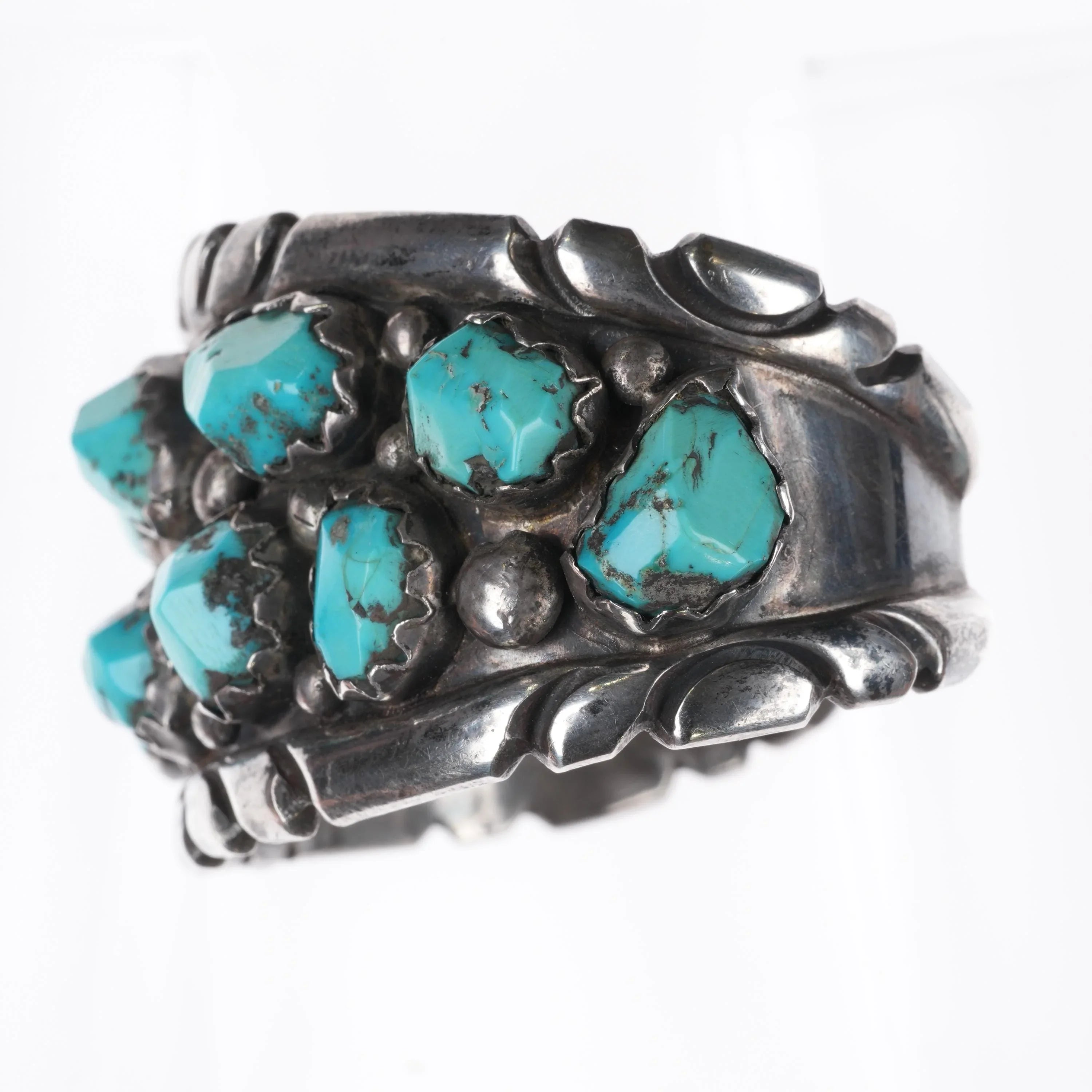 6.5" Wayne Cheama Zuni sterling carved turquoise cluster cuff bracelet
