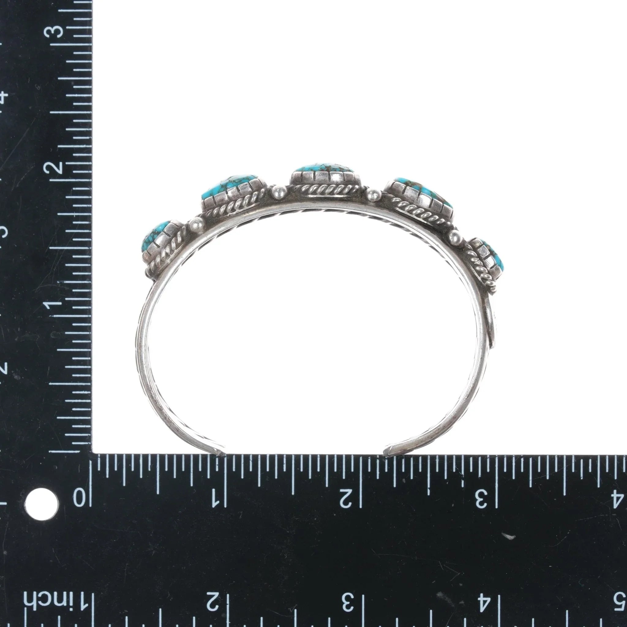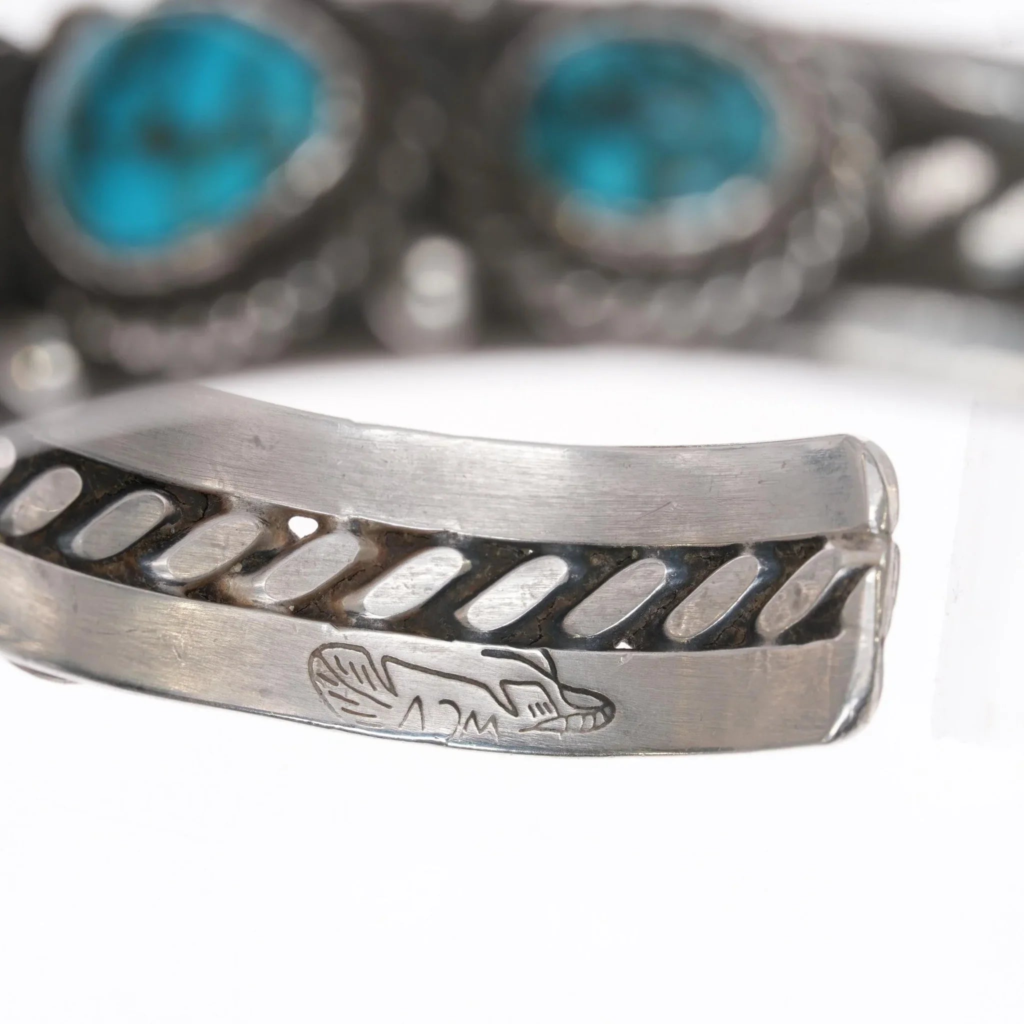 6.5" Wil Vandever Navajo sterling spiderweb turquoise row cuff bracelet