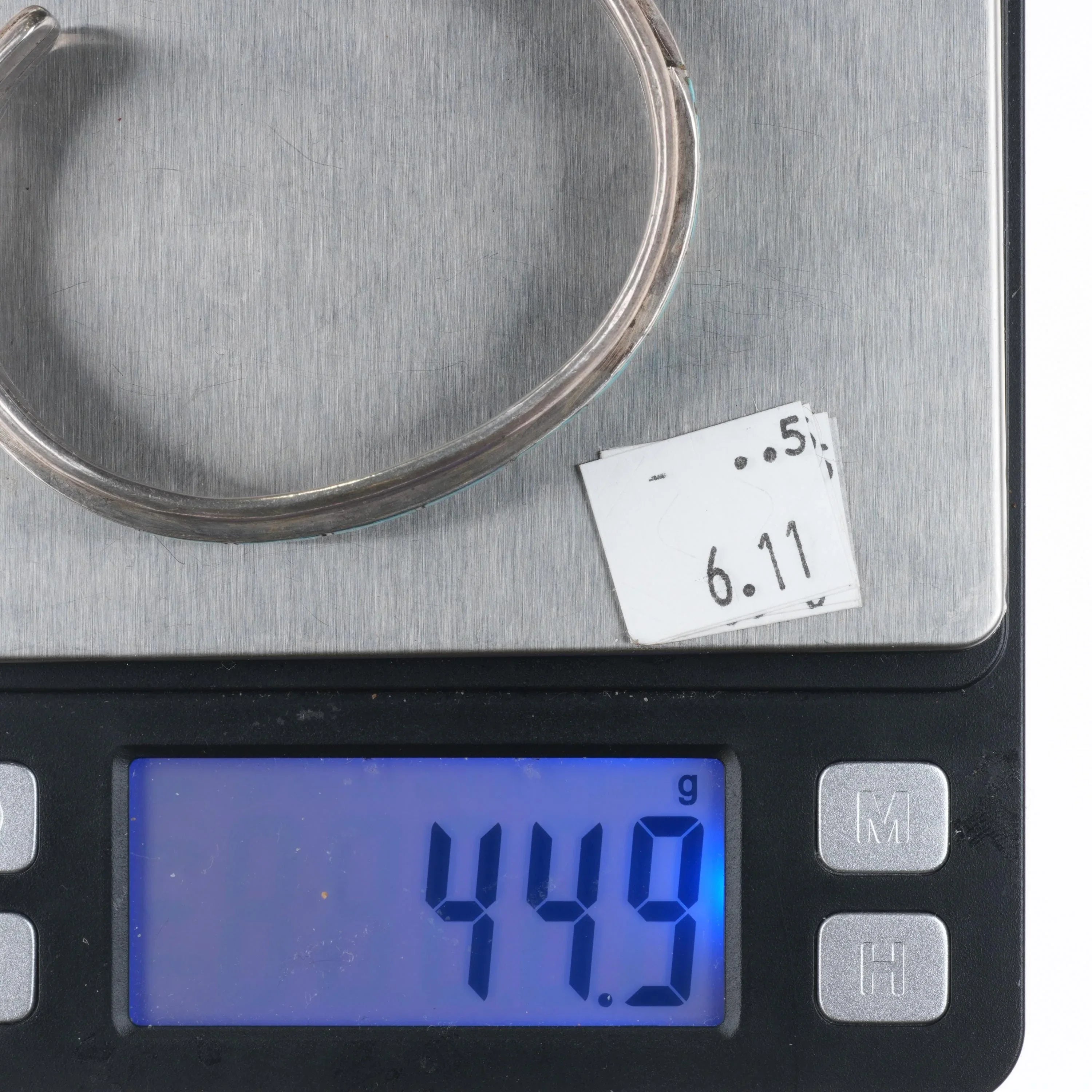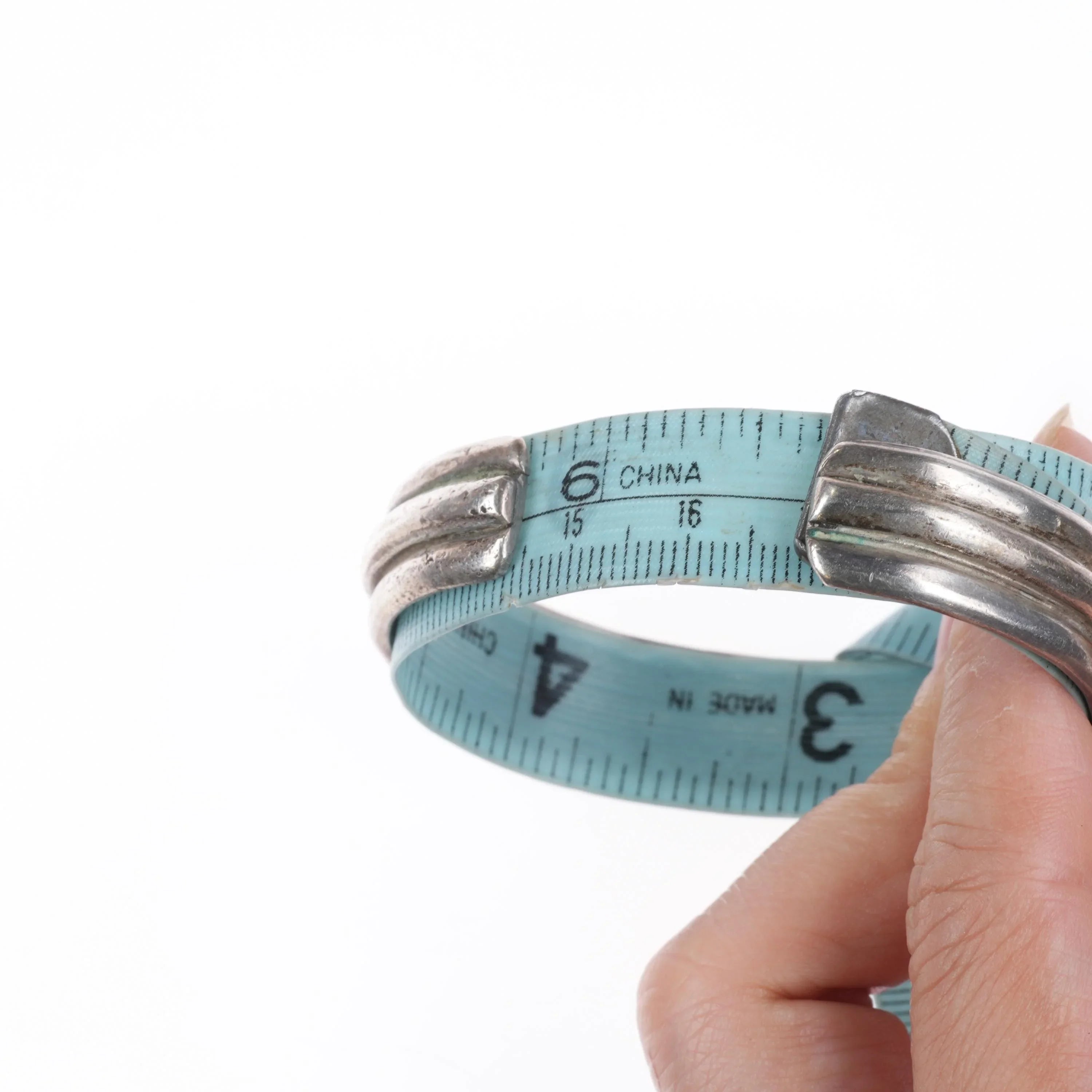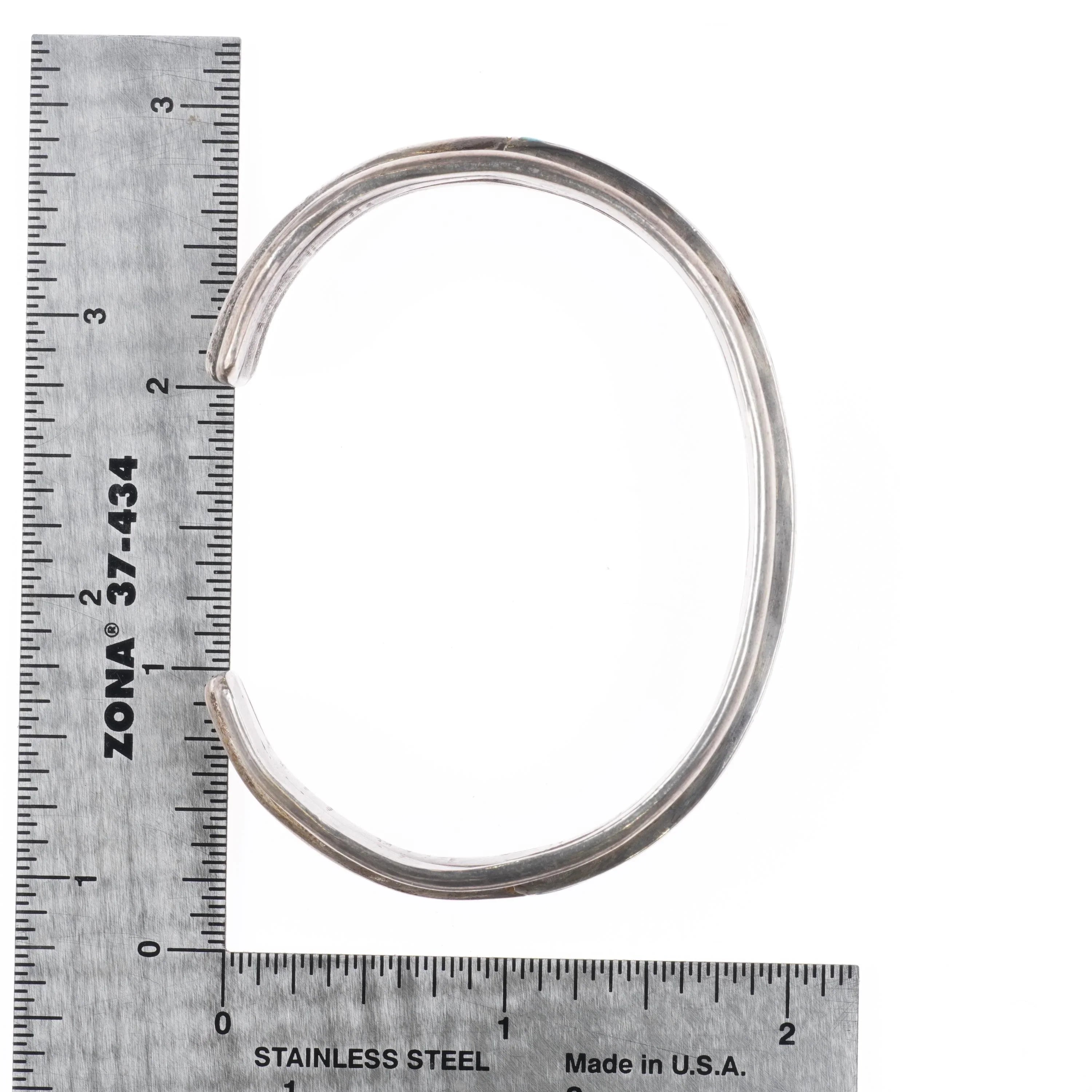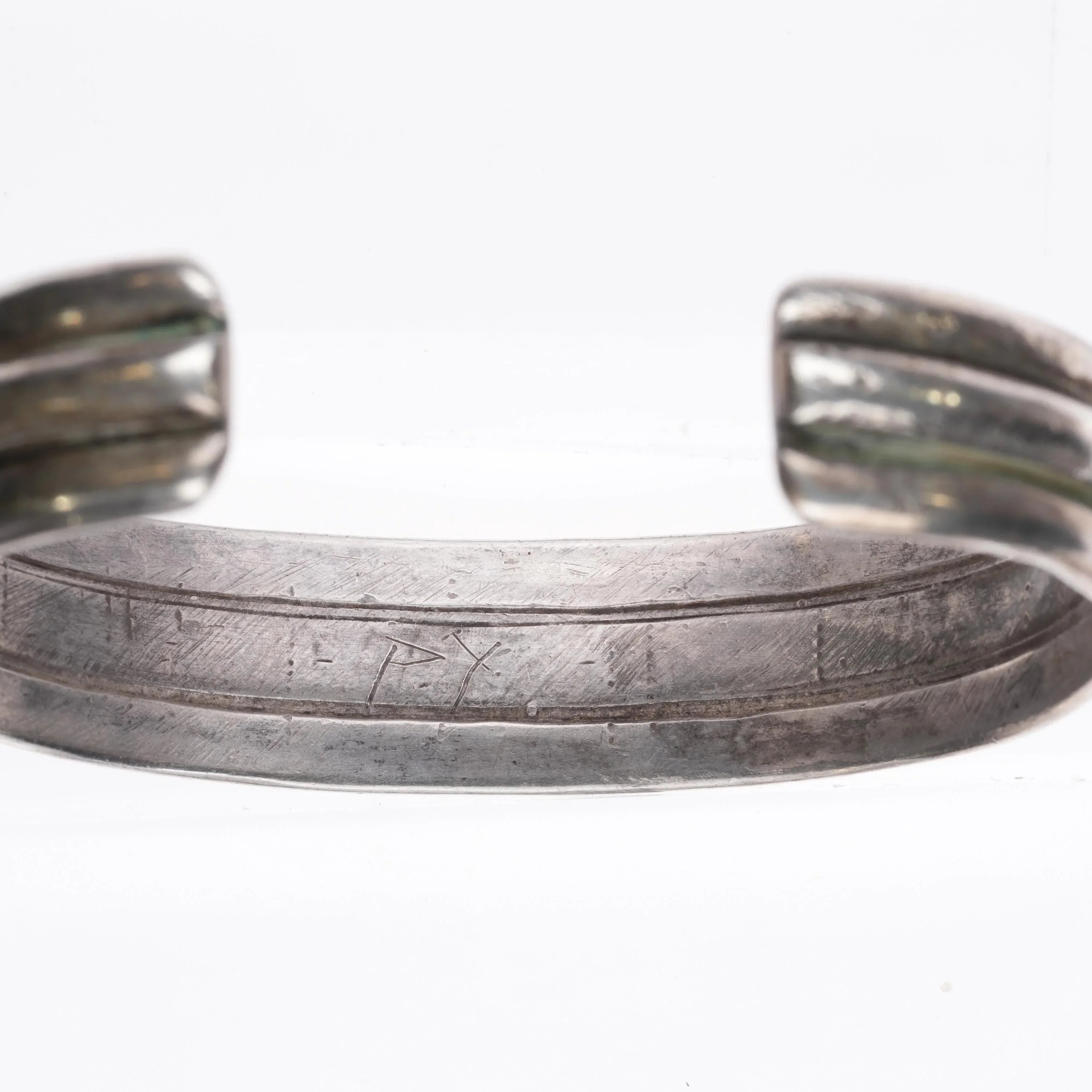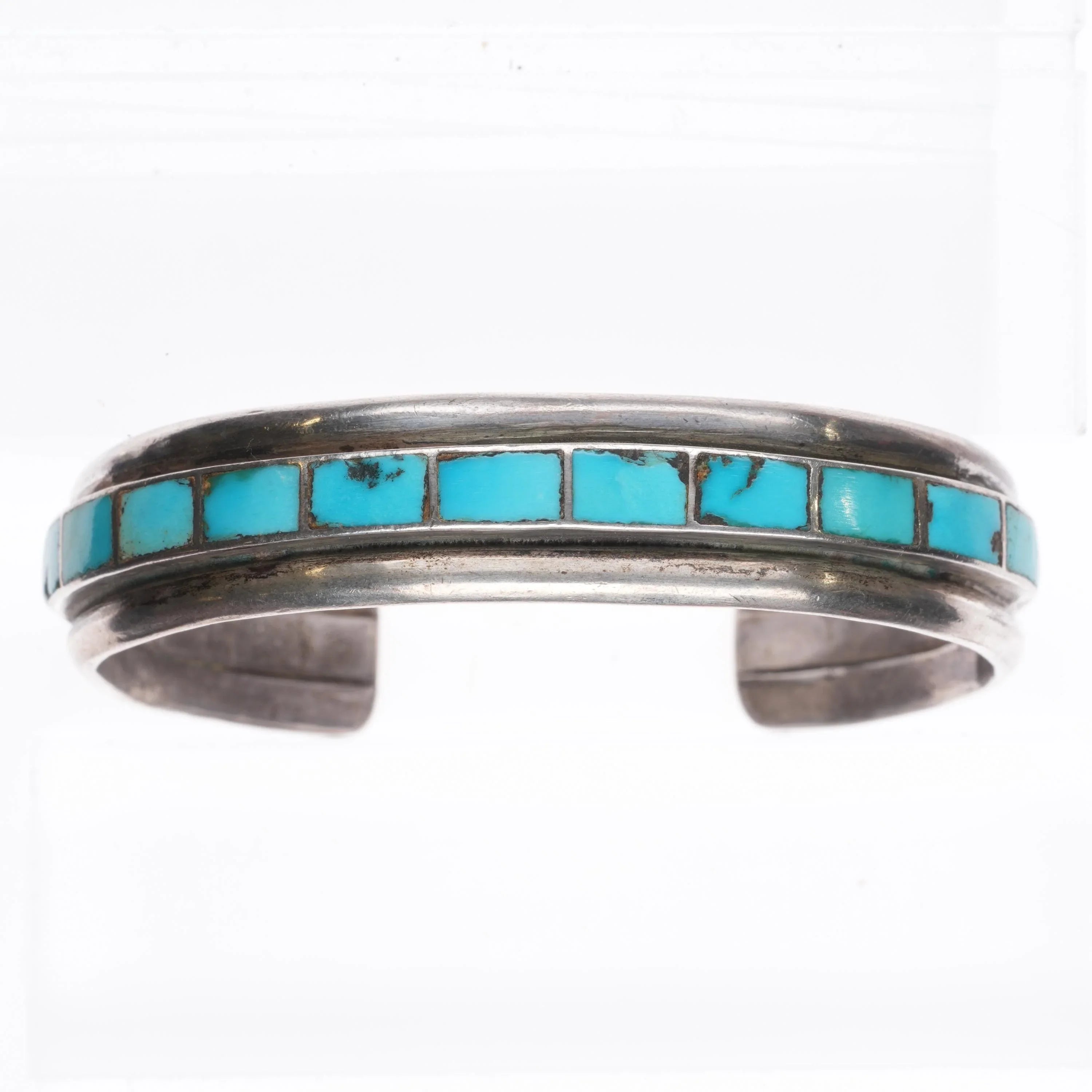6.6" 1940‘s-50‘s Zuni channel inlay row cuff bracelet 3 band sterling silver. Tested and guaranteed solid sterling silver with no markings as shown. Weight and measurements in pictures. Some expected wear, no cracks or breaks. Circa mid 20th century in very good condition.