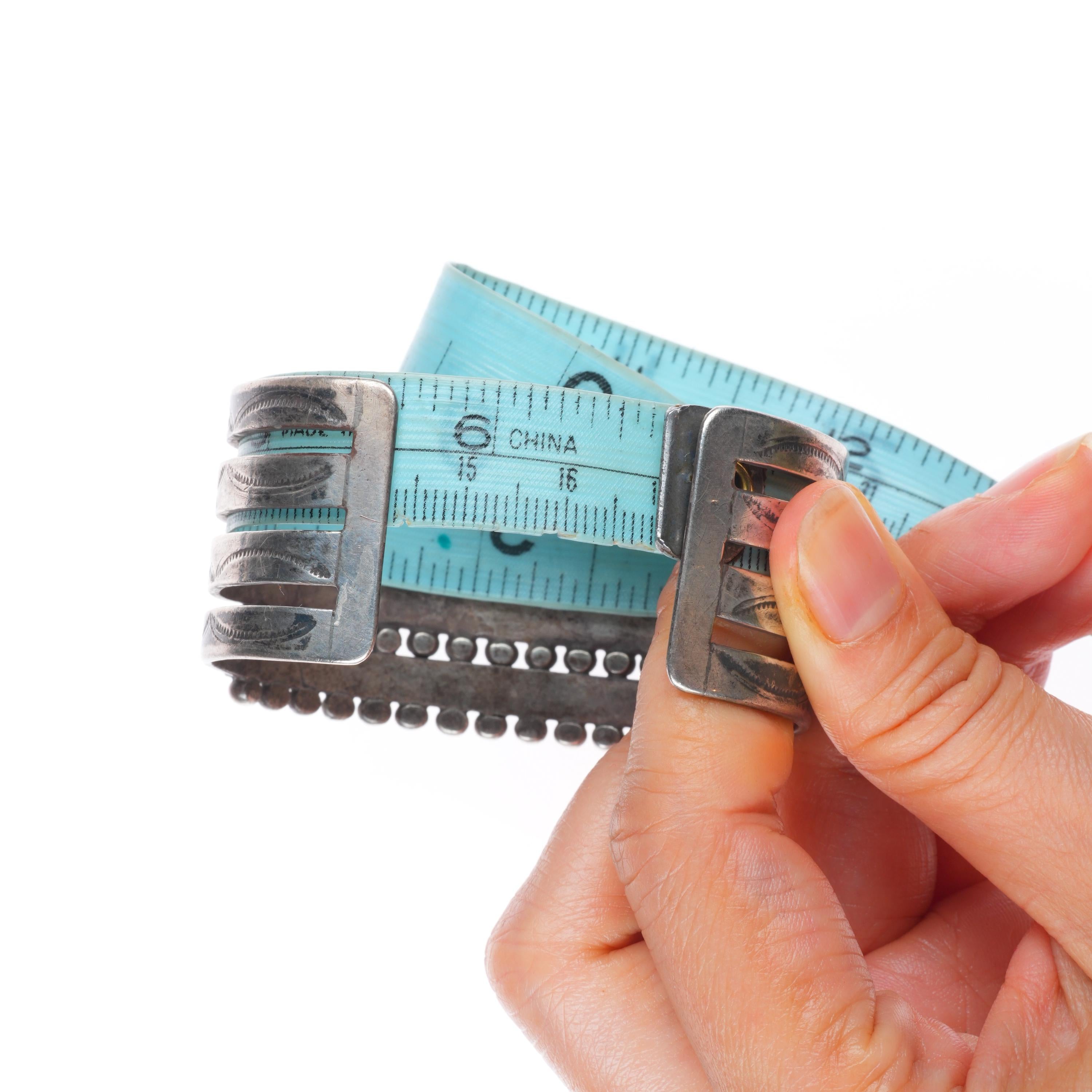 Bracelets are shown in the photos with a tape measure inside the bracelet, other photos will typically show the gap size. The size at the beginning of the title includes the gap. Almost all bracelets that don‘t have inlay work should be adjustable by at least .25", please refer to pictures for the gap size to see if it would work if slightly adjusted as the gap would change.