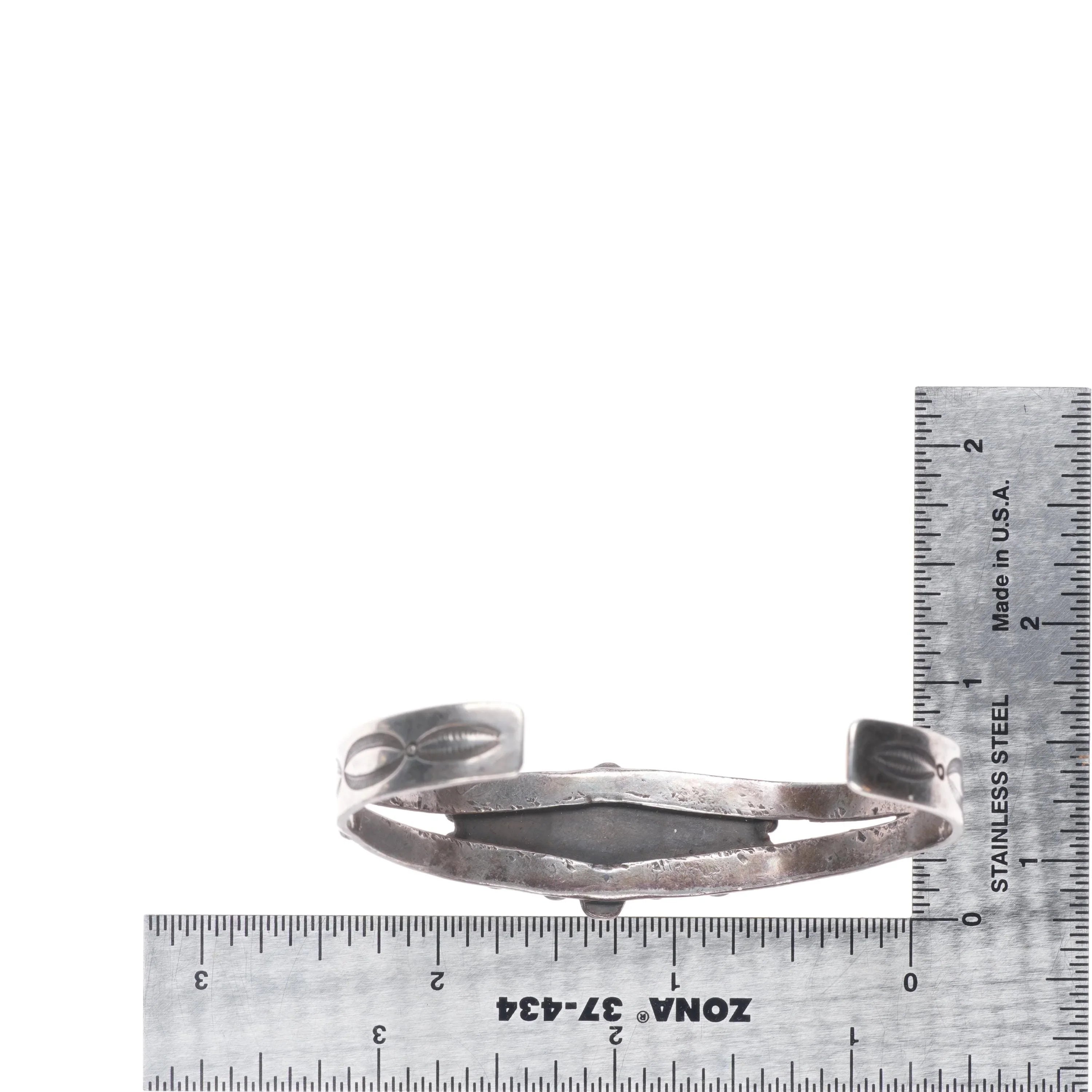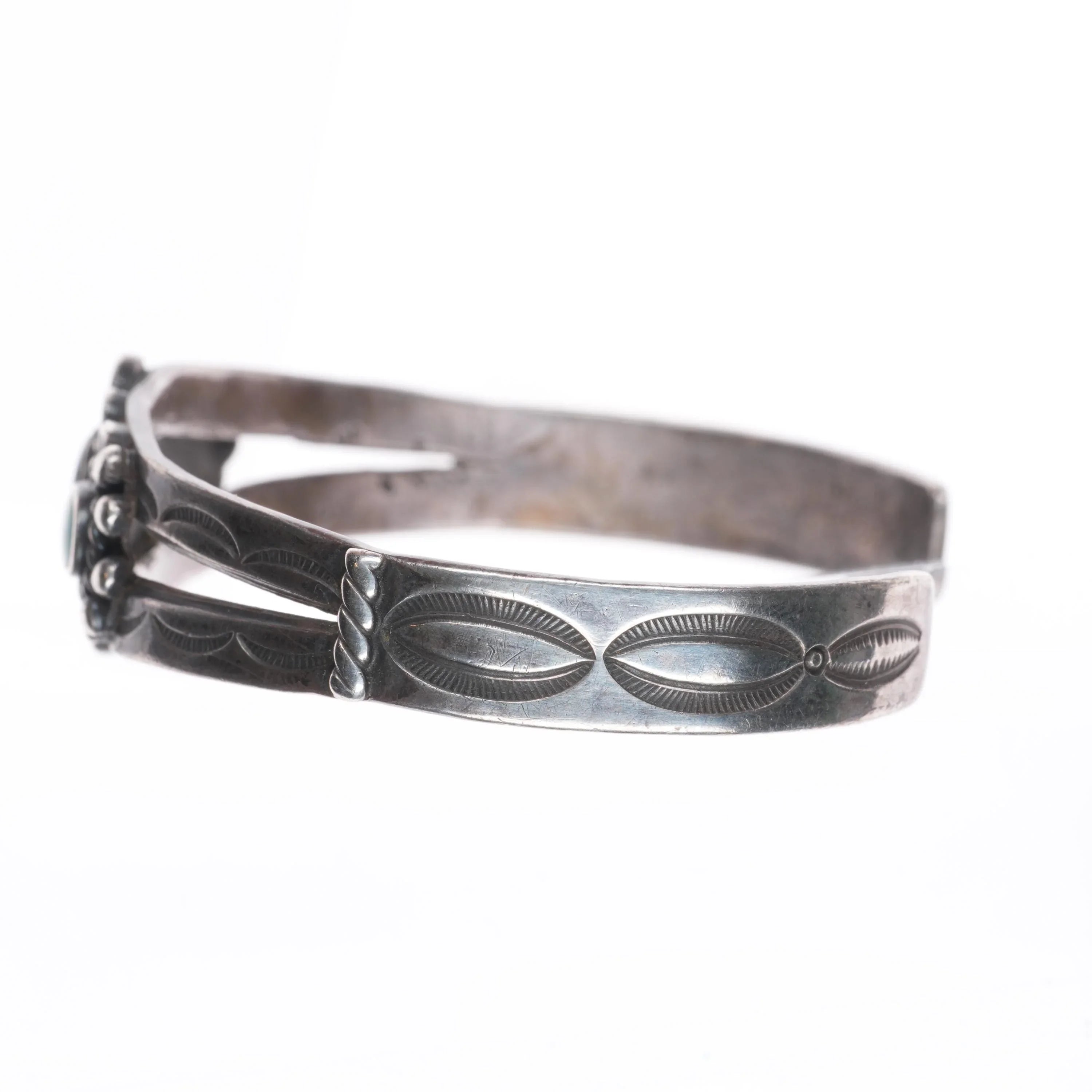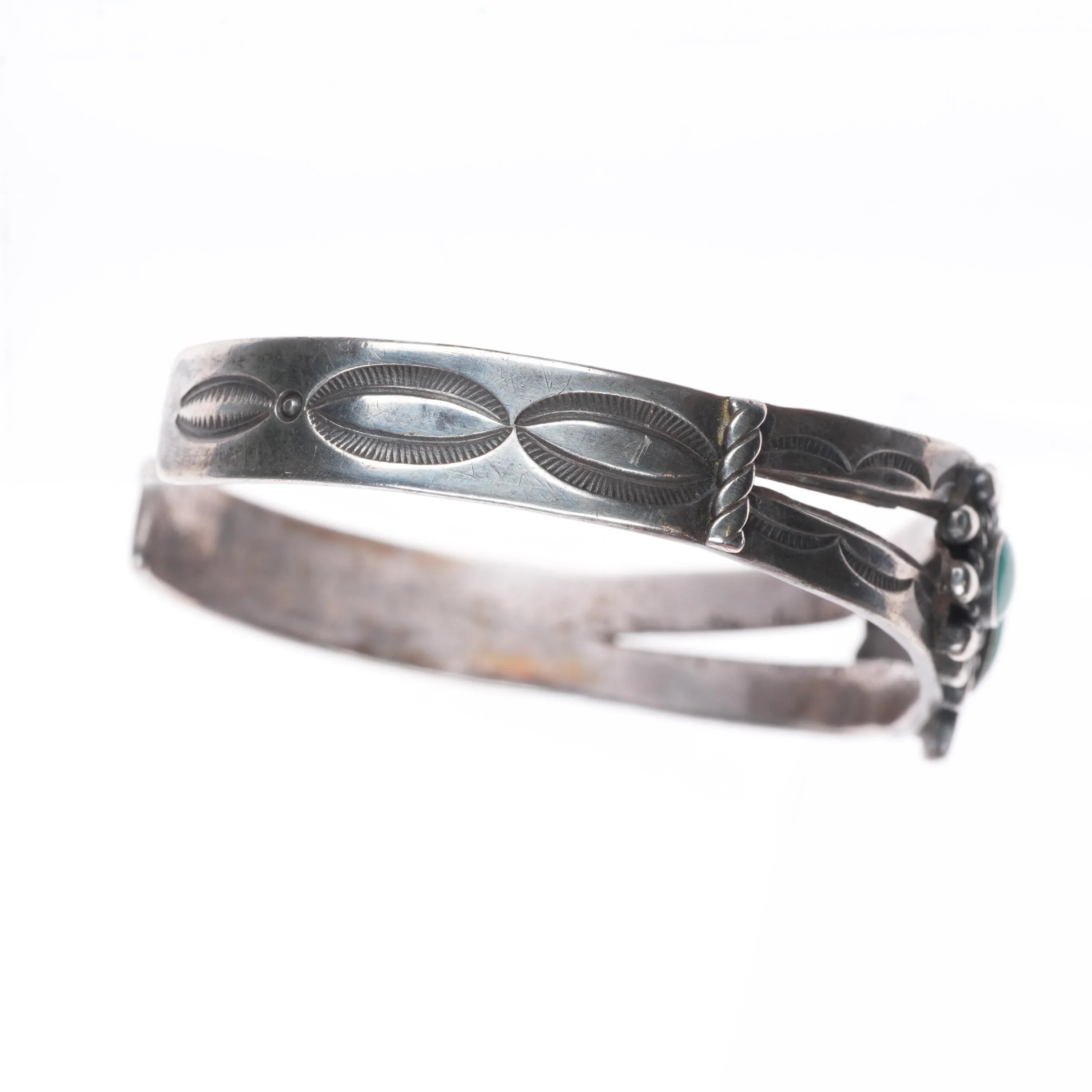 6.6" 30's-40's Navajo sterling silver green turquoise cuff bracelet 3 stone