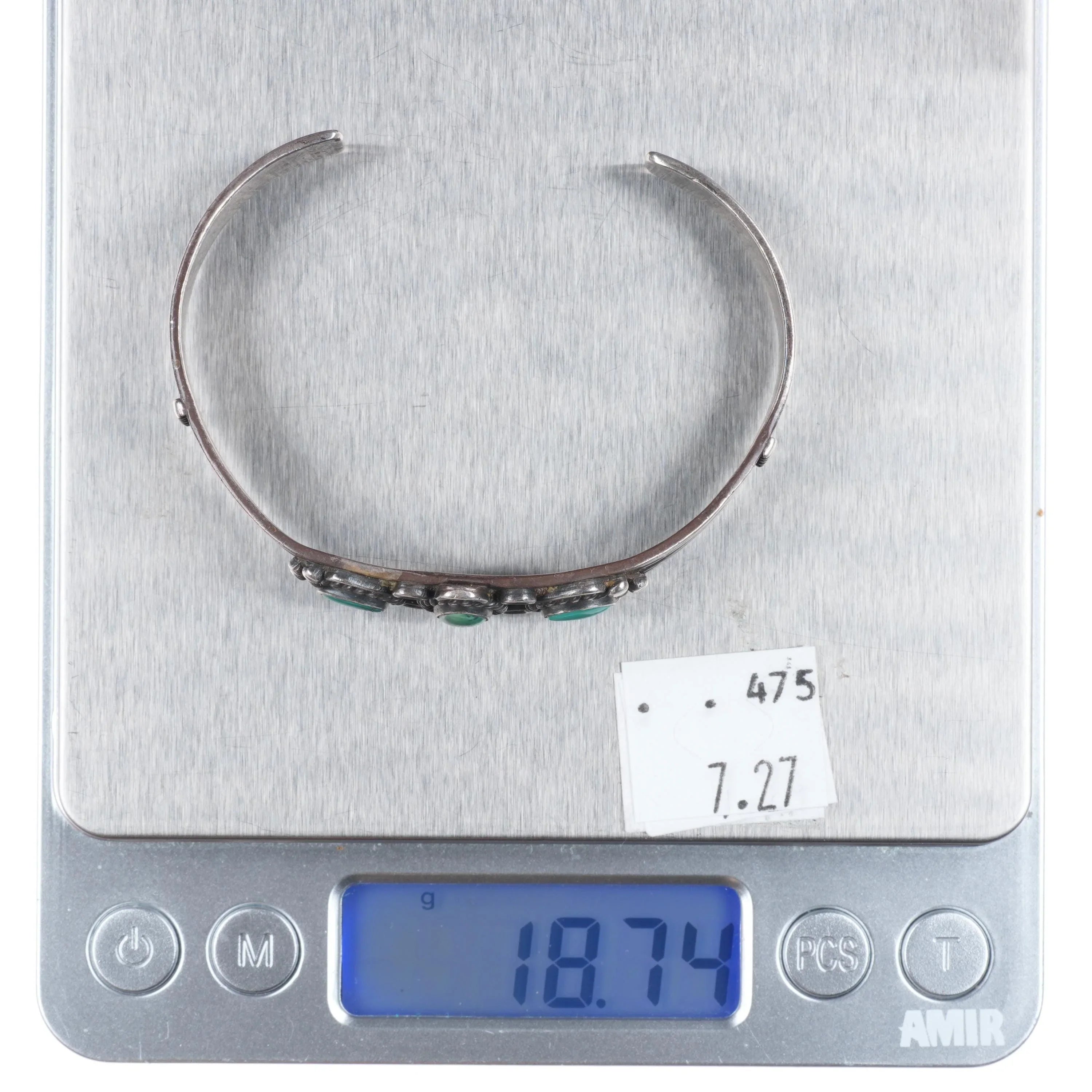 6.6" 30‘s-40‘s Navajo sterling silver green turquoise cuff bracelet 3 stone. Tested and guaranteed solid sterling silver with weight and measurements in pictures. Good condition with some expected wear, unmarked.