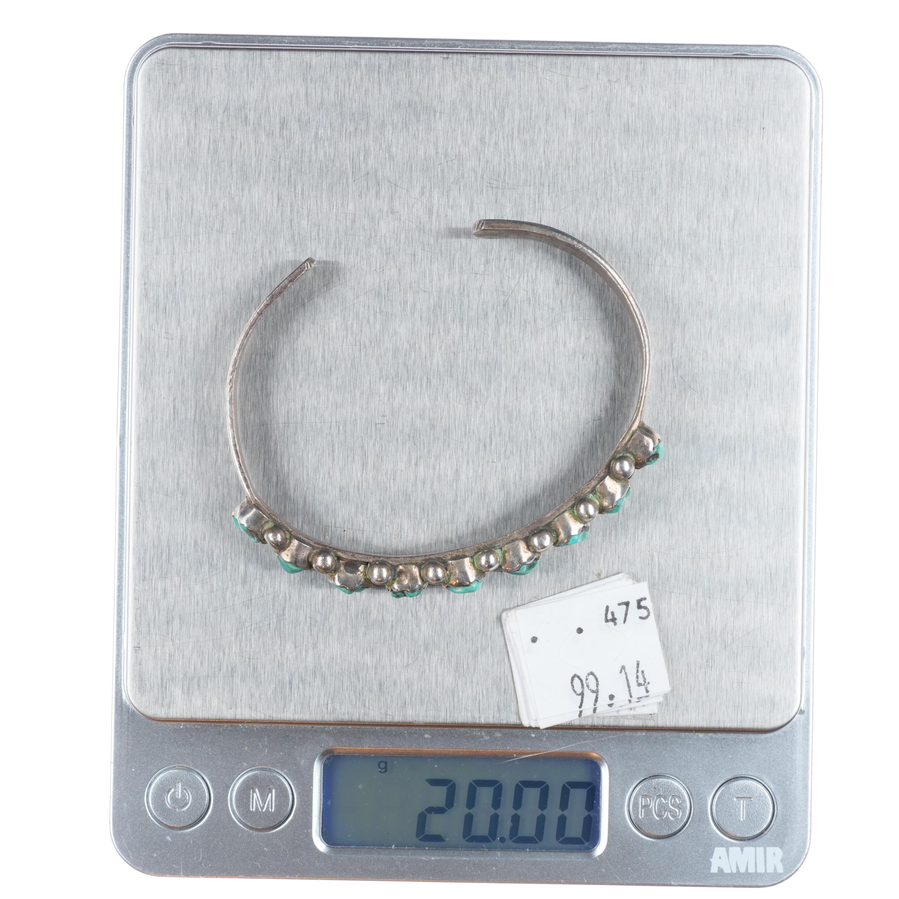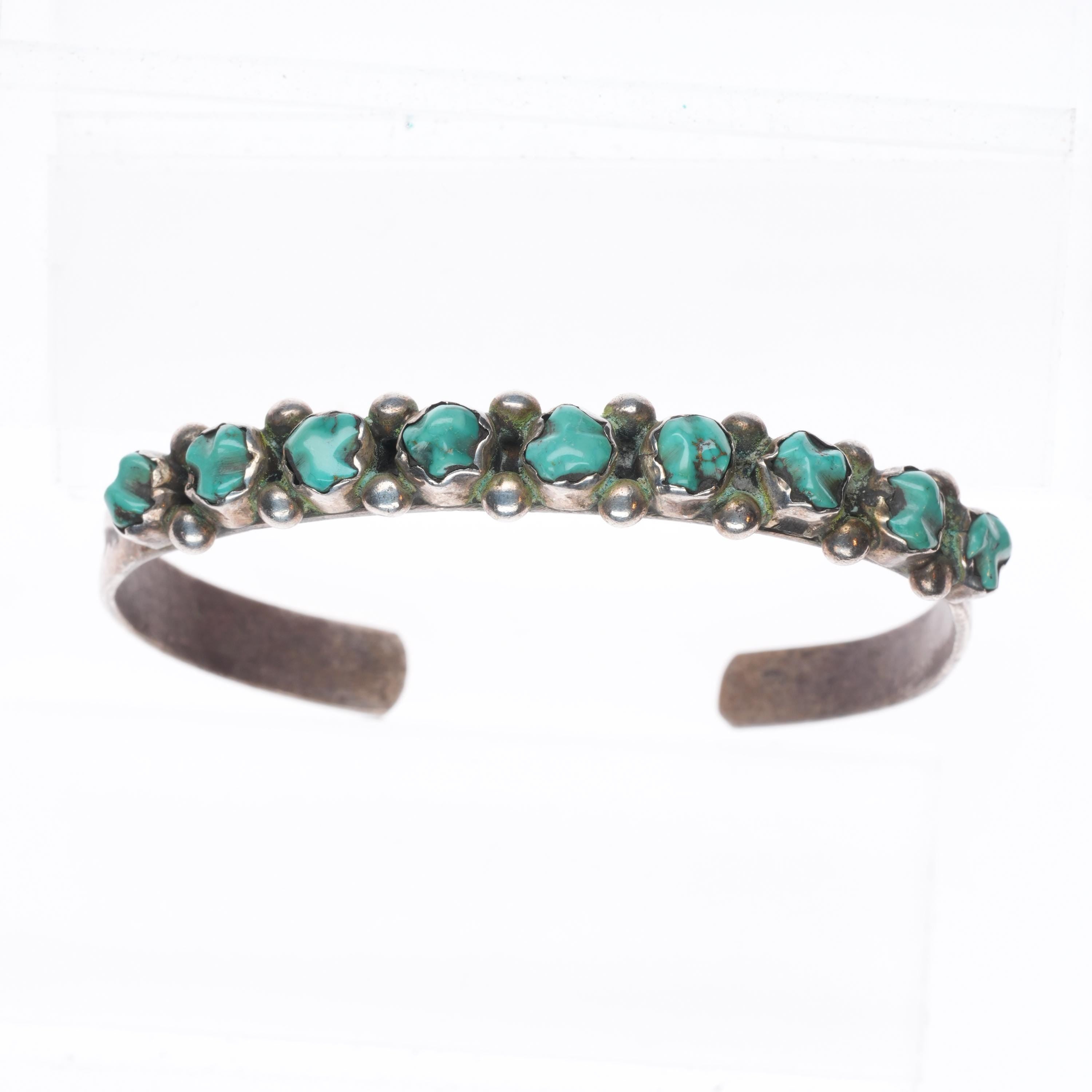 6.6" c1950's Zuni sterling silver carved turquoise row cuff bracelet