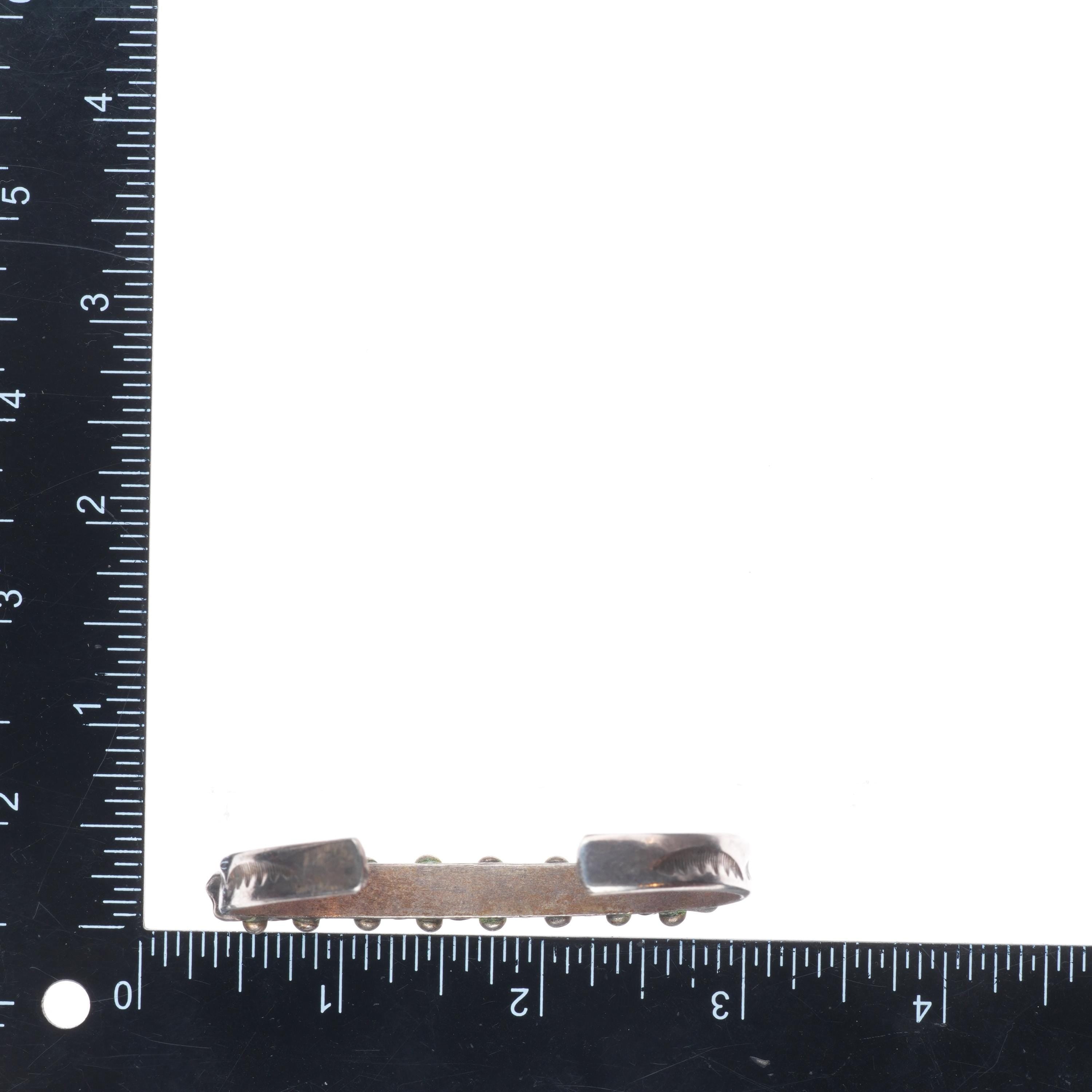 6.6" c1950‘s Zuni sterling silver carved turquoise row cuff bracelet. Tested and guaranteed solid sterling silver with weight and measurements in pictures. Circa third quarter of the 20th century.