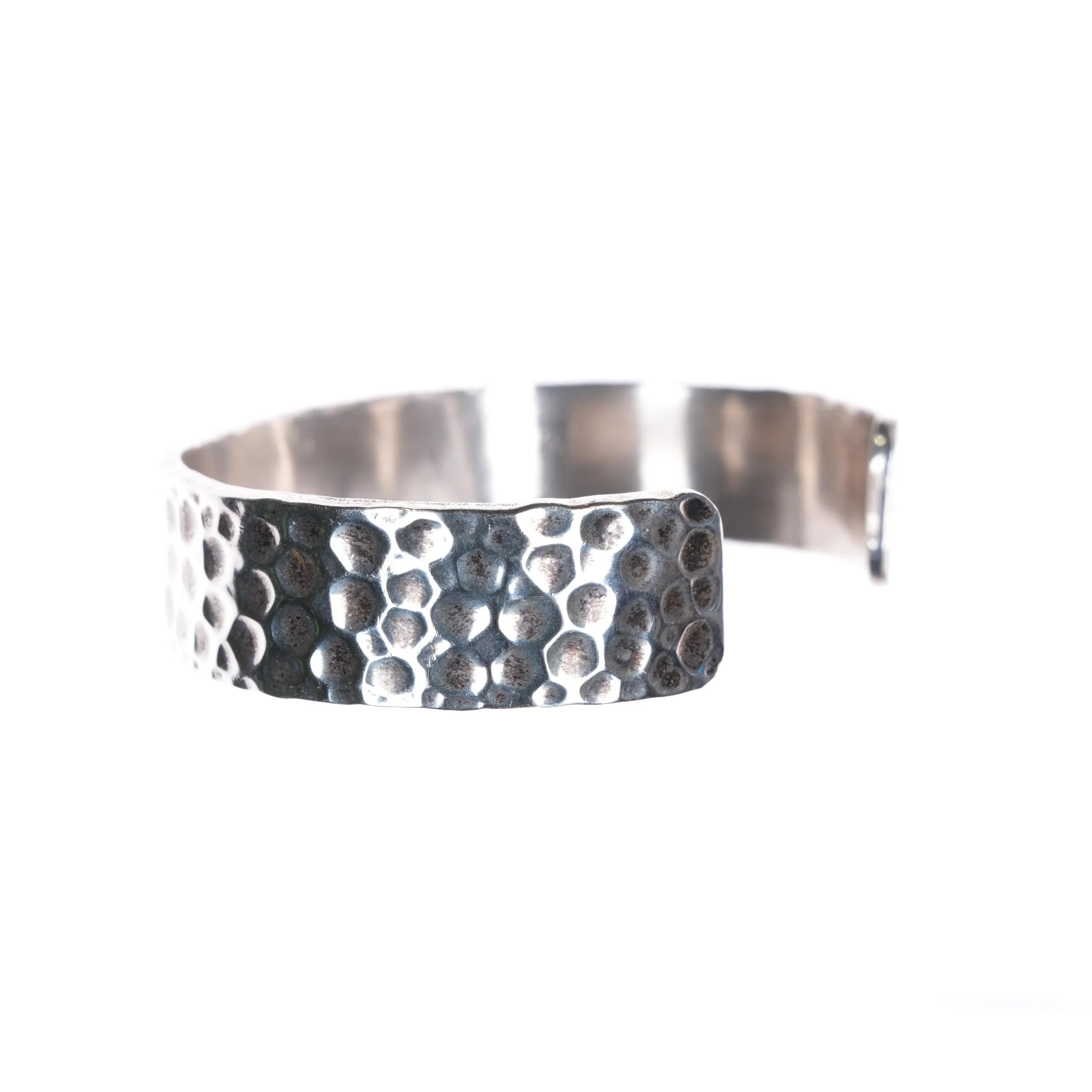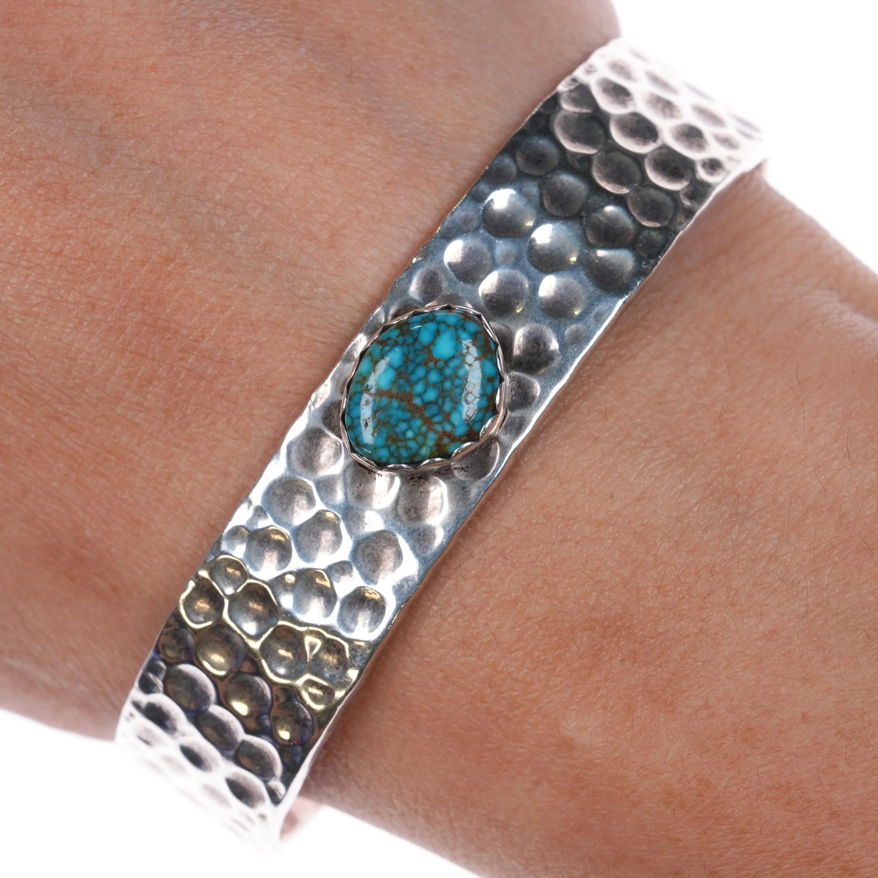 6.6" Danny Clark Navajo Indian Mountain Turquoise hammered sterling silver cuff bracelet. Tested and guaranteed solid sterling silver with the markings shown. Weight and measurements in pictures. Some expected wear, no cracks or breaks. circa 1990‘s Ultra high grade Nevada Turquoise, I didn‘t mine it or speak with the artist. It could be Nevada Blue, or even Lone Mountain, but it looks like Indian Mountain to me.