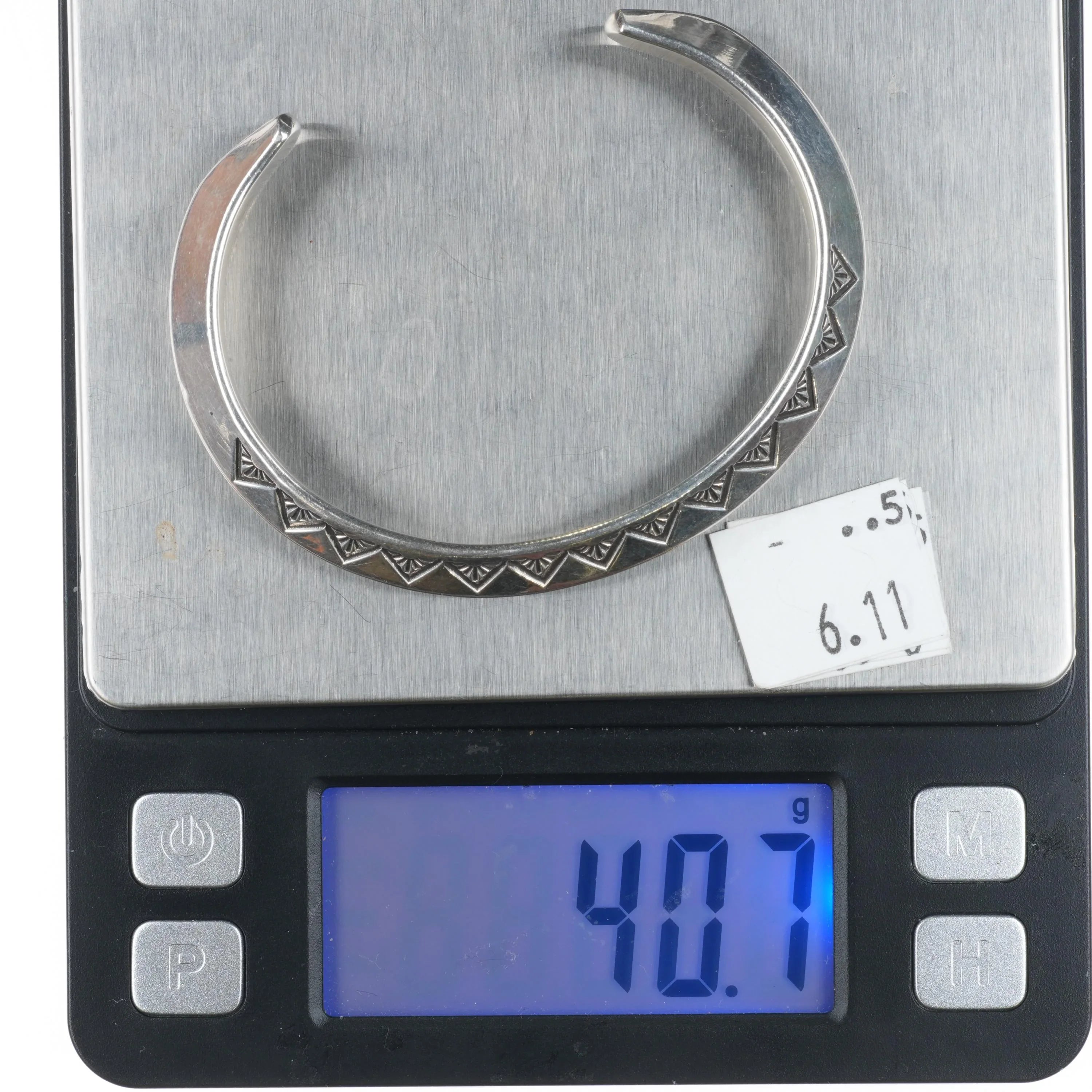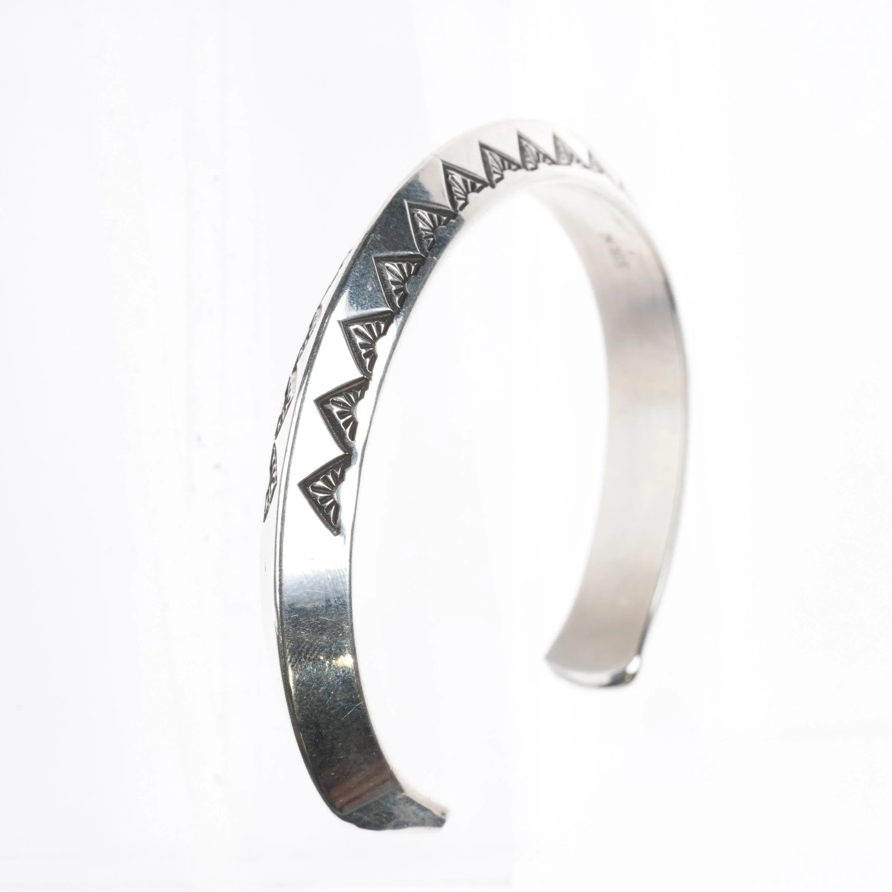 6.6" Leonard Paquin Laguna Zuni Carinated sterling silver stamped cuff bracelet