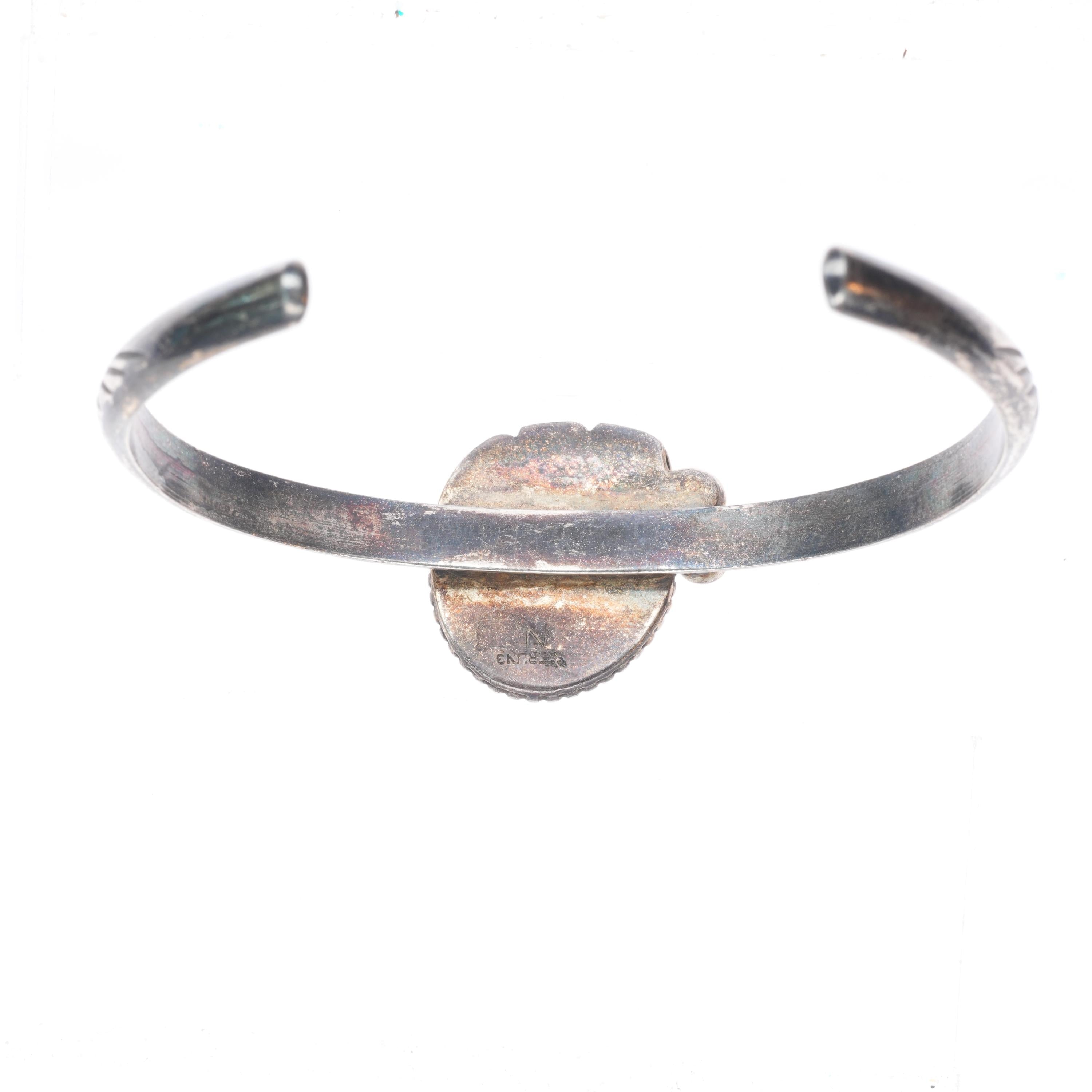 6.6" N Navajo vintage sterling silver spiderweb turquoise cuff bracelet