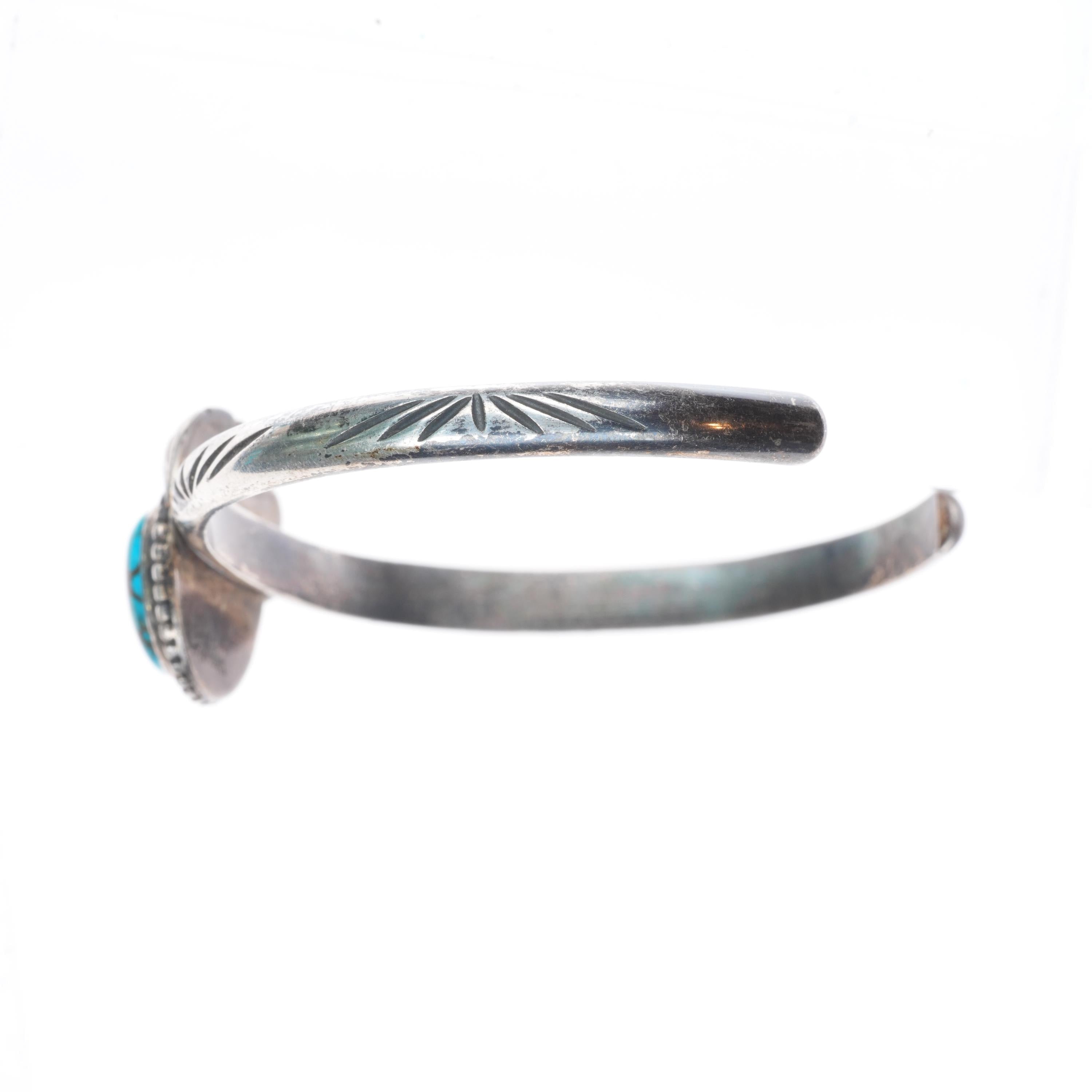 6.6" N Navajo vintage sterling silver spiderweb turquoise cuff bracelet. Tested and guaranteed solid sterling silver with weight and measurements in pictures. Circa third quarter of the century, no issues..