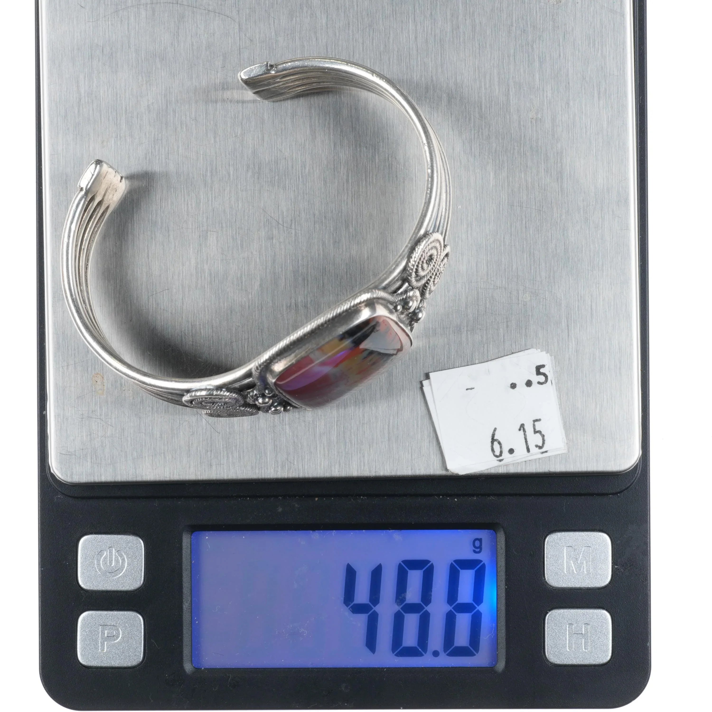 6.7" 30's-40's Navajo sterling silver petrified wood twisted wire cuff bracelet