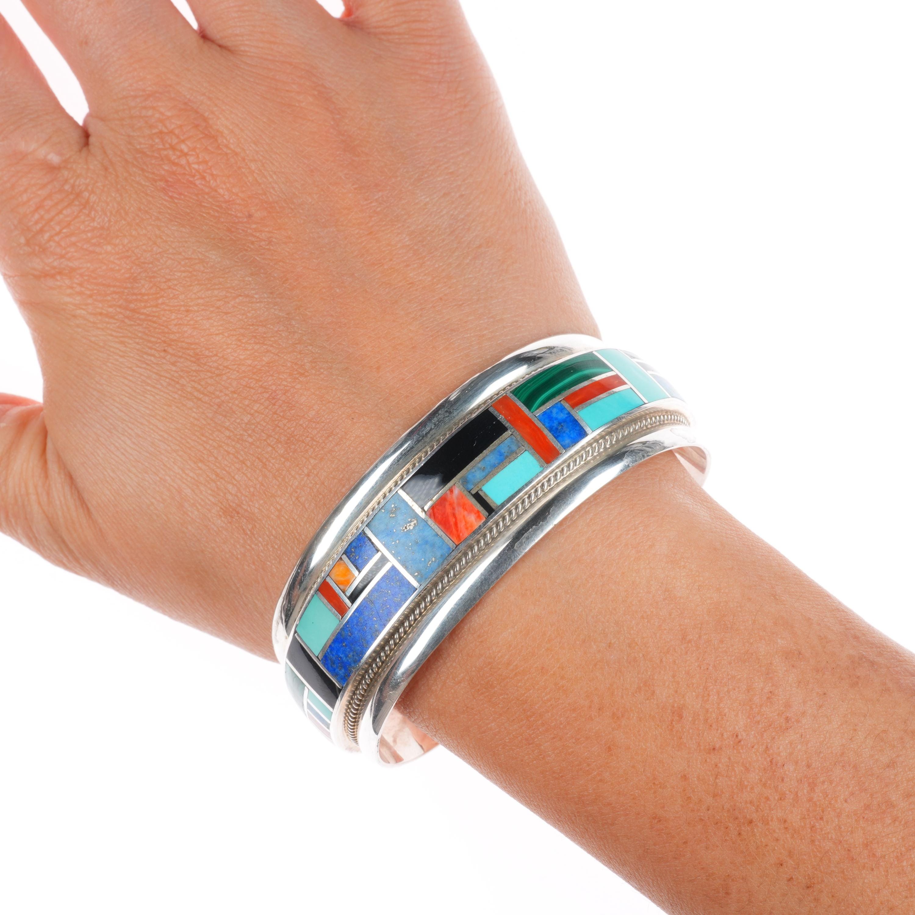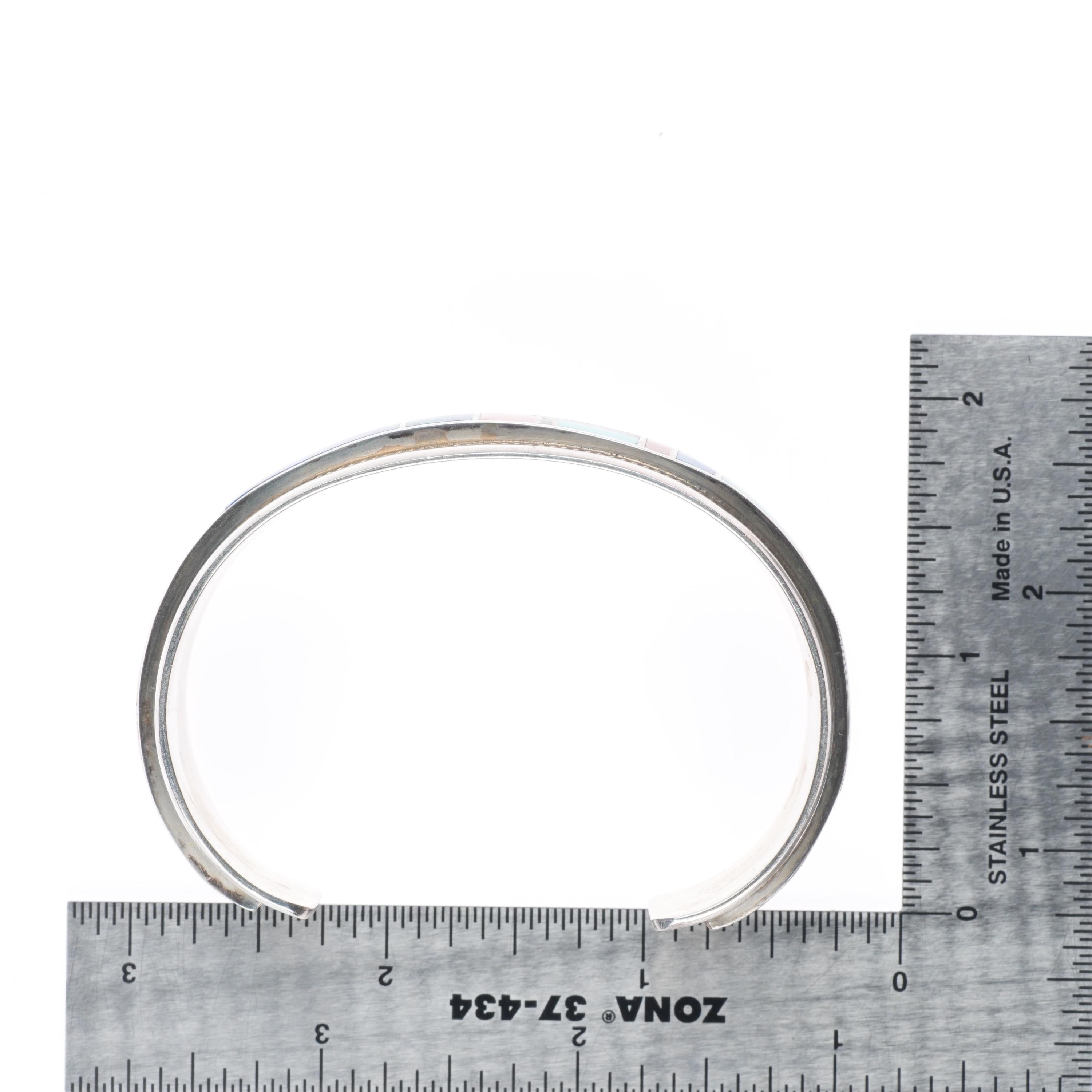 6.75" Rickell & Glendora Booqua Zuni sterling silver channel inlay cuff bracelet. Tested and guaranteed solid sterling silver with weight and measurements in pictures. Circa last quarter of the 20th century to early 21st century with age appropriate wear.. Clean condition, pics don‘t do it justice.